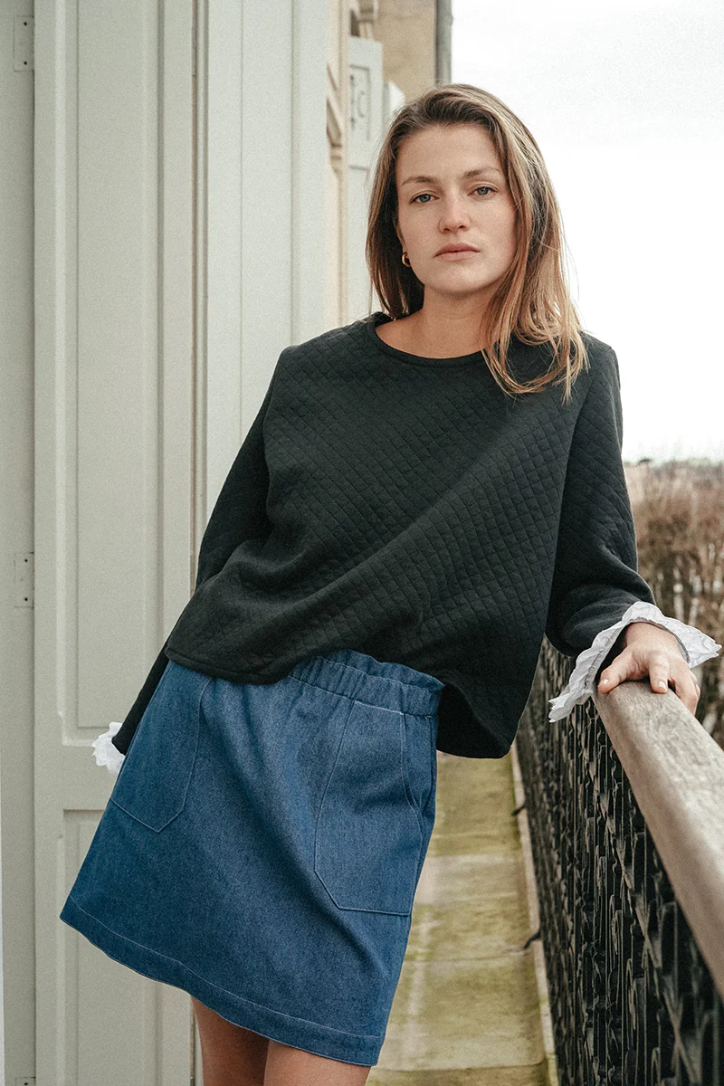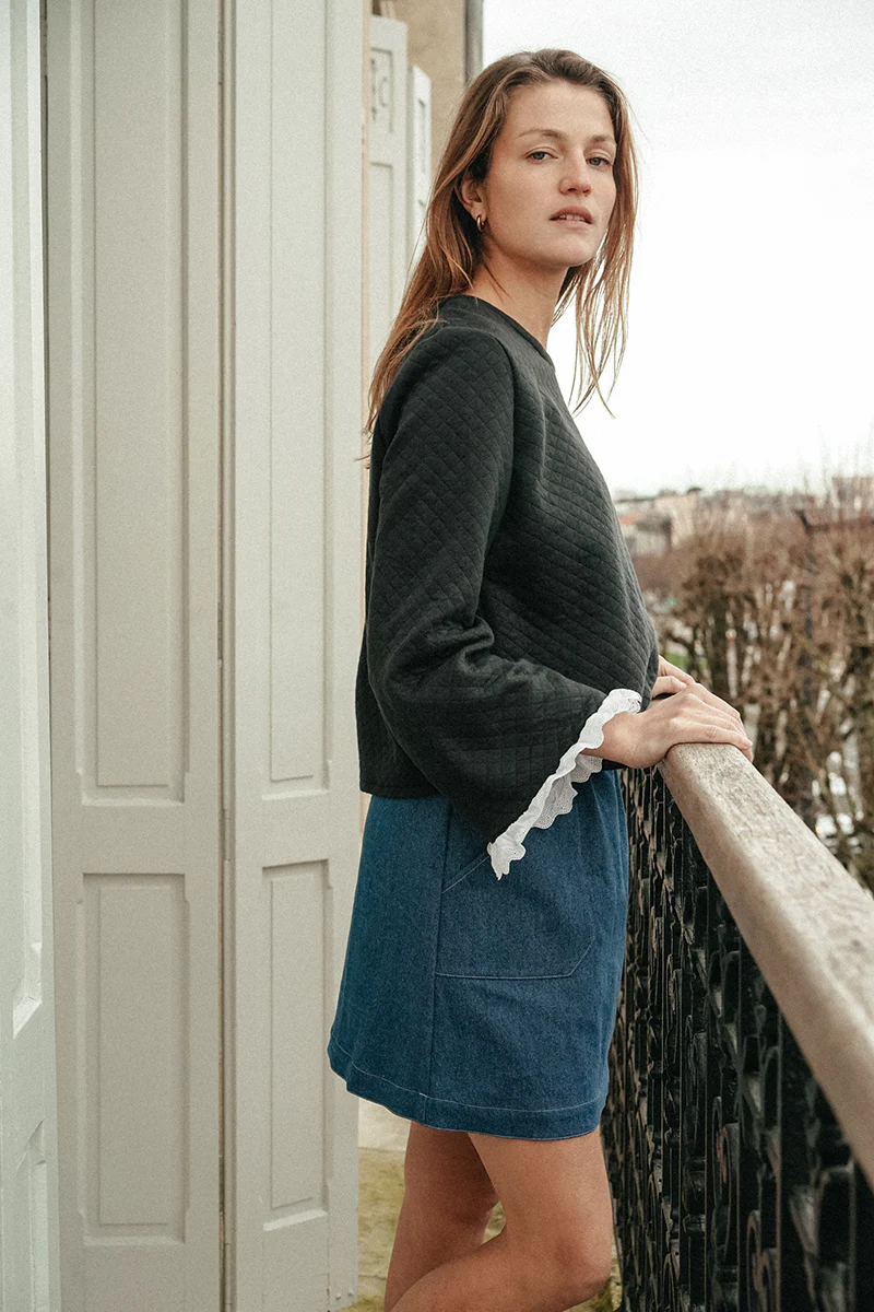 Sweat matelassé à manches évasées. ATTENTION : bas de manche modifié, se référer à la photo avec la mention « bas de manche ». Merci pour votre compréhension. Description : Coupe ample – Col Rond – Manches évasées ornées d’un ruban de broderie anglaise Conseil taille : Taille normalement, si vous hésitez entre deux tailles prenez la […]