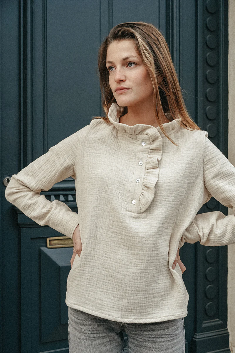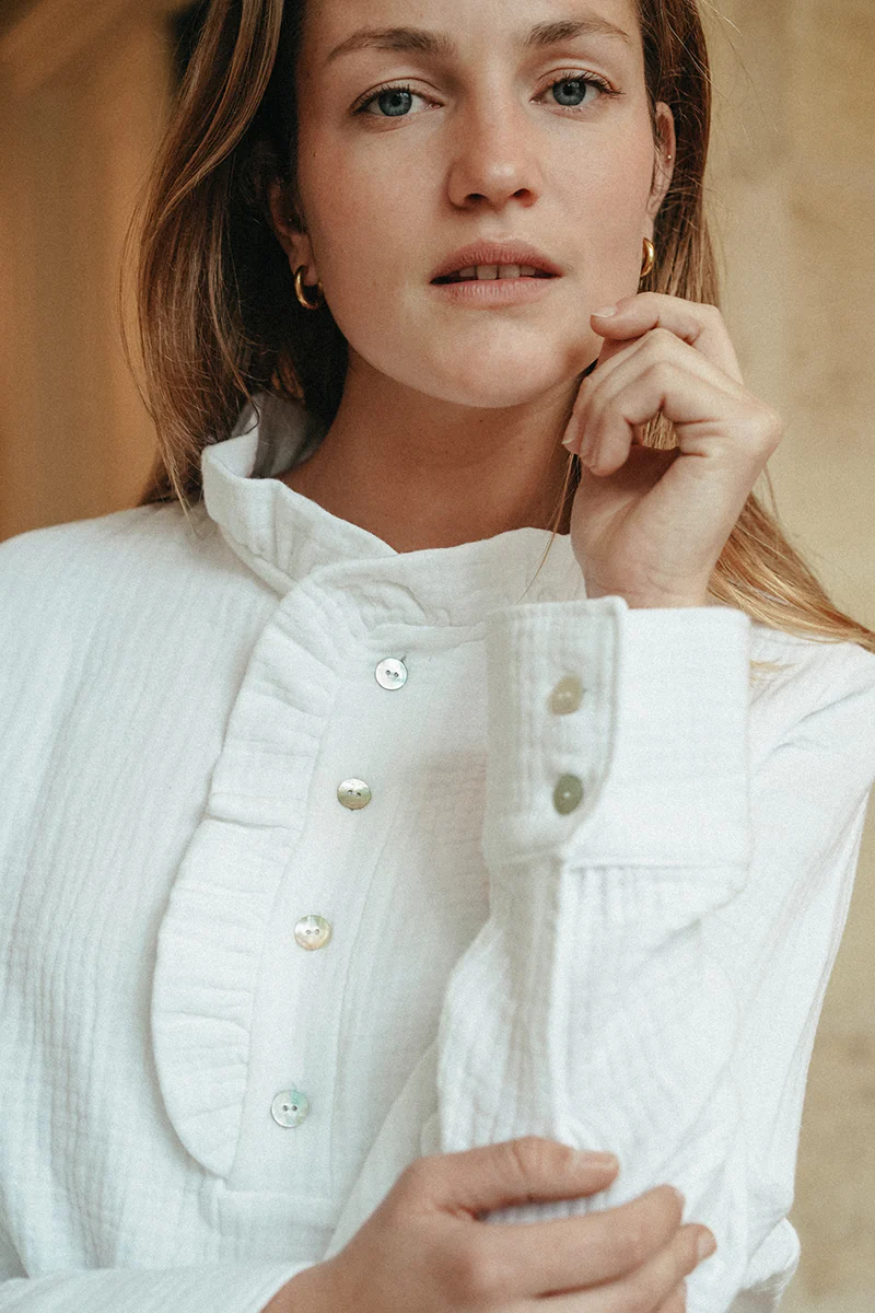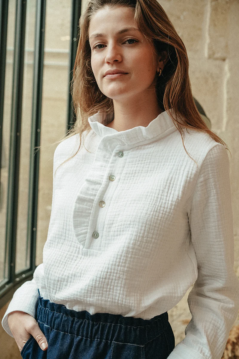 Blouse en triple gaze de coton, qui allie confort et légèreté.