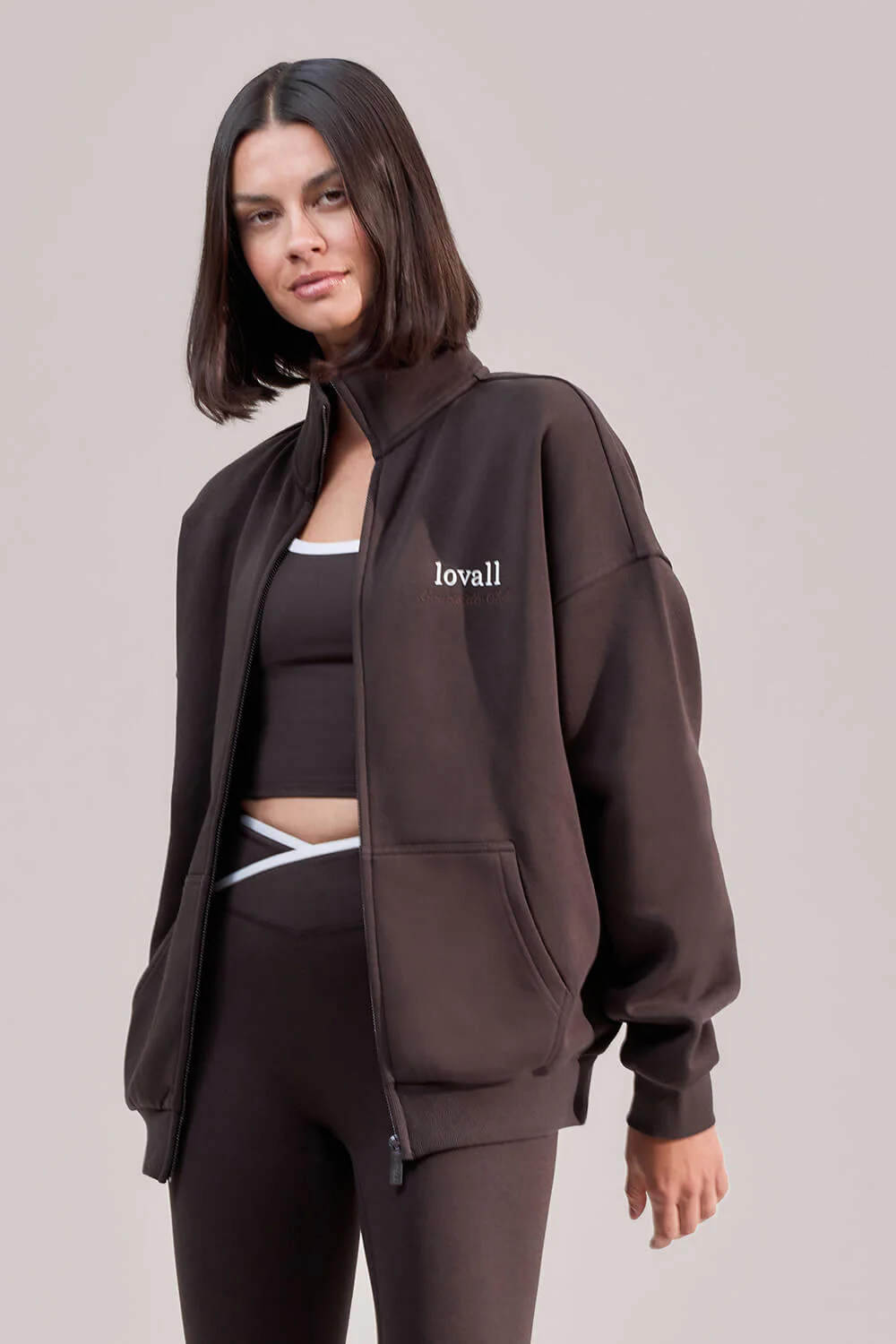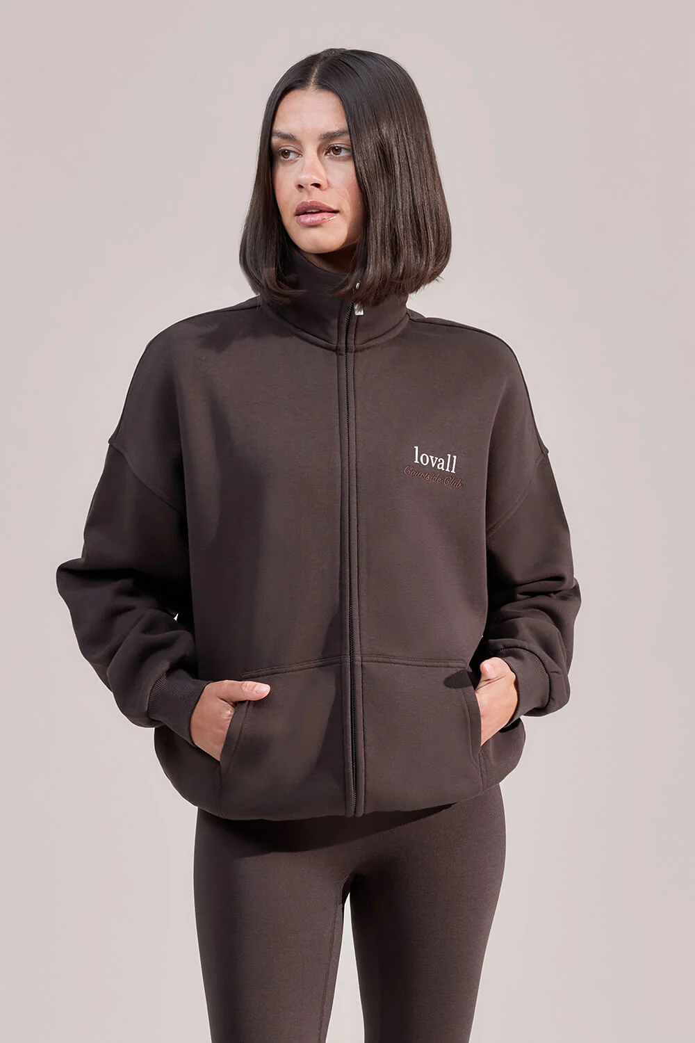 ALL SZN Organic Funnel Neck Zip Through – Black Coffee