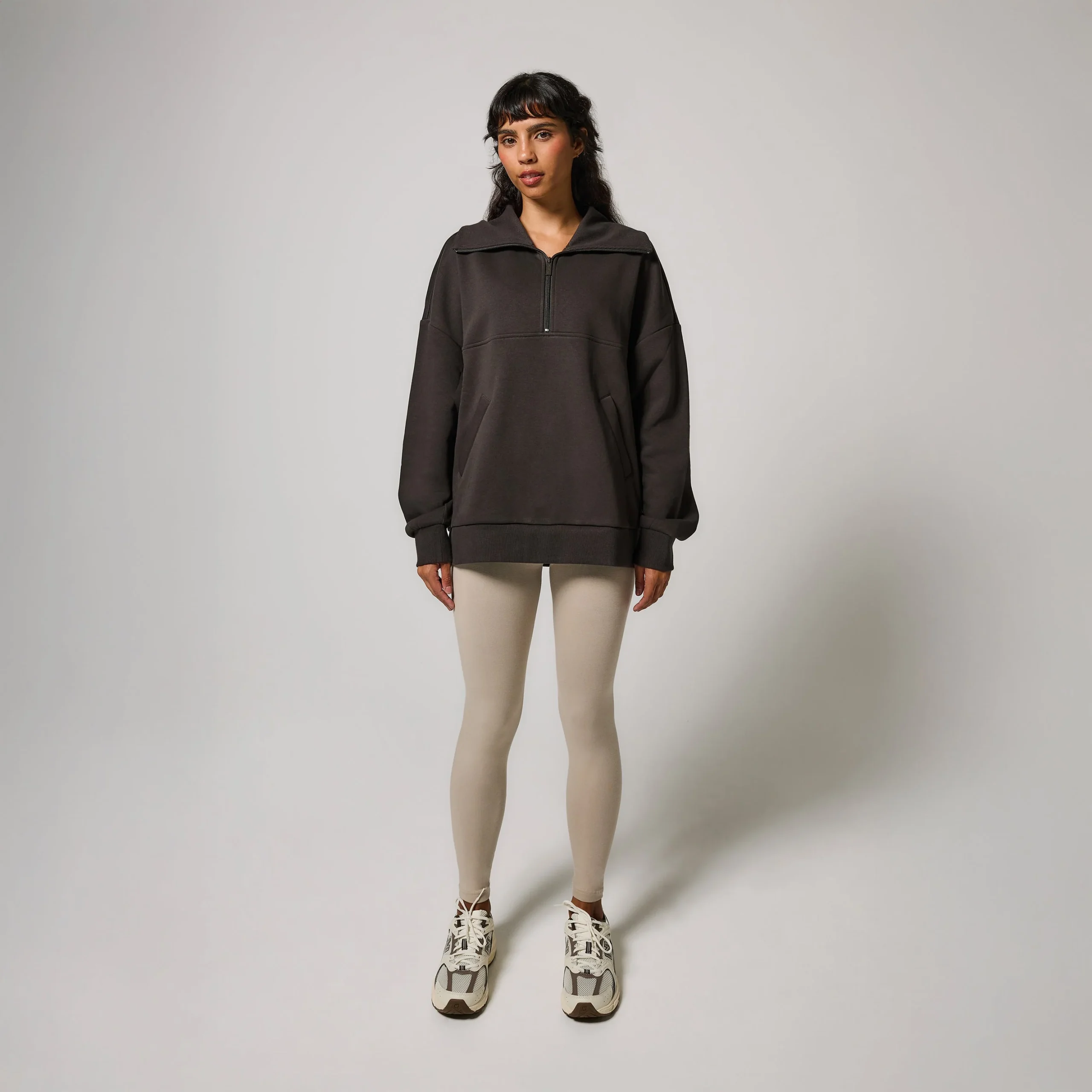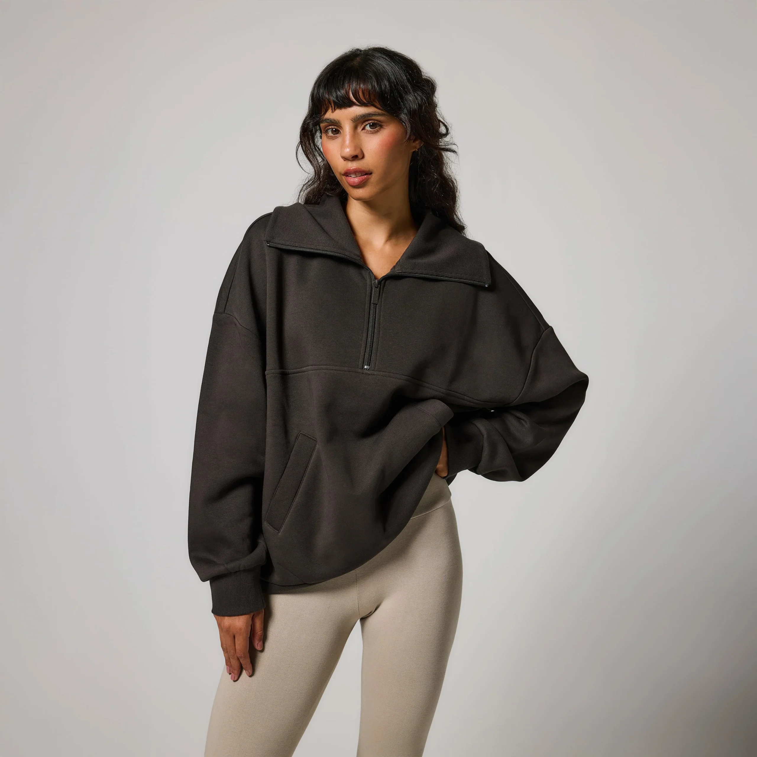 ALL SZN organique Pull Oversize avec Quart de Zip grande taille – Black Coffee