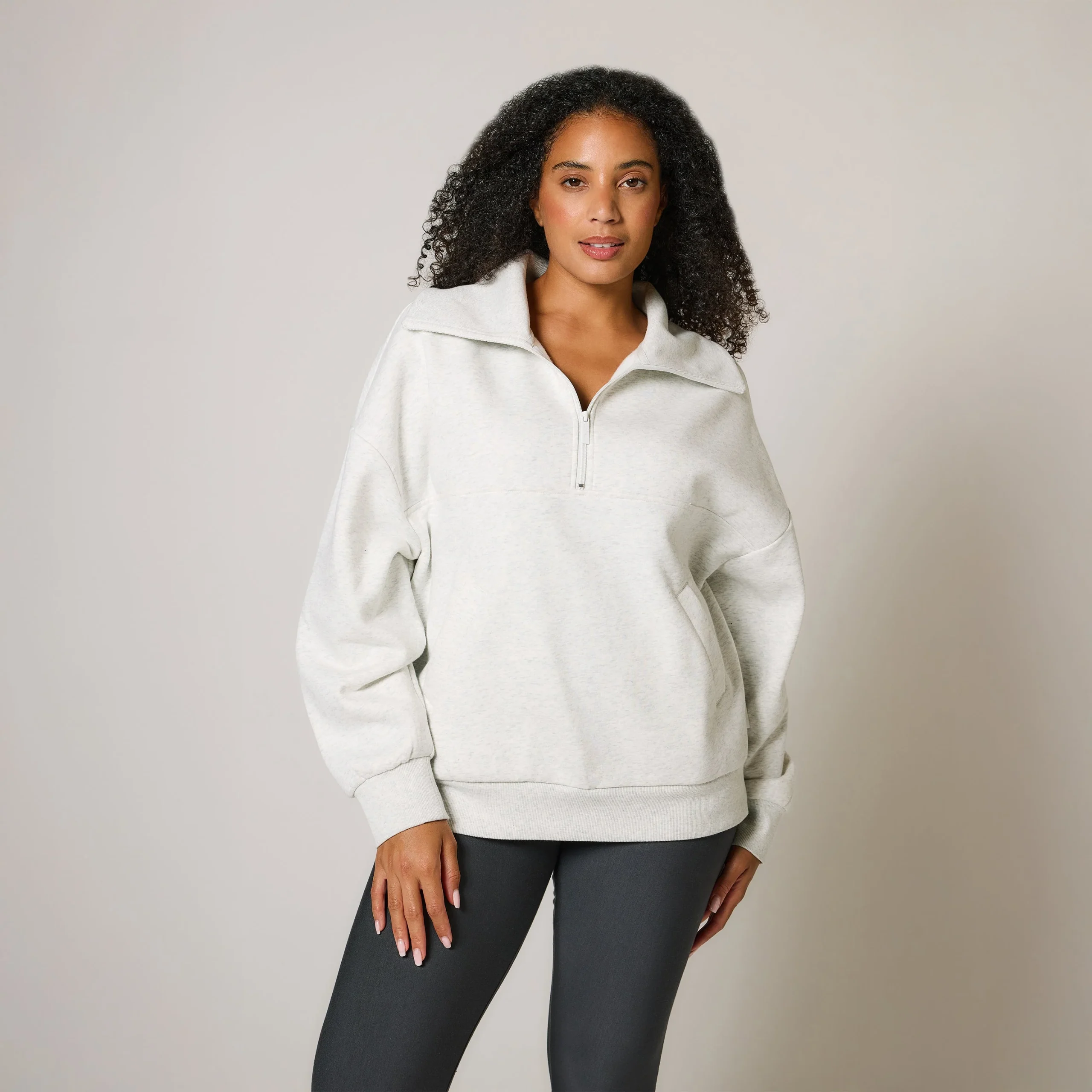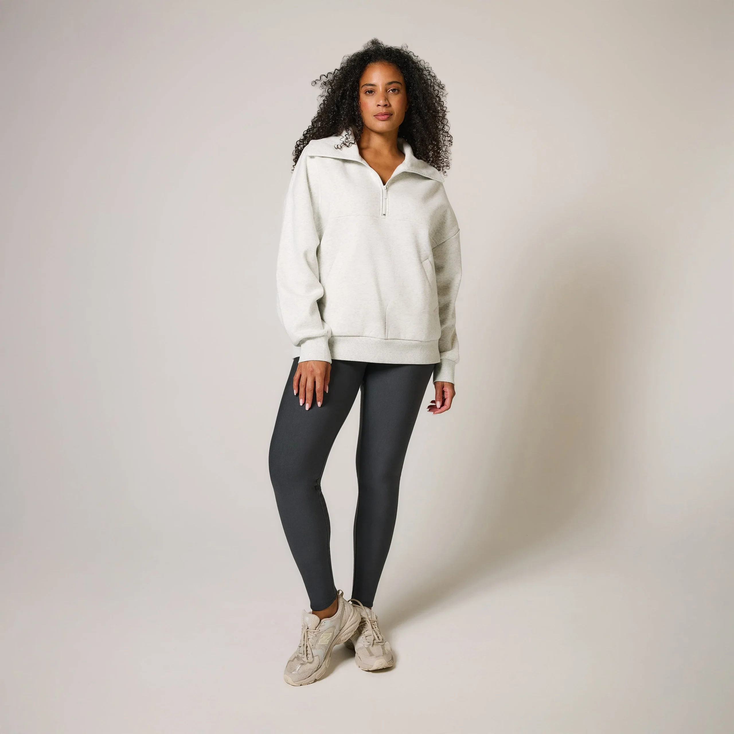 ALL SZN organique Pull Oversize avec Quart de Zip – Light Grey Marl