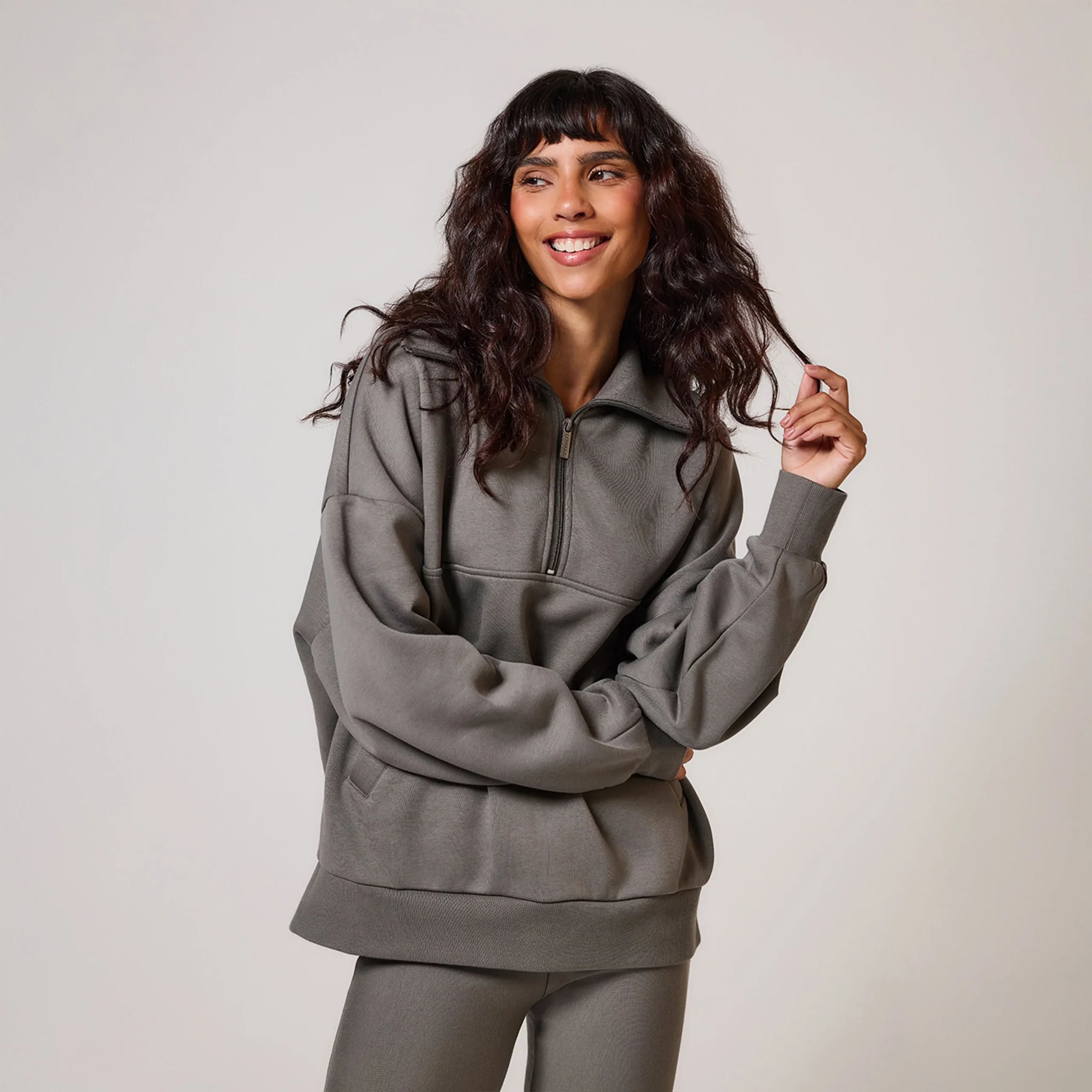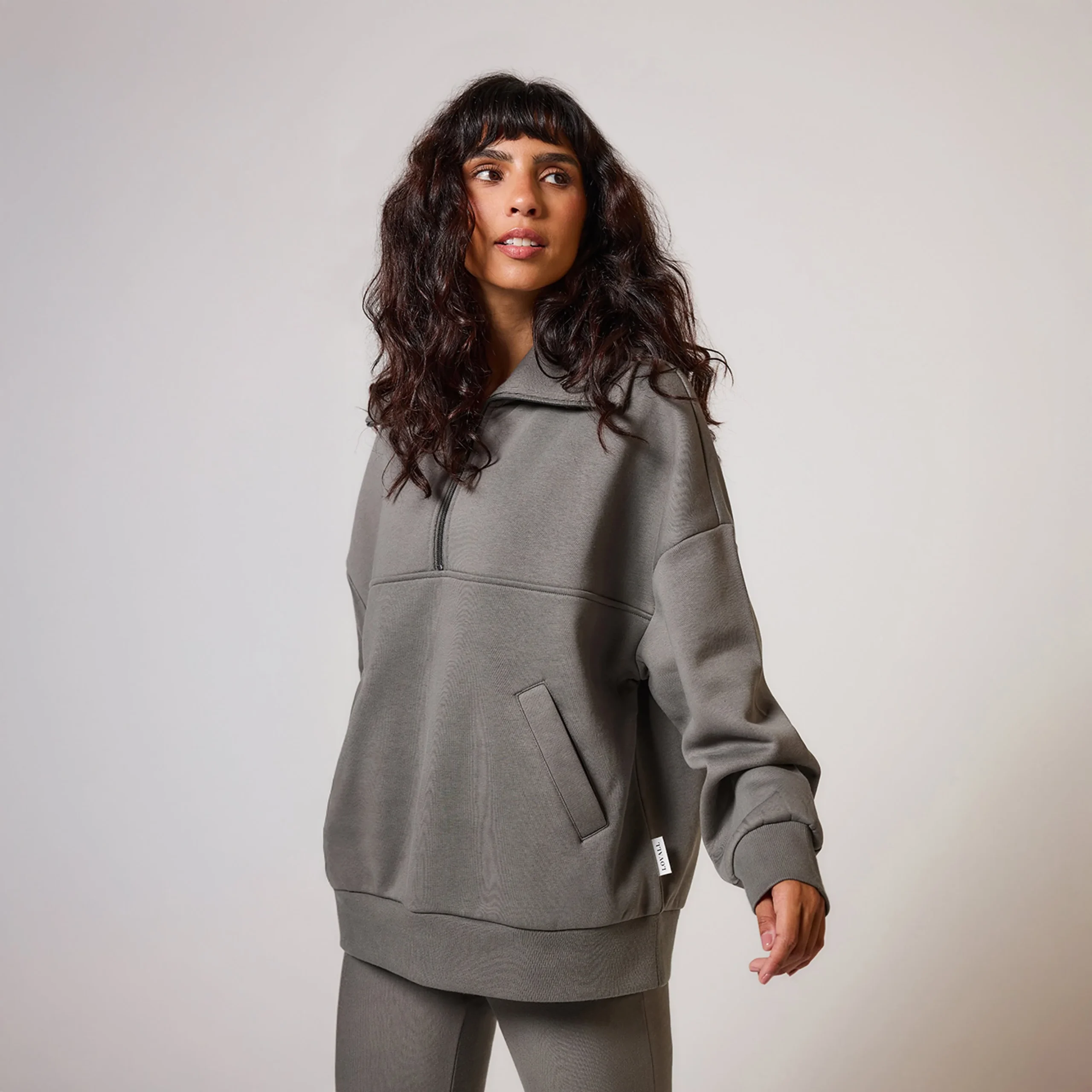 ALL SZN organique Pull Oversize avec Quart de Zip – Slate Green