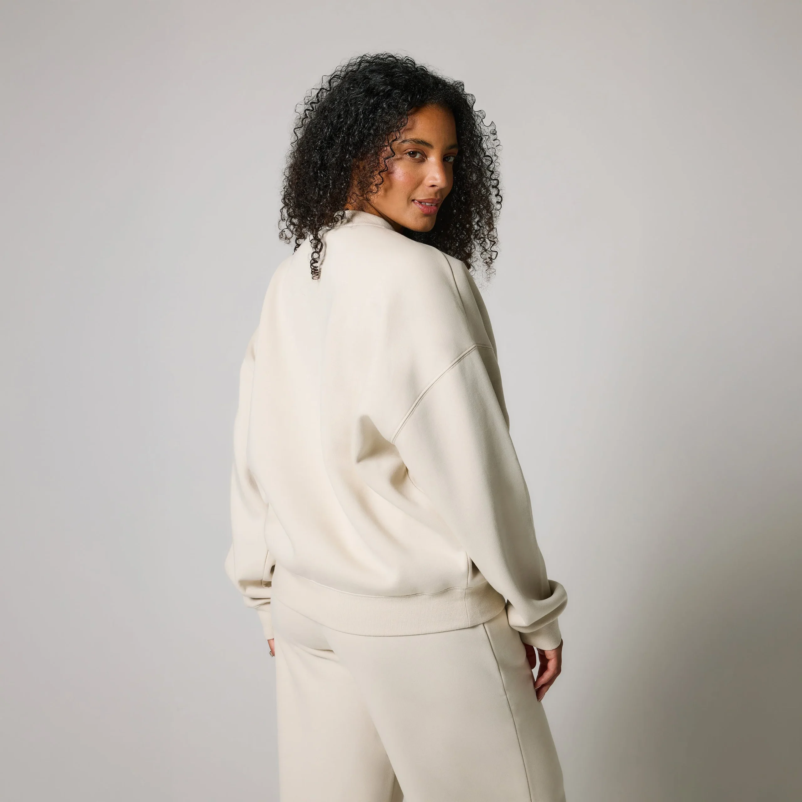 – Enjoy super soft fabric that is made from organic and recycled fibre content. – Designed in a flattering oversized and drop shoulder shape. – Crafted with a cosy fleece lining for optimised comfort. – Completed with a ribbed neck, cuffs and waist.