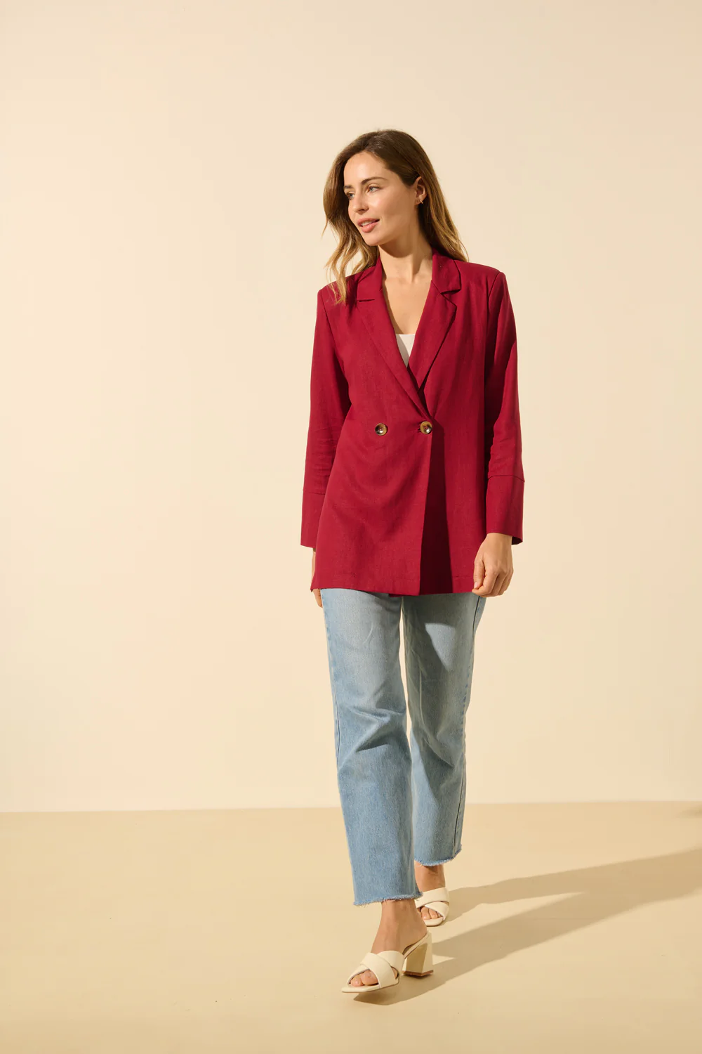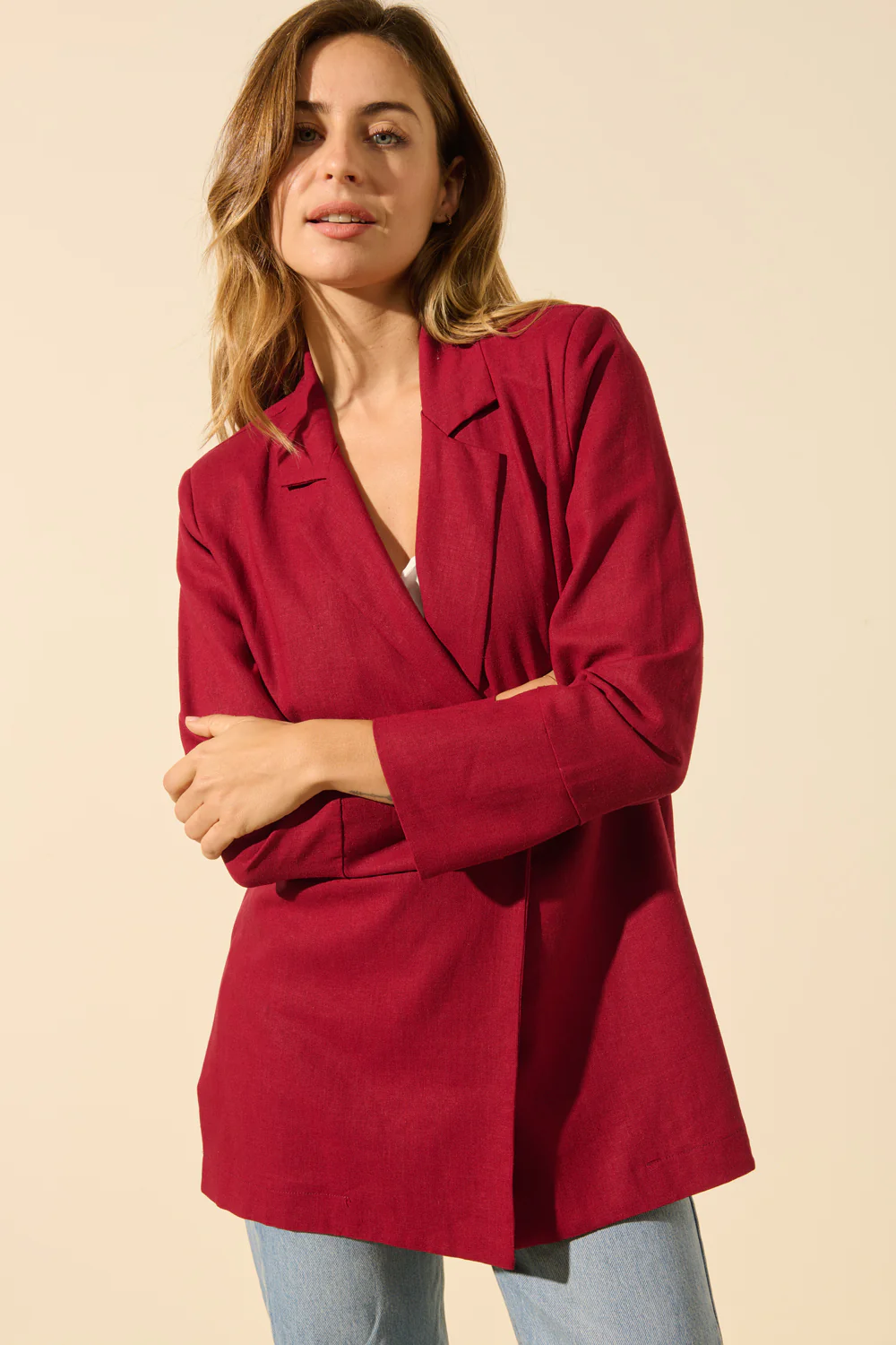 Une veste longue en lin, pour un porté décontracté mais tellement élégant. Un look estival, idéal pour la saison.