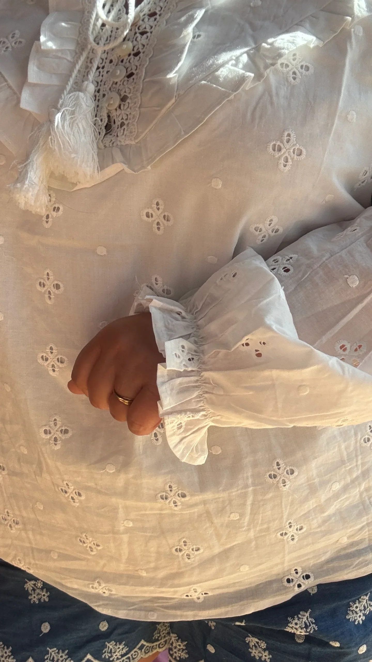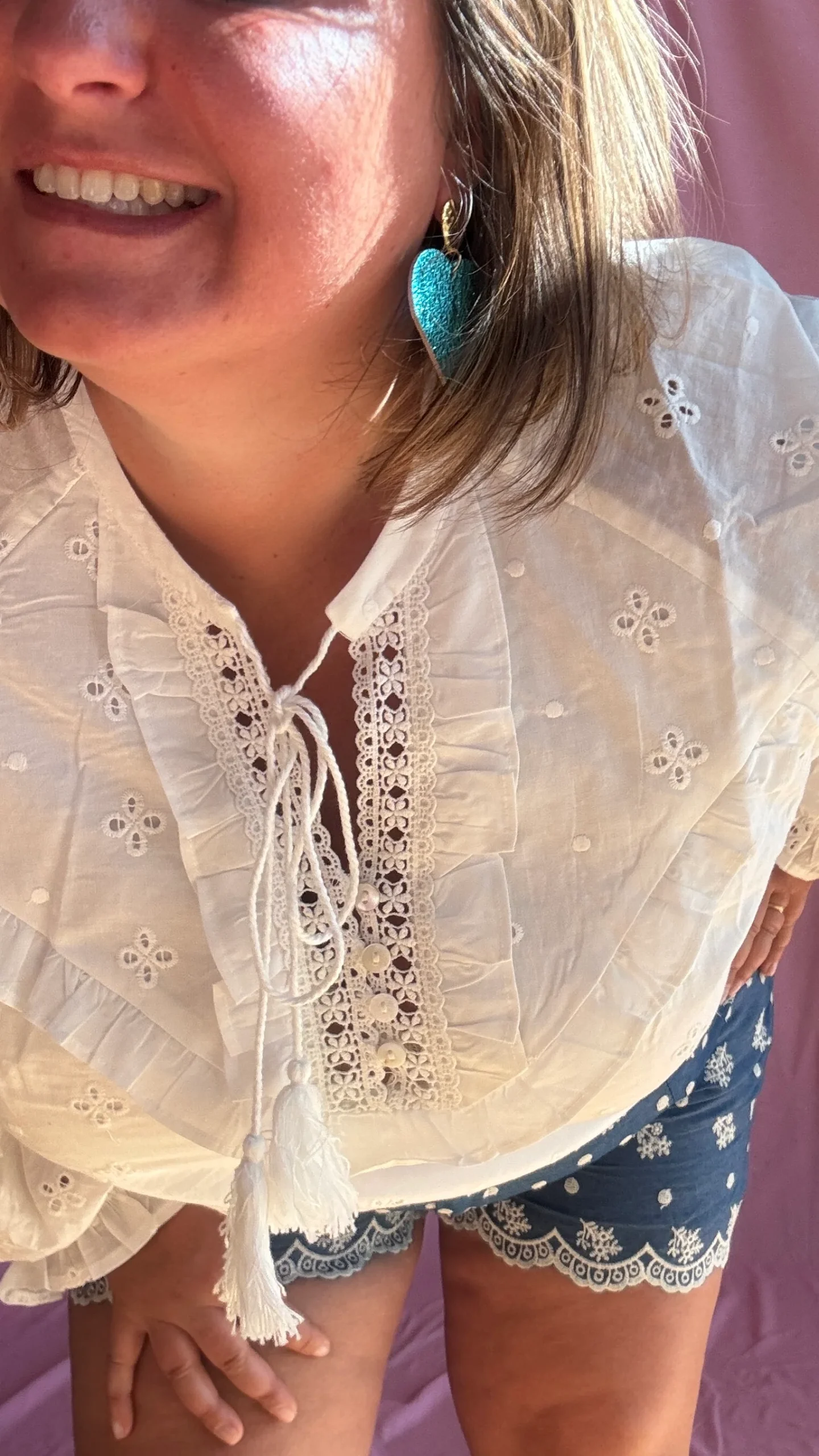 Soyez le premier à laisser votre avis sur “Blouse Angela – grande taille blanche manche longue détail froufrou et dentelle”