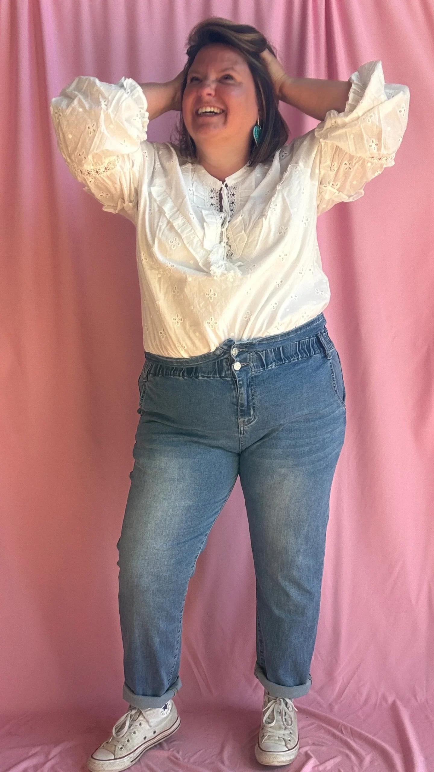 Blouse Blanche Grande Taille – Détails Romantiques et Élégance Délicate 🤍✨