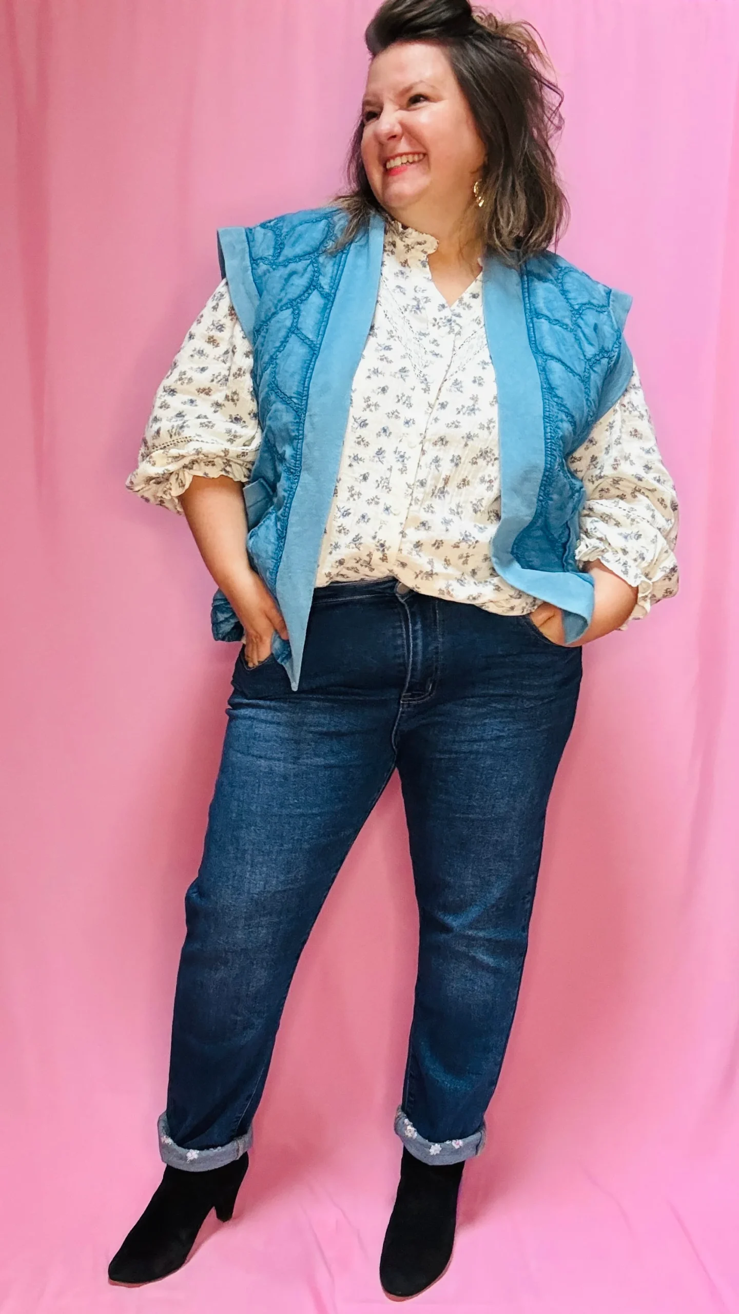 - Détails élégants : les broderies et motifs liberty bleu ajoutent une touche de sophistication et de douceur.