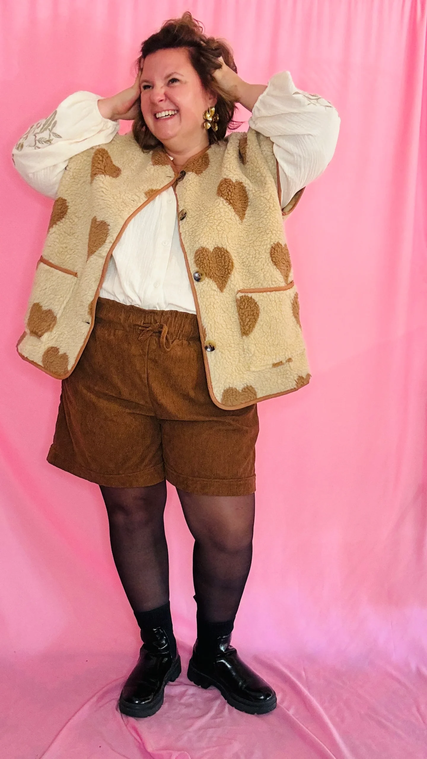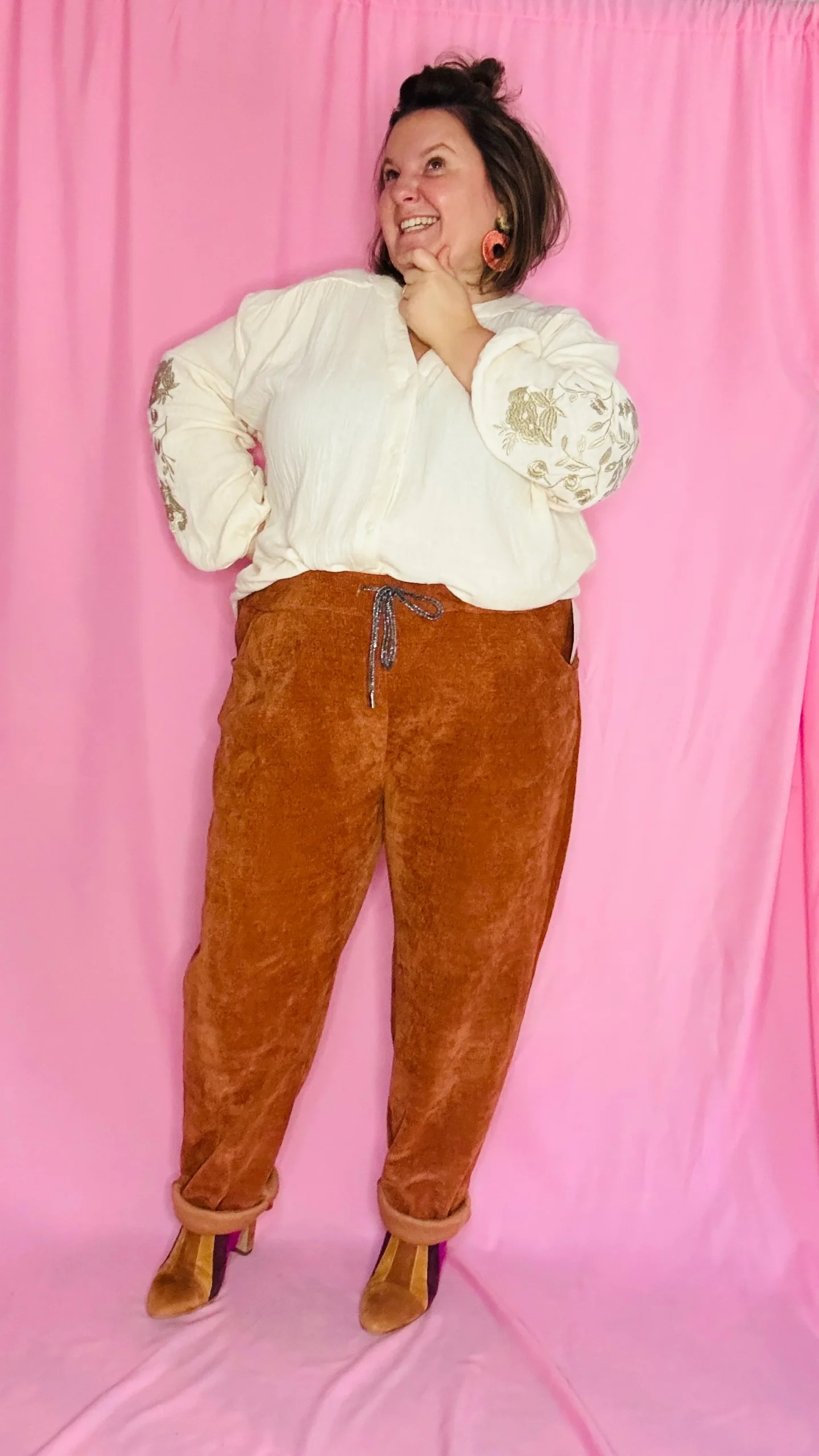 Blouse Clem – grande taille manche longue rouille camel petit coeur doré