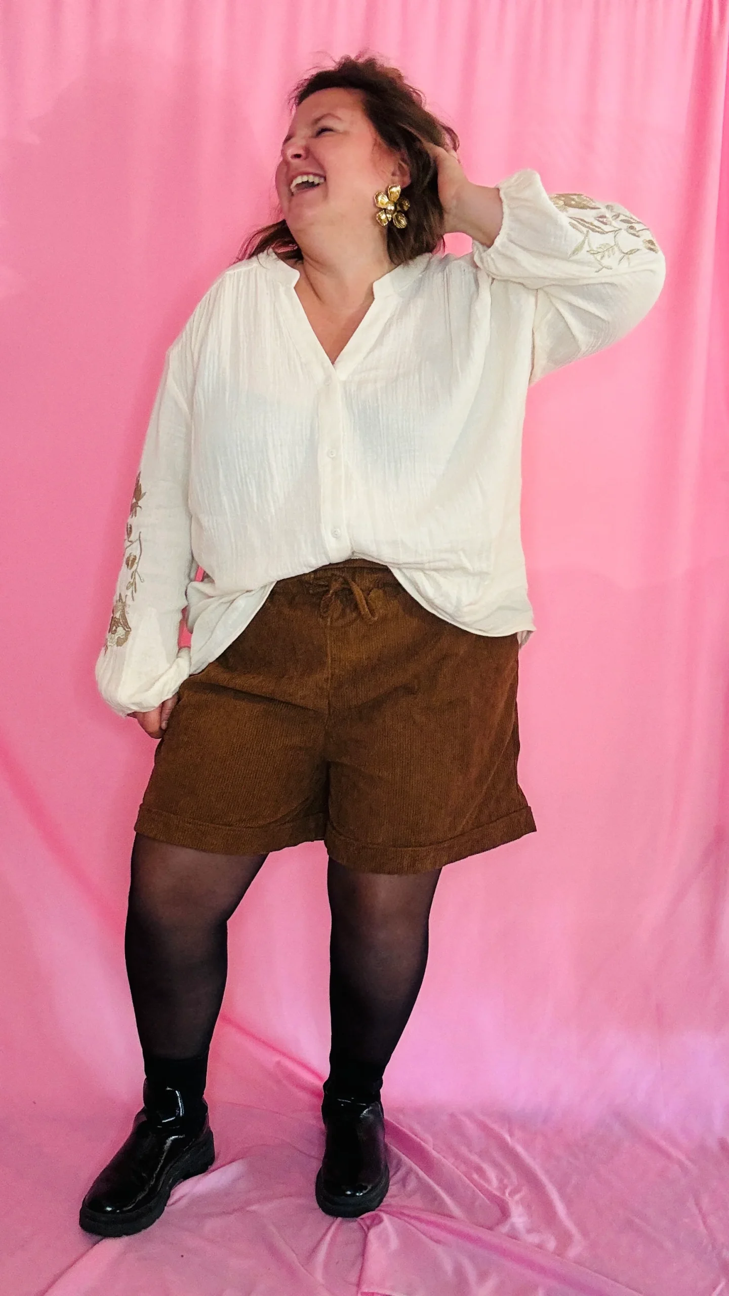 Succombez au charme de cette blouse grande taille écru à manches longues 🌼, délicatement travaillée pour allier confort et style romantique. Son effet oversize et ses manches ballon offrent une silhouette fluide et aérienne, tandis que les détails brodés dorés sur les coudes apportent une touche de lumière subtile et originale ✨.