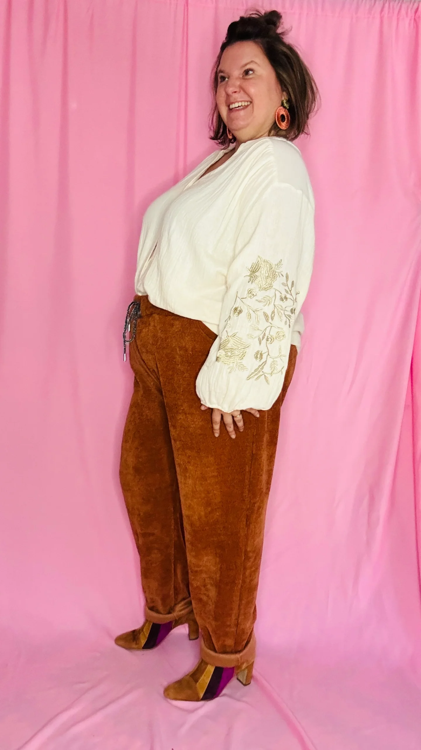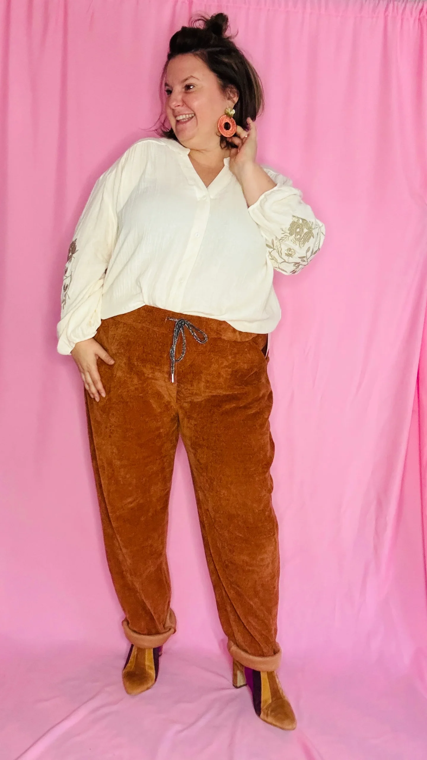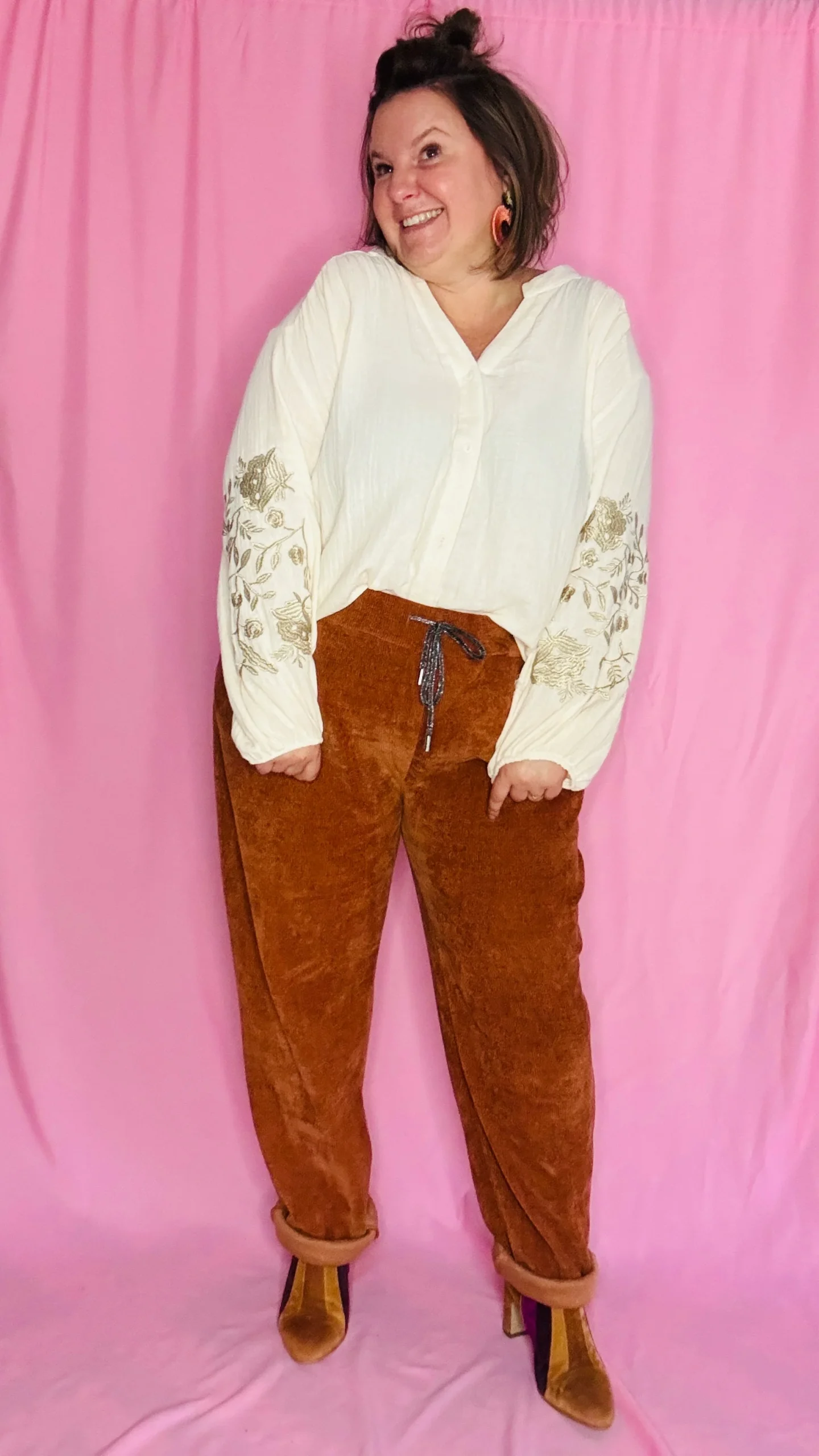 • 🌸 Coupe : effet oversize, manches longues ballon