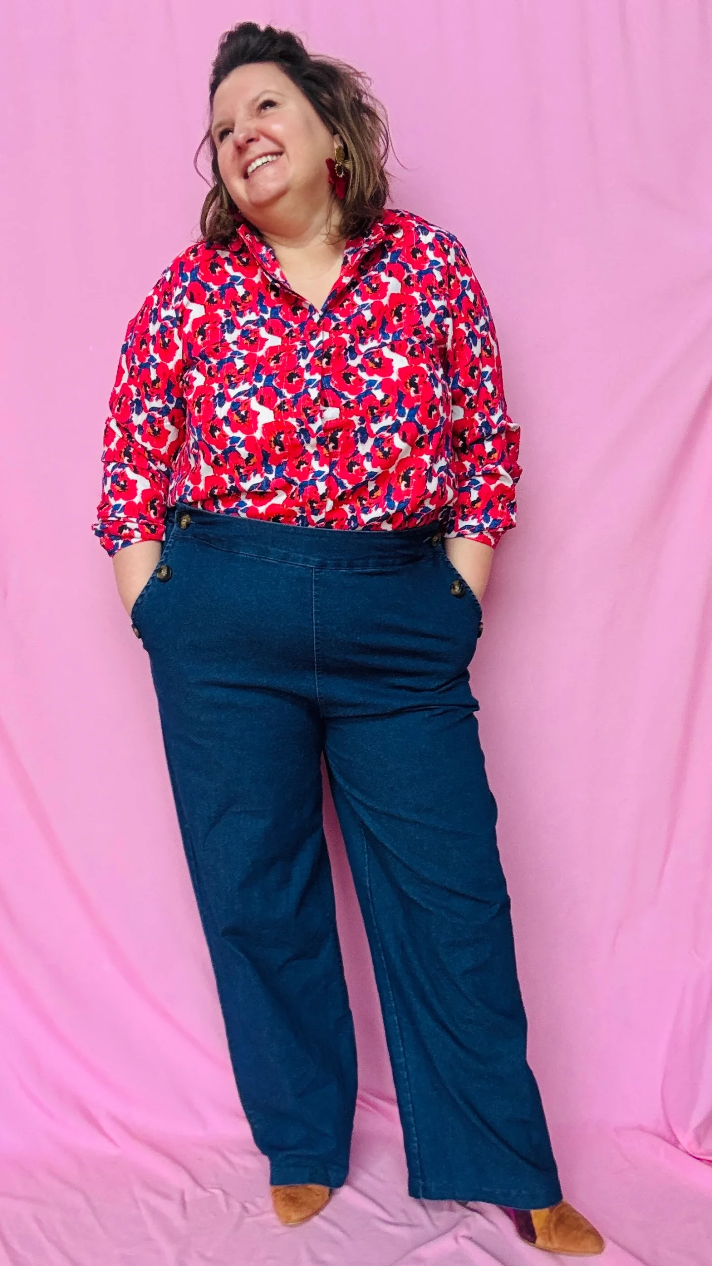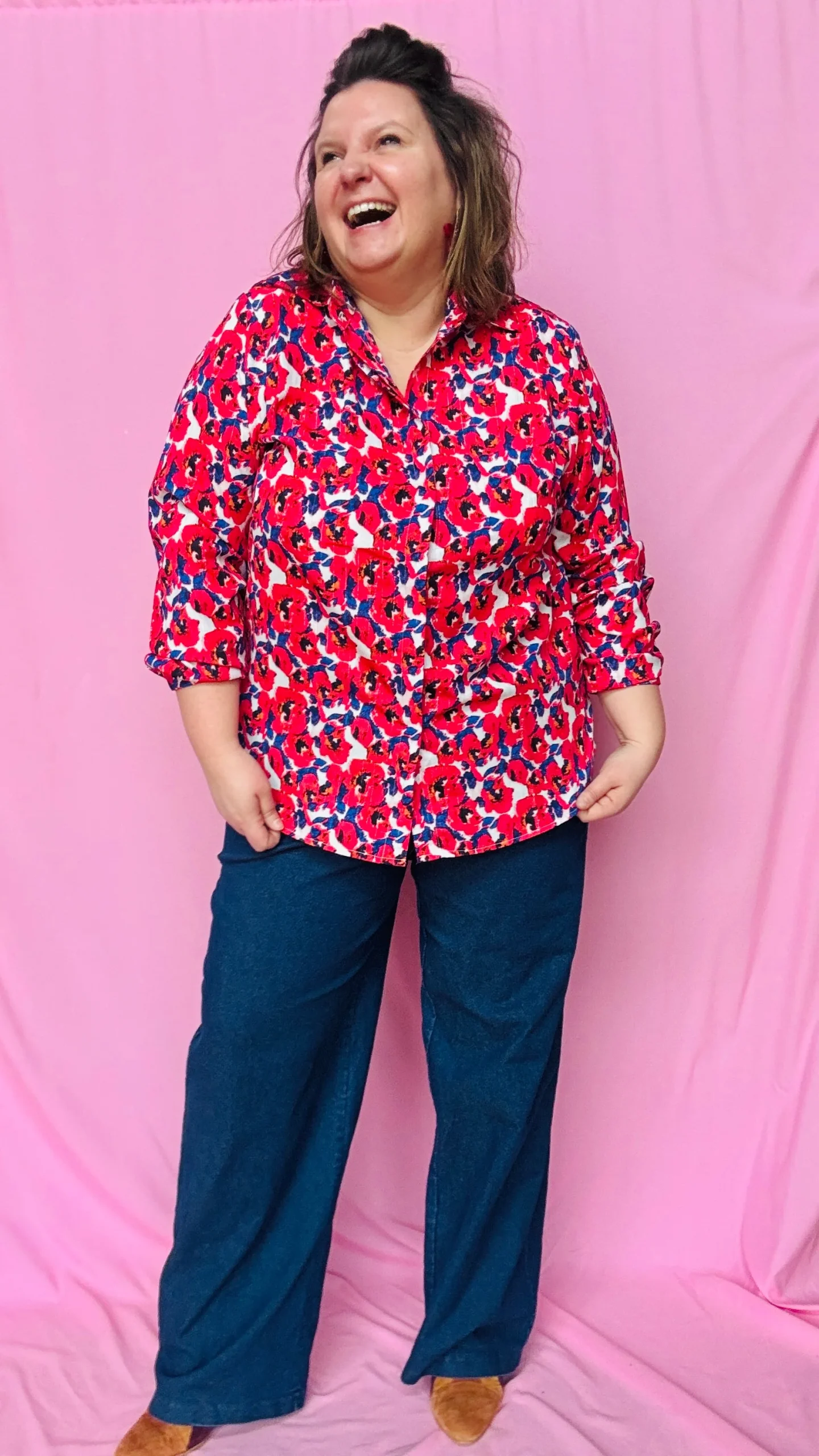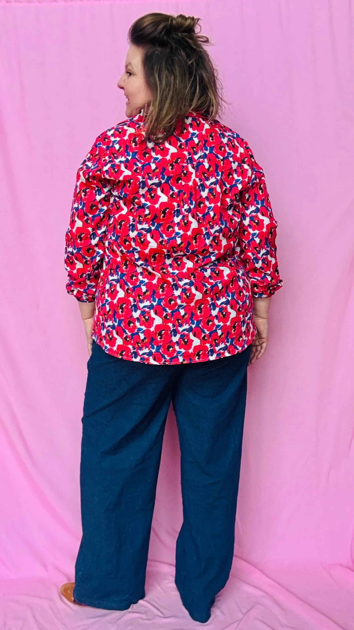 Chemise grande taille motifs fleuris rouge, bleu & blanc – Élégance et confort au quotidien