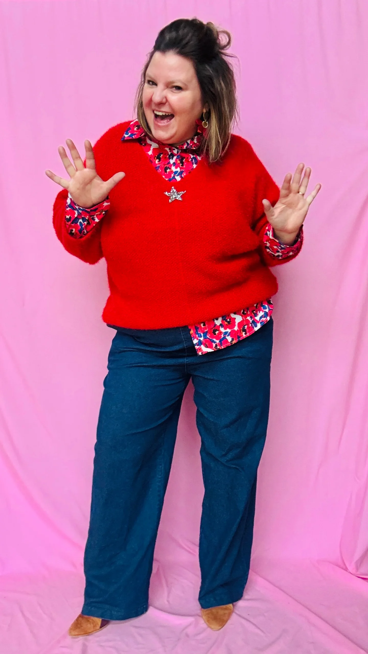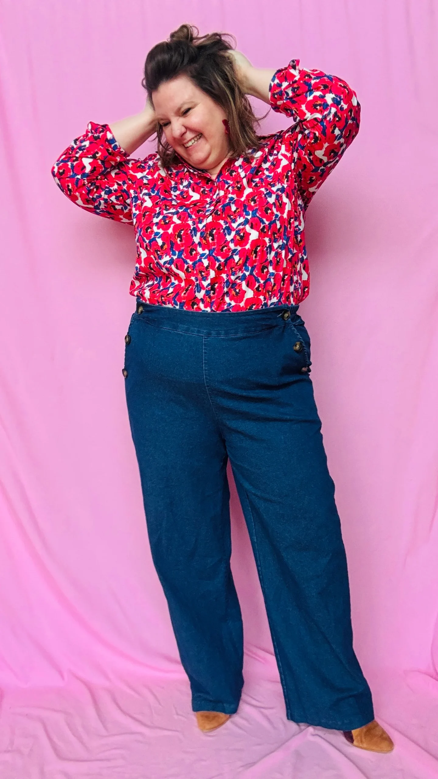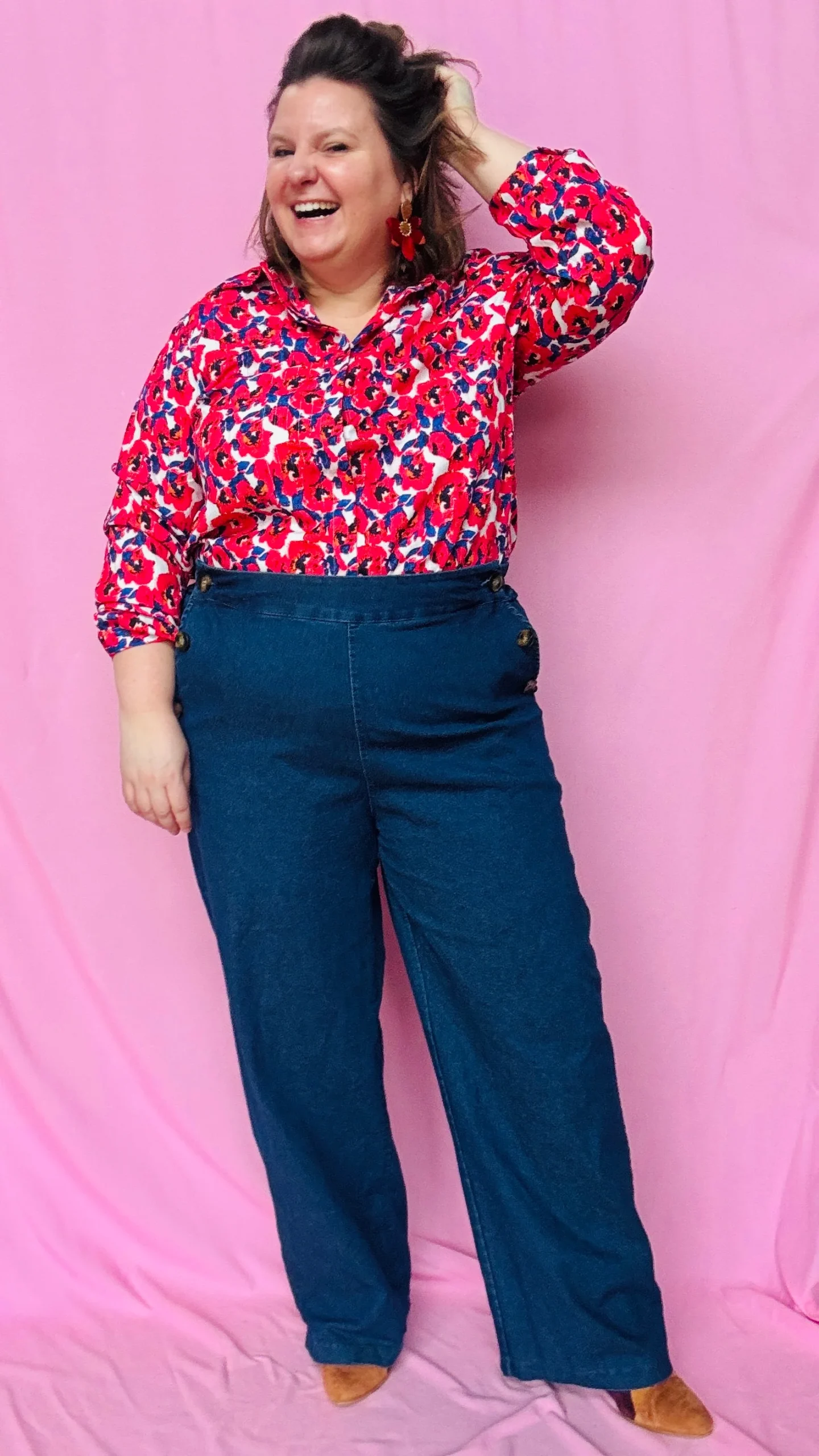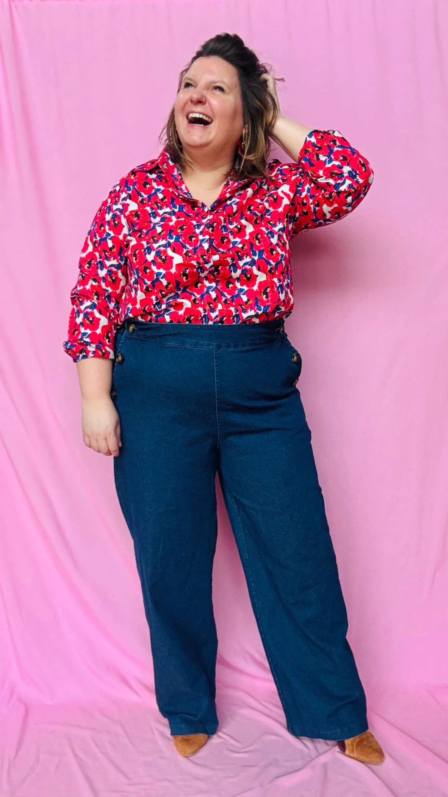 Blouse Coco – grande taille fleurie rouge blanche et bleu roi