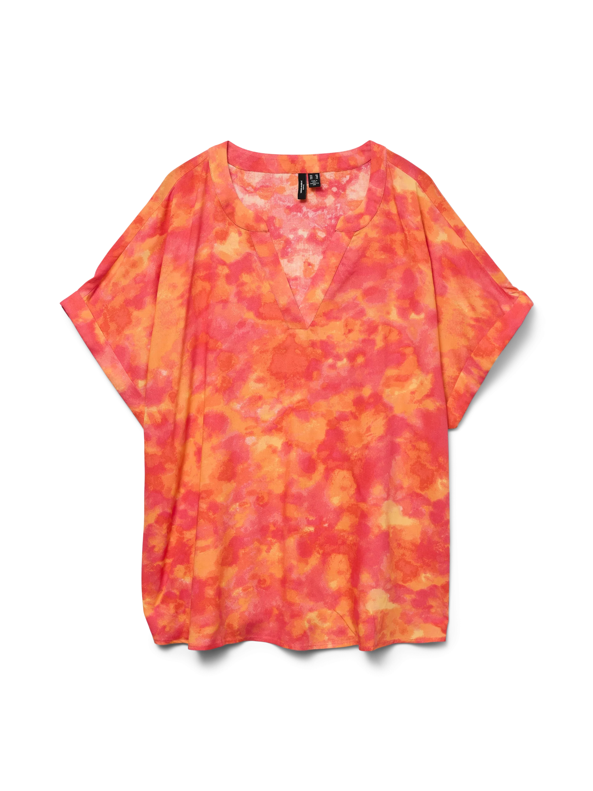 Imprimé abstrait dans des tons orangés, roses et rouges