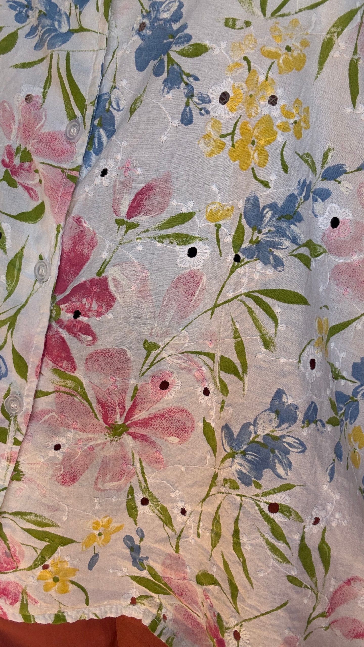 Sa base blanche est sublimée par de délicates broderies aux tons bleu, rose et jaune pour un rendu à la fois romantique et créatif. On adore ses manches courtes et fluides, parfaites pour celles qui aiment le confort sans compromis sur le style !