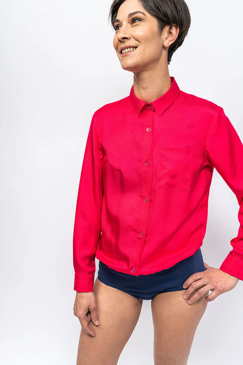 Ce body uni écoresponsable a une culotte tout confort en maille de coton stretch et upcyclé. Et la chemise, vous la connaissez, c’est notre chemise Cool : elle a une coupe classique, des pinces poitrine (parfaitement placées pour les poitrines généreuses et les petites poitrines), des poignets avec fente indéchirable et 1 poche poitrine.