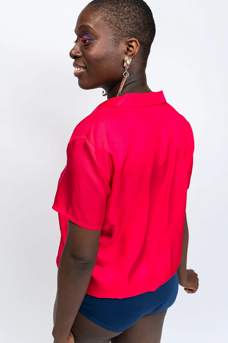 Ce body uni écoresponsable a une culotte tout confort en maille de coton stretch et upcyclé. Et le chemise, vous allez bien la connaitre, c’est notre chemise Hawaïenne : elle est inspirée du meilleur du workwear, avec son allure de vacances exotiques, entre japon et Hawaï, typique avec son col de chemisier, sa coupe droite et large, et ses manches courtes et larges juste ce qu’il faut.