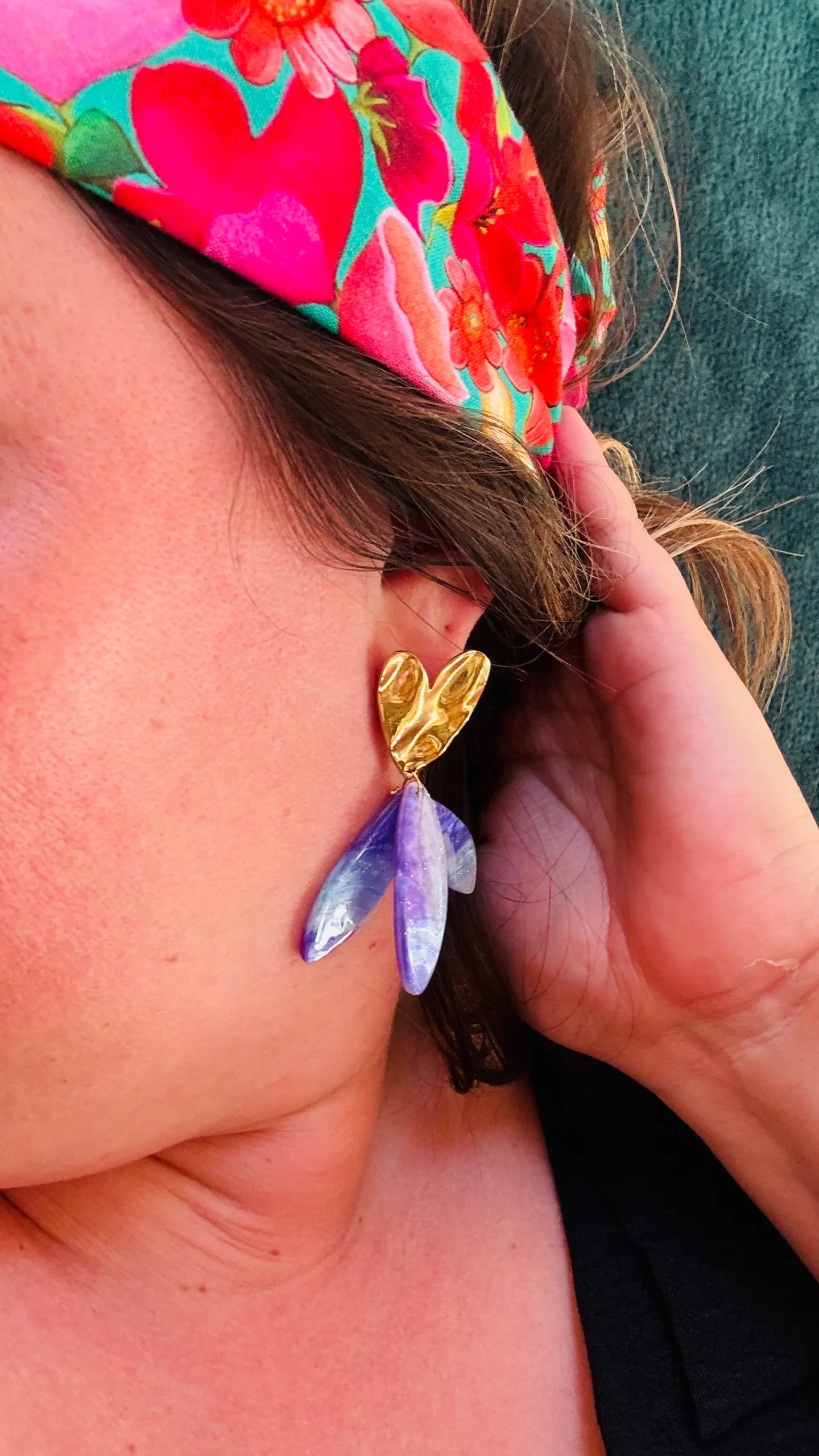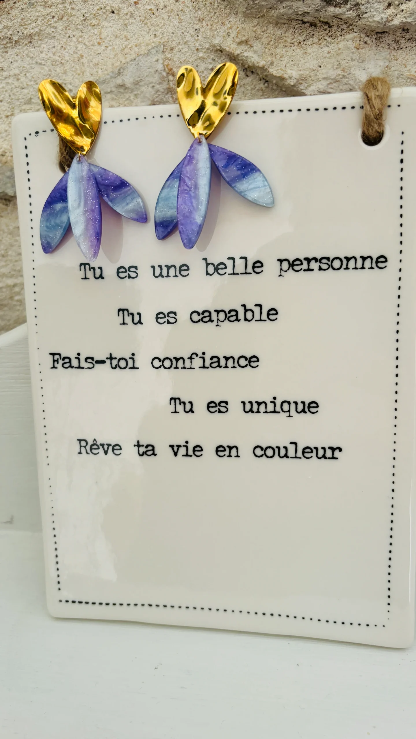 Avec ces boucles d’oreilles en acier inoxydable cÅ“ur dorĂ© et pendants violets, vous apporterez une touche de couleur et de verticalitĂ© Ă  vos tenues, alliant confort et Ă©lĂ©gance au quotidien.