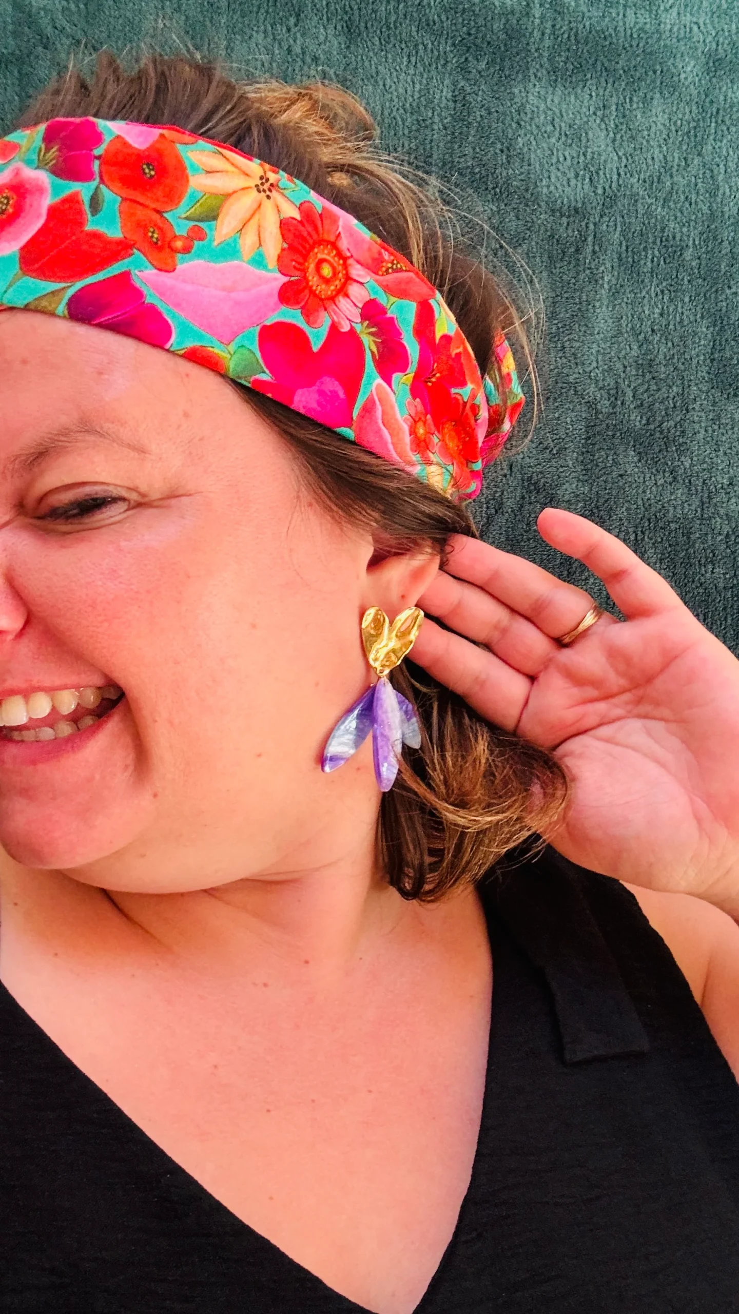 Ajoutez une touche de couleur et de verticalitĂ© Ă  vos tenues avec nos boucles d’oreilles en acier inoxydable. Conçues avec une base cÅ“ur dorĂ© et des pendants aux reflets violets Ă  bleu foncĂ©, elles apportent luminositĂ© et Ă©lĂ©gance Ă  votre look. Les reflets nacrĂ©s ajoutent une dimension lumineuse et colorĂ©e, tandis que leur lĂ©gèretĂ© assure un confort optimal pour un port quotidien. Parfaites pour le quotidien, le travail ou une cĂ©rĂ©monie, ces boucles d’oreilles sont idĂ©ales pour un style crĂ©atif-artistique.