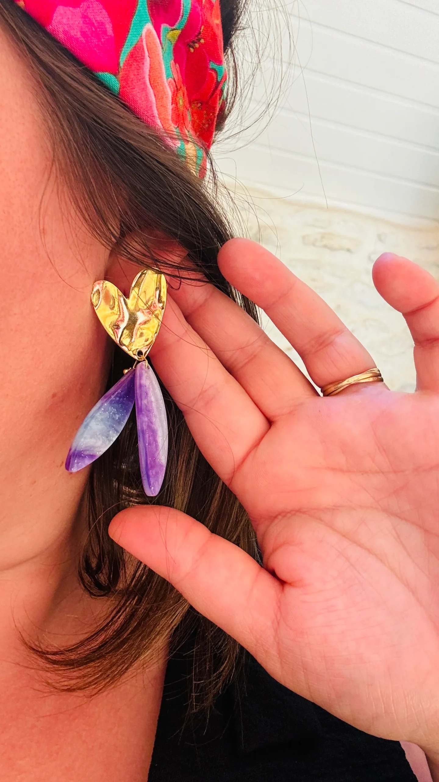 Boucles d’oreilles cÅ“ur dorĂ© avec pendants violets : LuminositĂ© et crĂ©ativitĂ©
