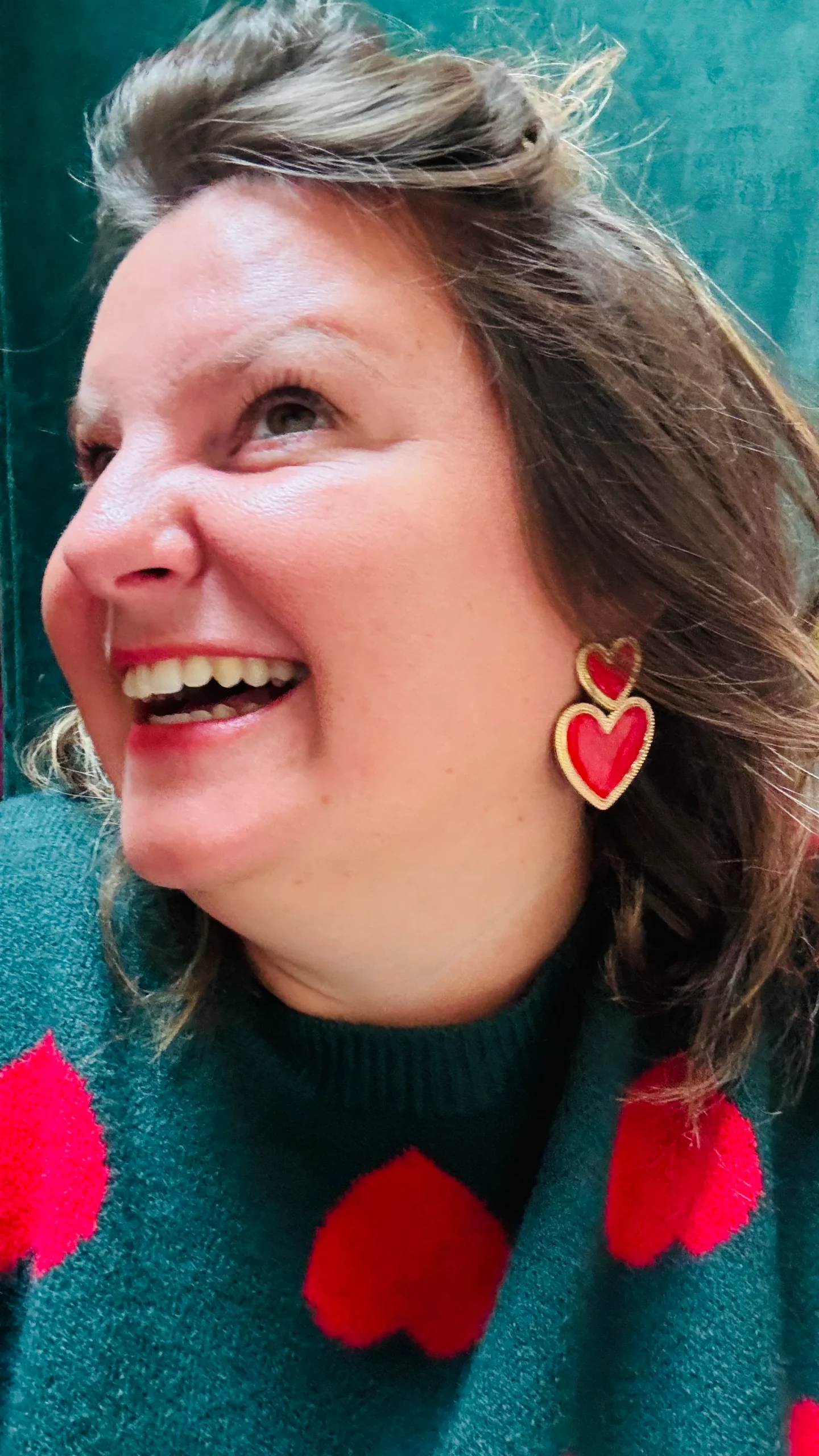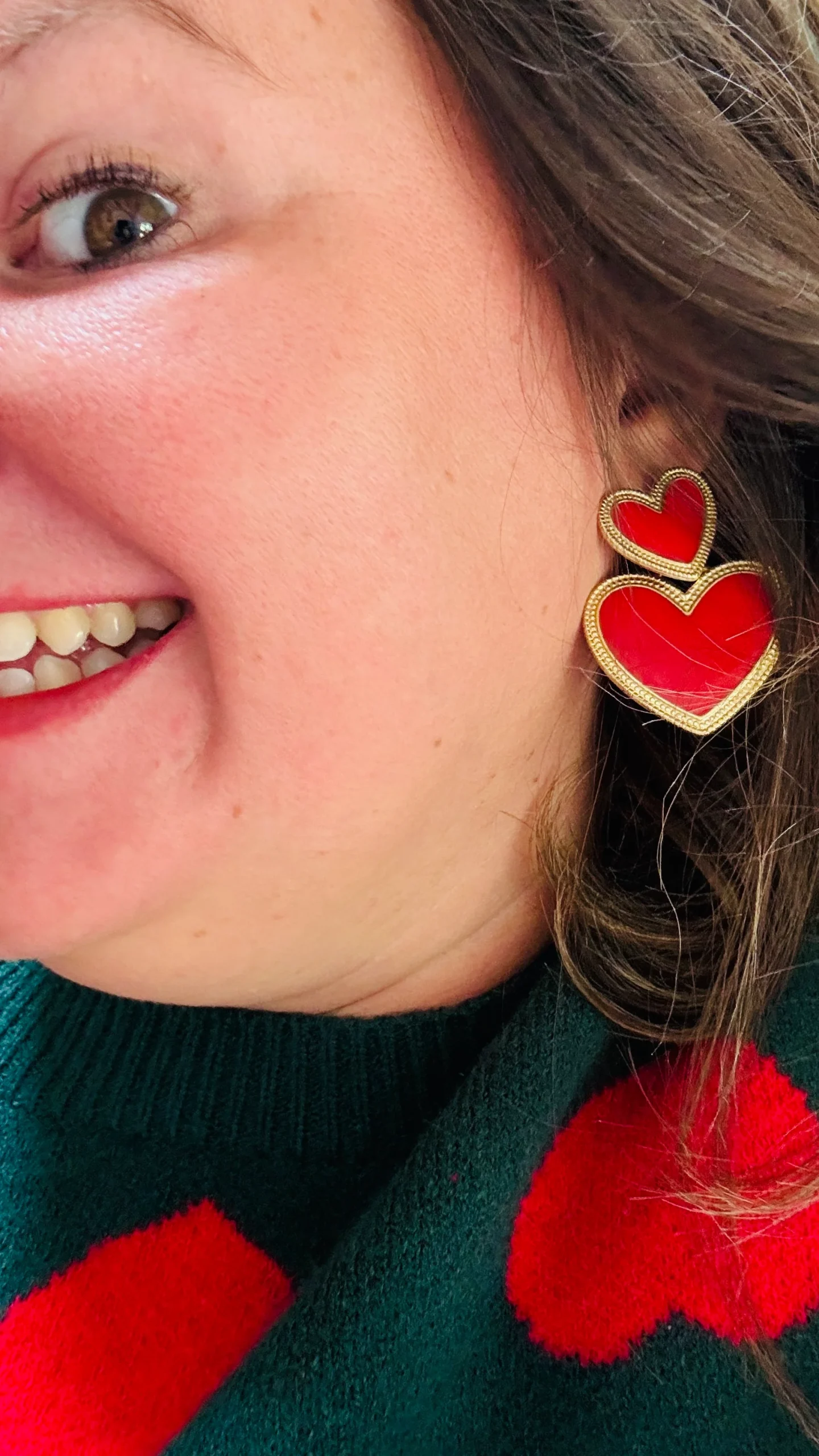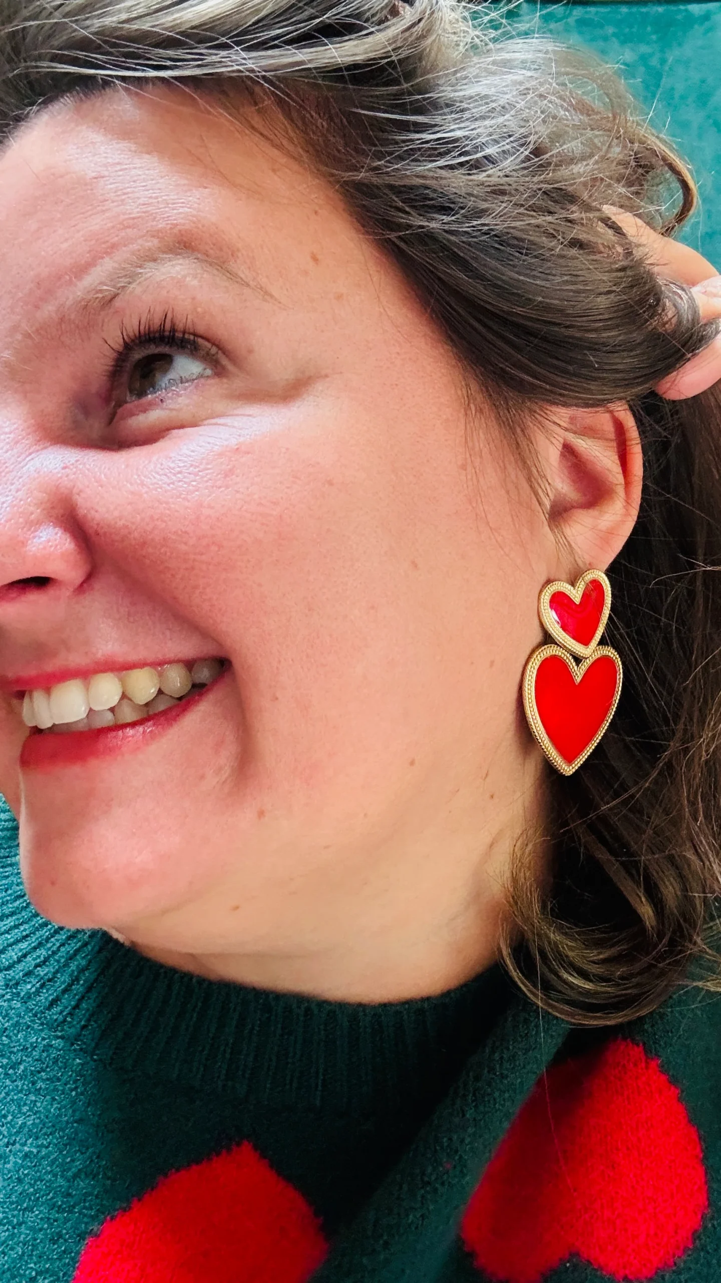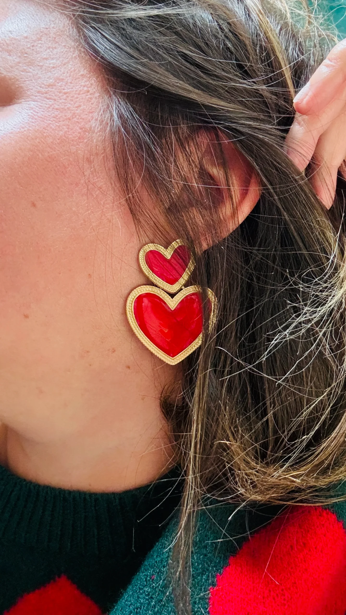 Boucles d’oreilles double cœur rouge et doré : romantique et pétillante.
