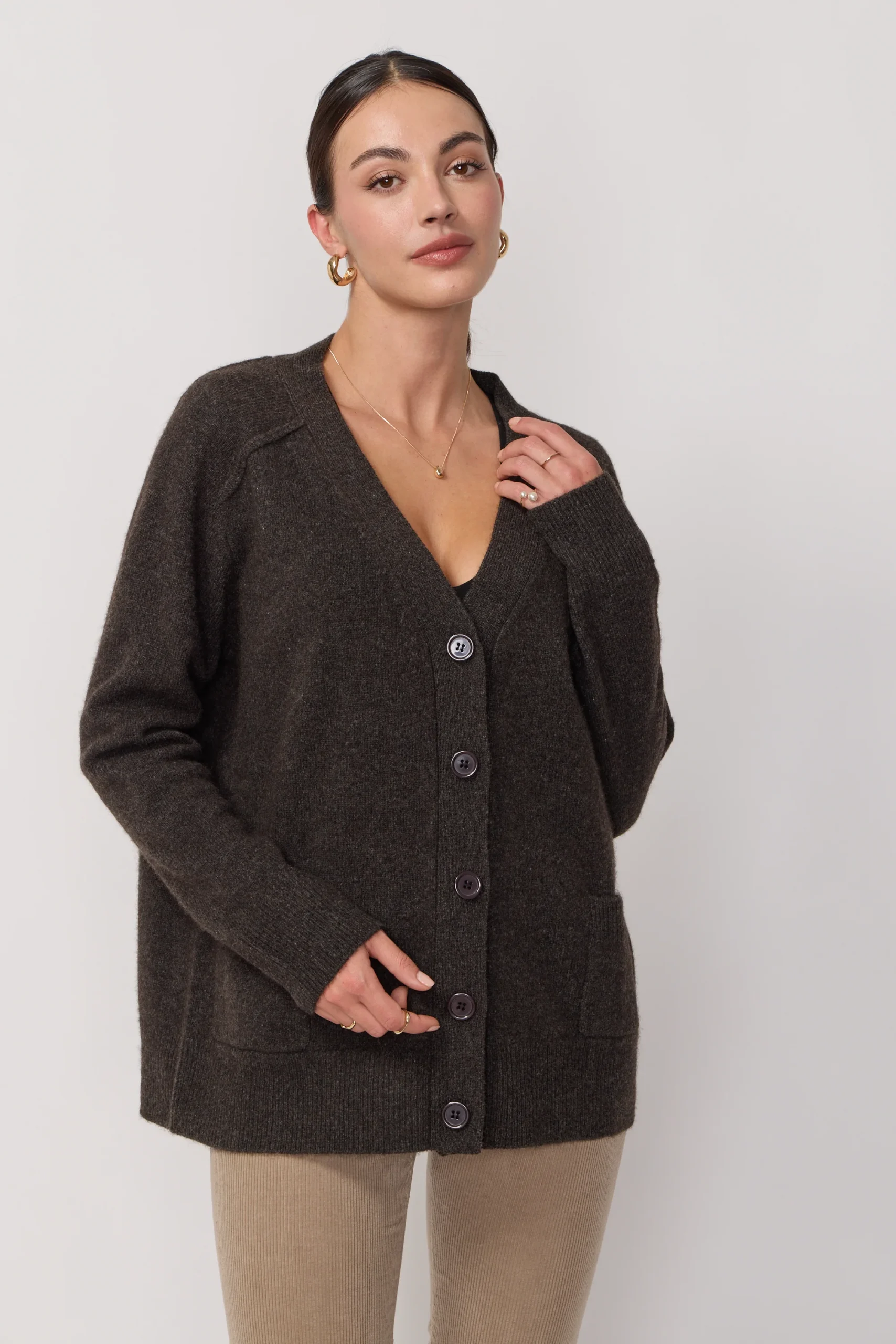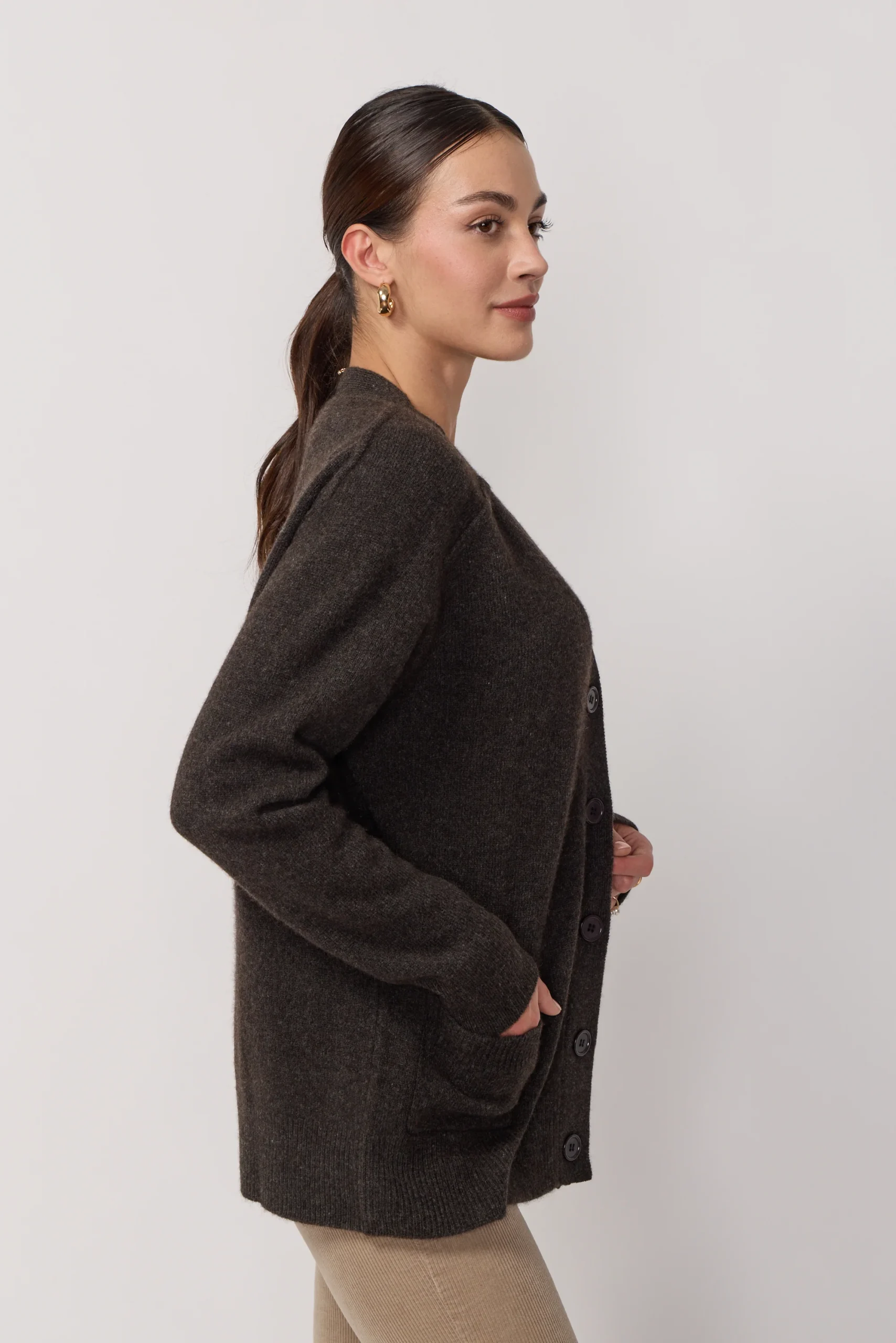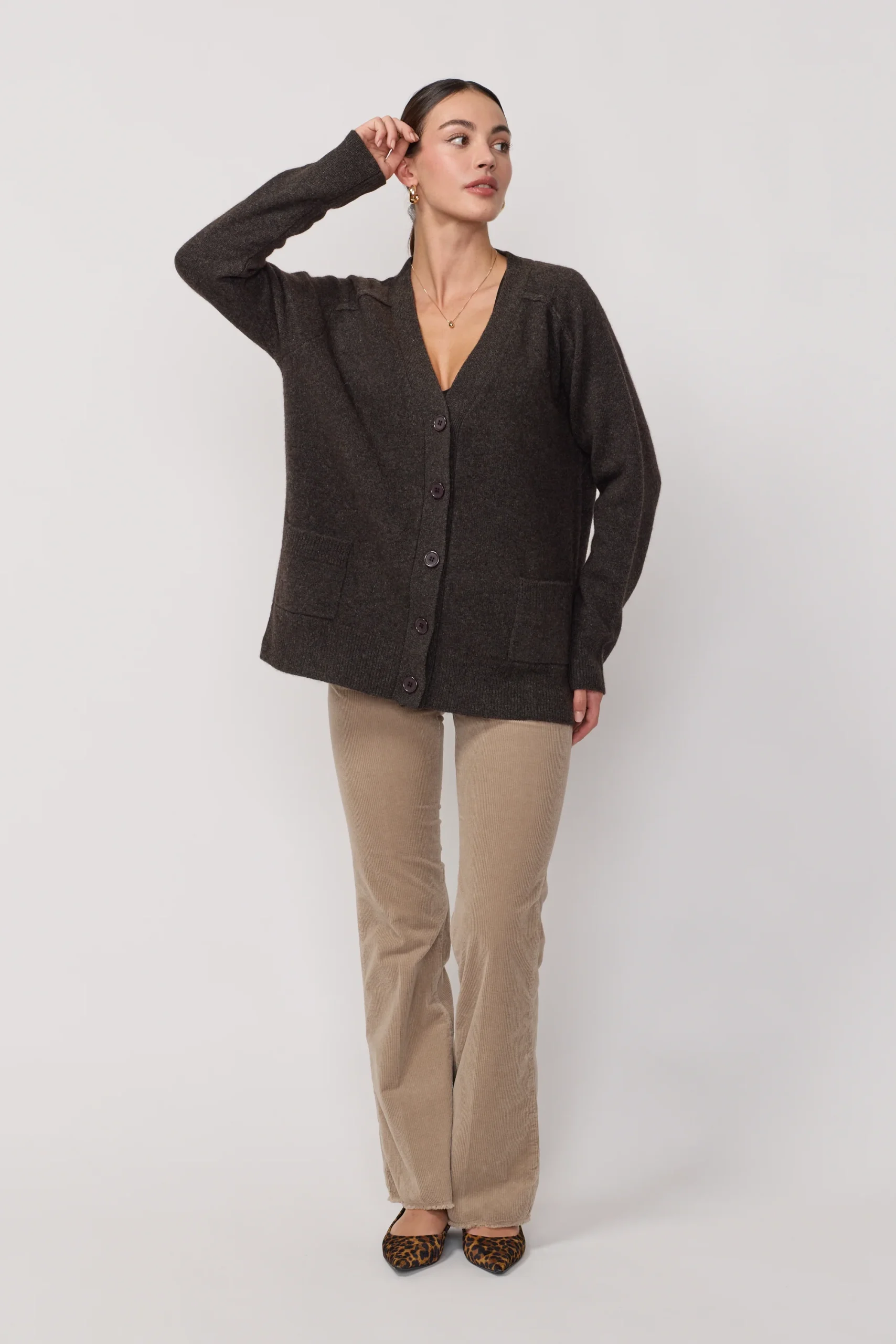Cardigan Oversize Col en V – Brown