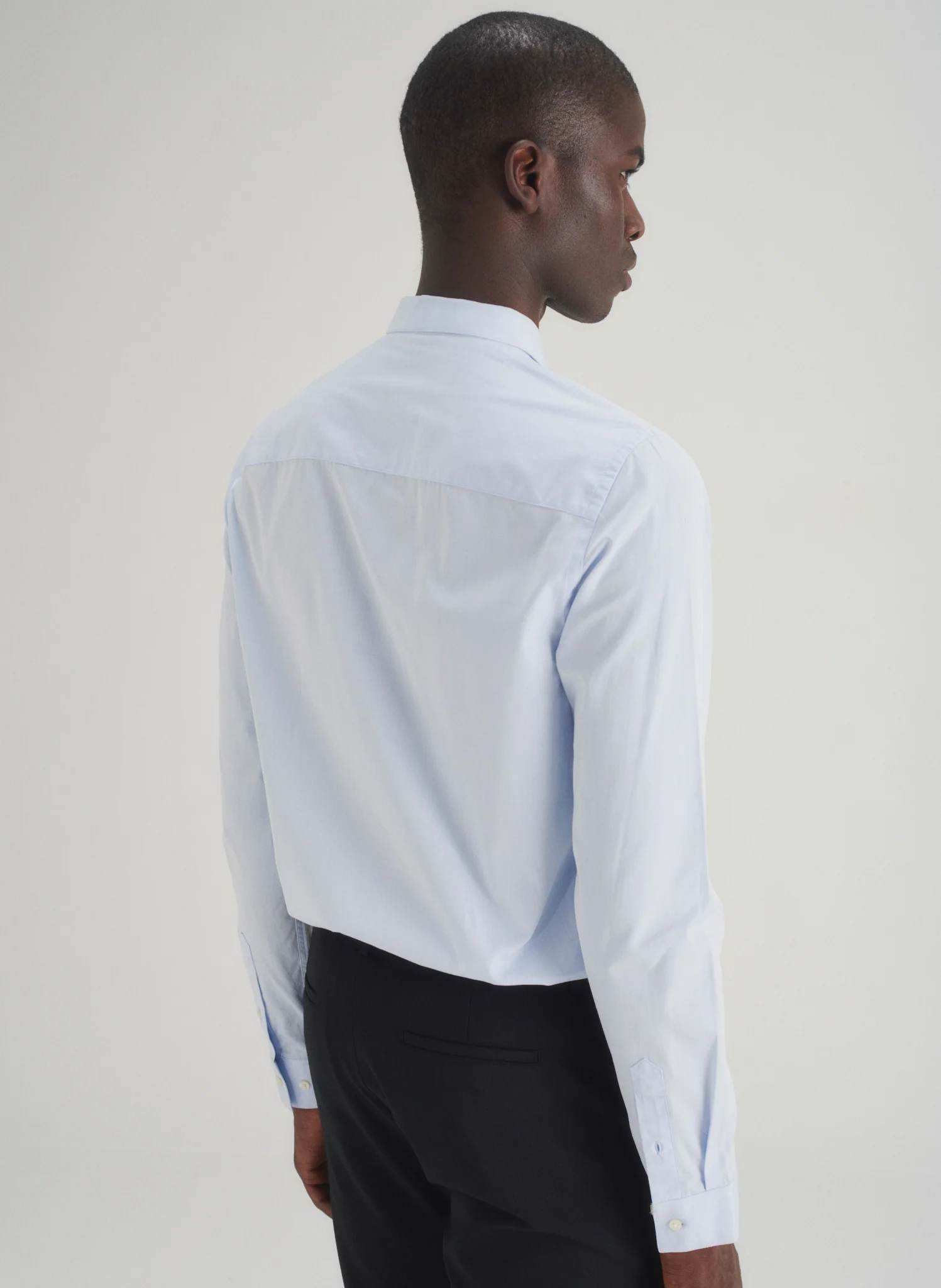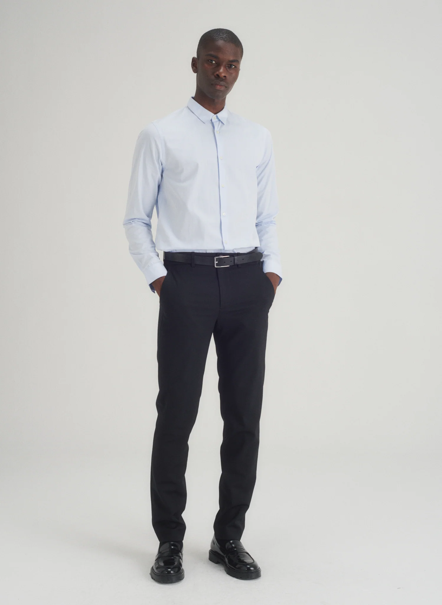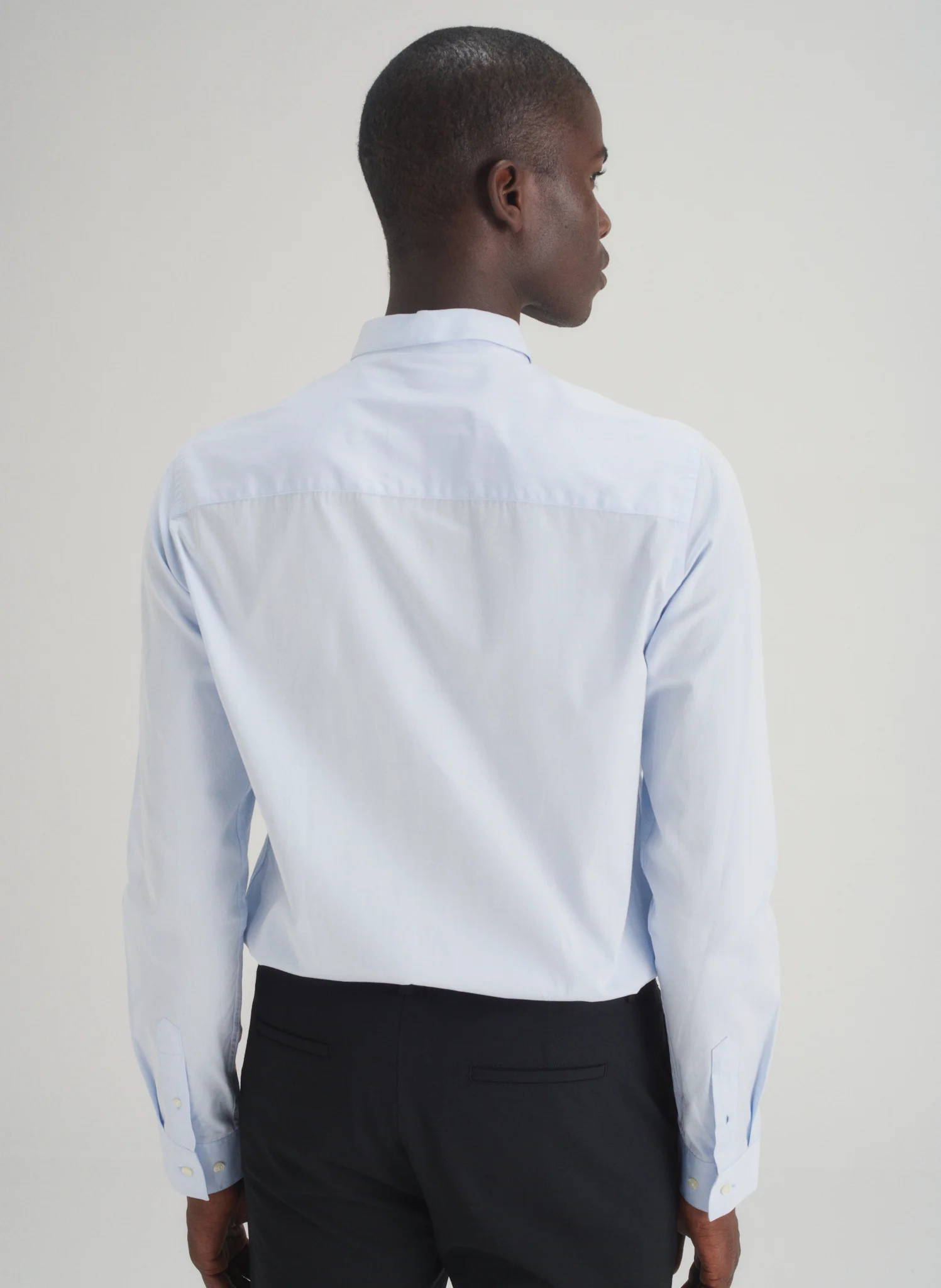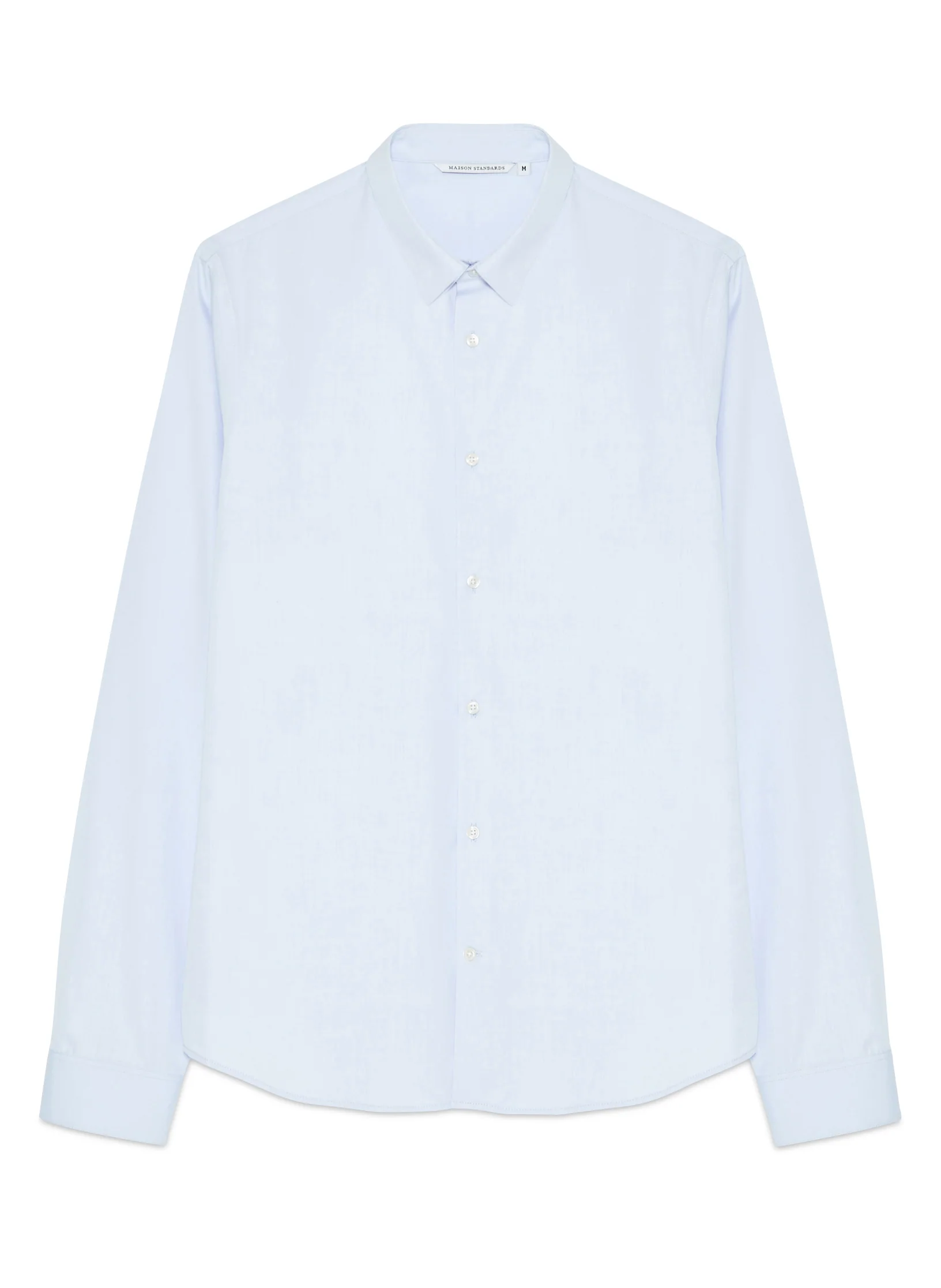 Chemise en popeline petit col. Boutonnée sous le col pour une tenue parfaite du col. Coupe ajustée.