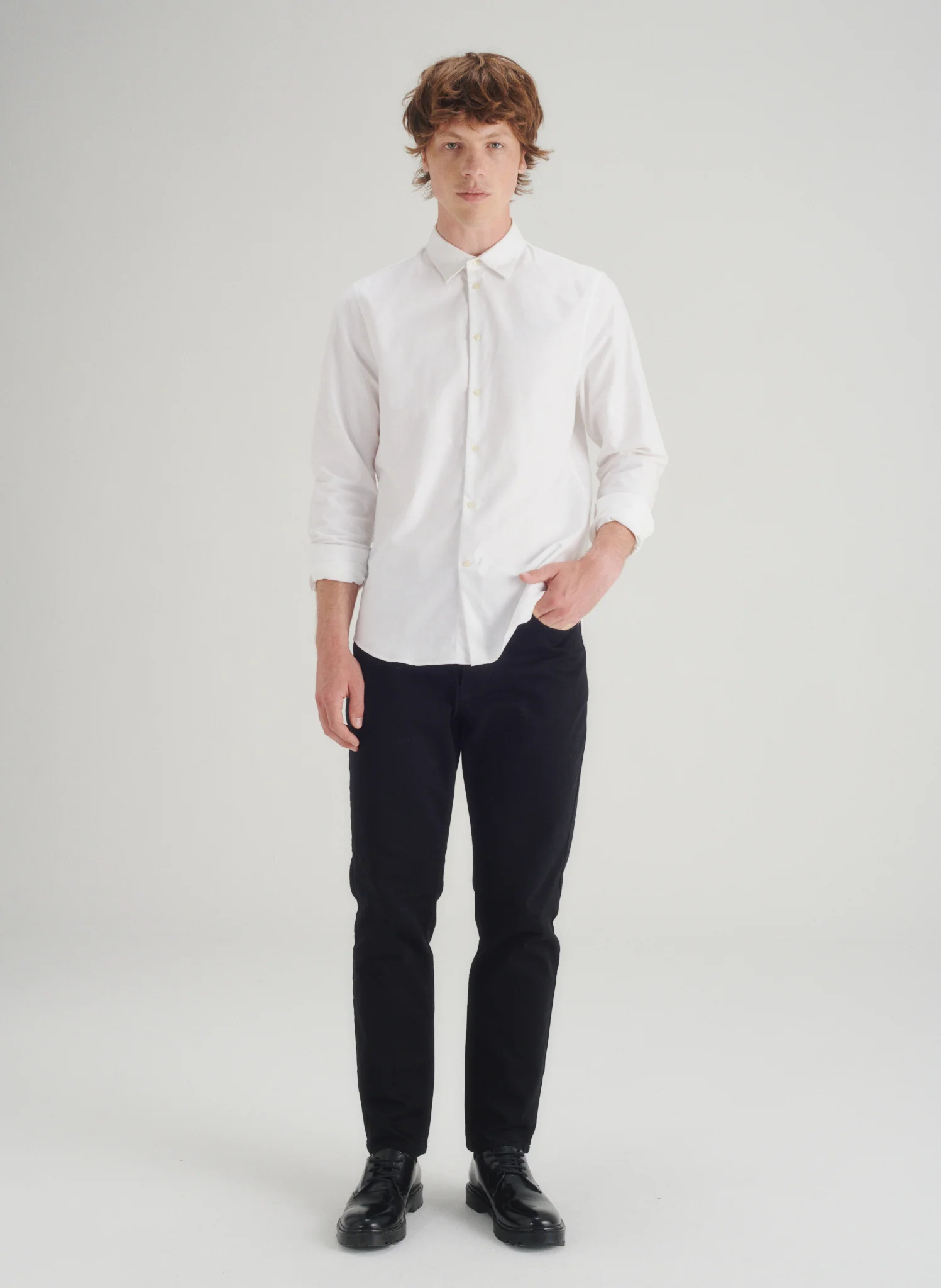 Coupe ajustée, col rabattu à pied de col, détail de boutons cachés sous le col afin de le fixer – Matière coton traitement EASY CARE pour un repassage facilité – Fermeture par patte de boutonnage pliée – Poignets boutonnés avec patte capucin – Empiècement dos et bas liquette