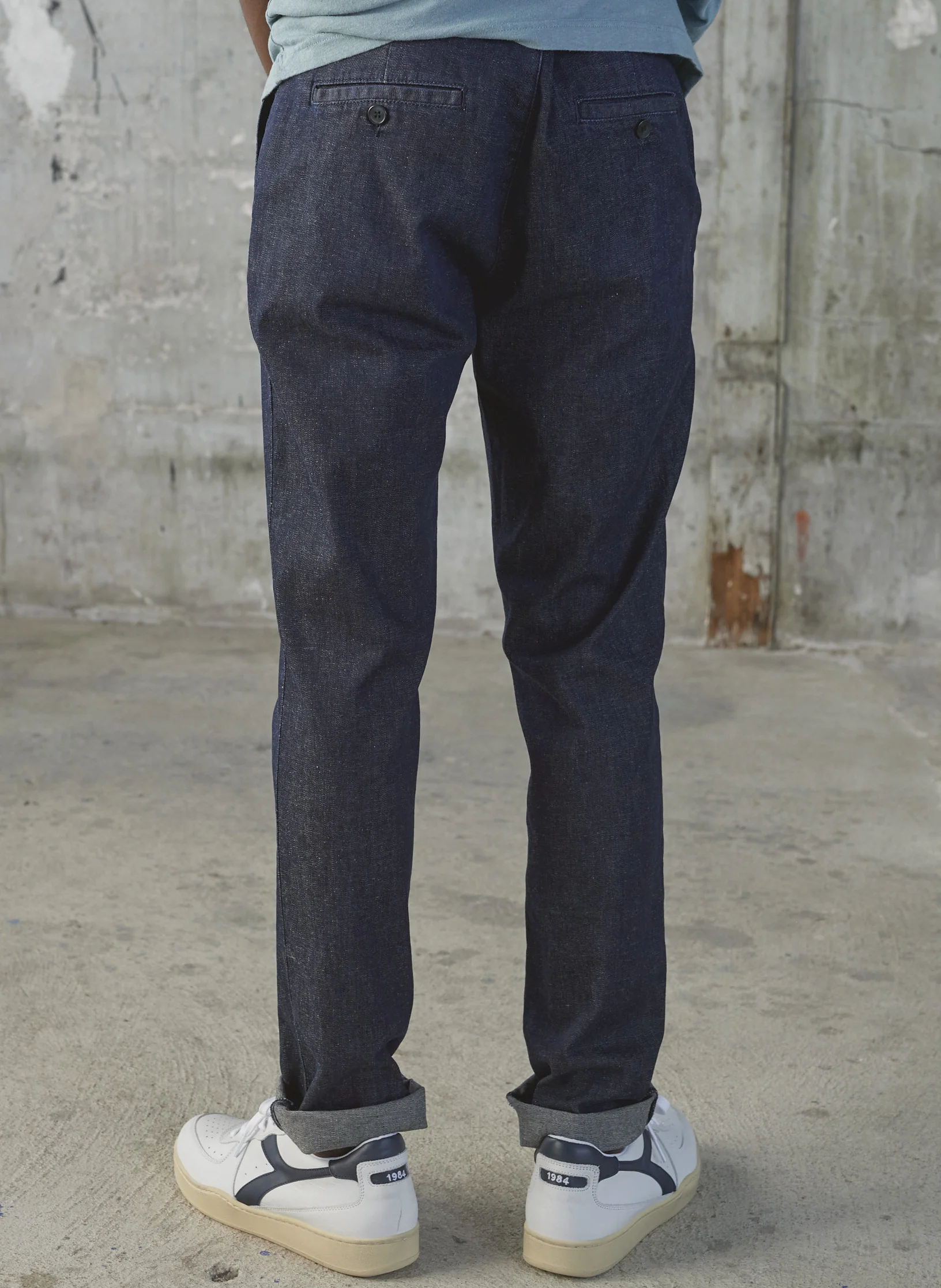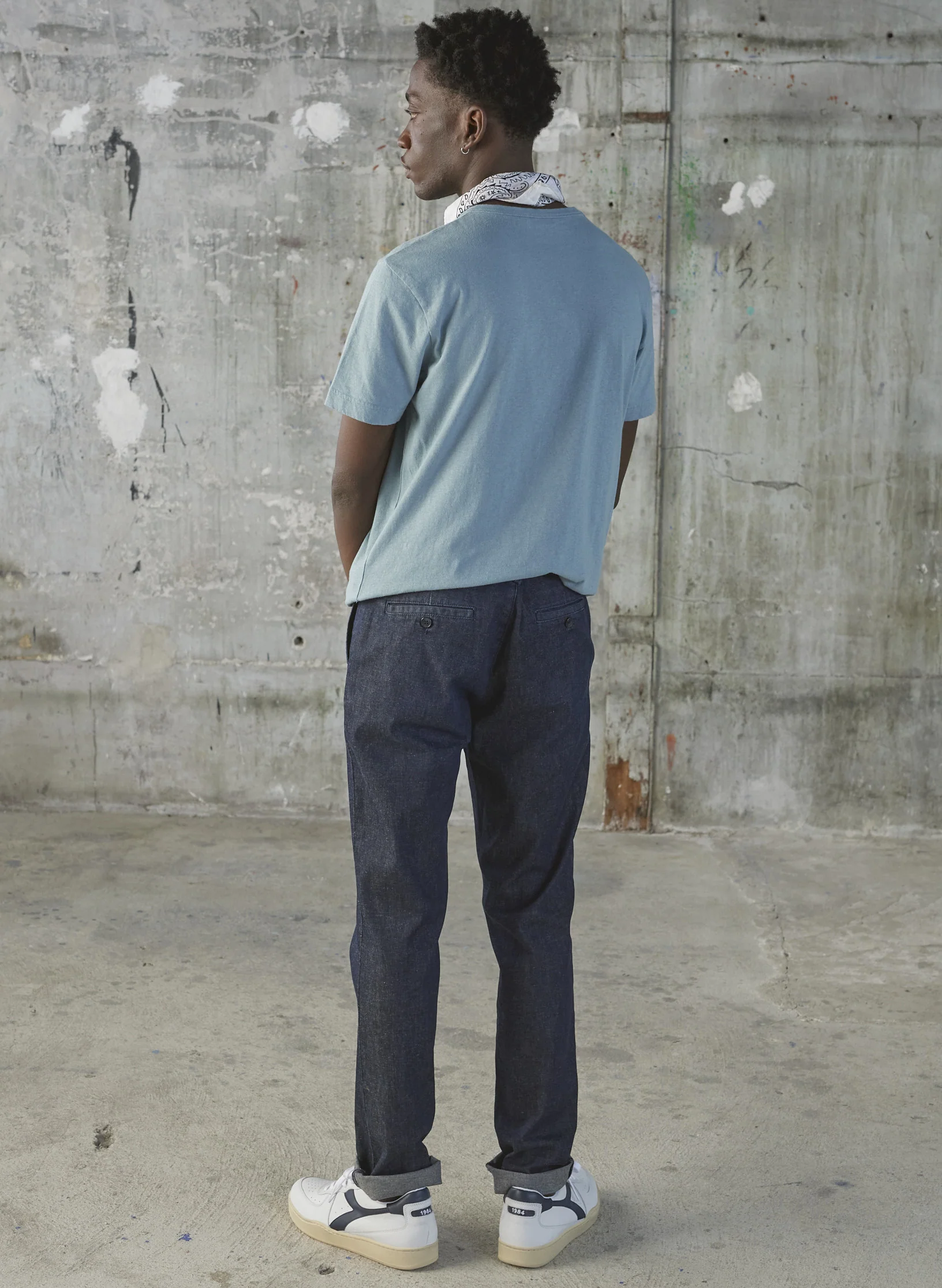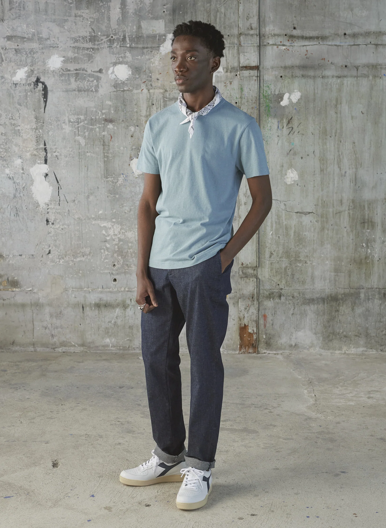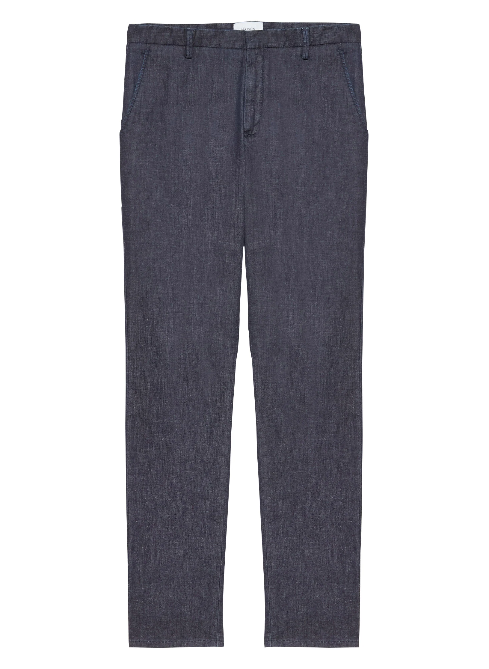 Pantalon chino en denim léger, délavage “stone”– Fermeture zip métal, agrafe métal et bouton cachés– Ceinture montée avec 5 passants– Jambe longue et fuselée– 2 poches italiennes sur le devant– 2 poches passepoilées au dos avec boutons Notre mannequin Birame mesure 1.85m et porte une taille 40.Notre mannequin Sammy mesure 1.75m et porte une taille […]