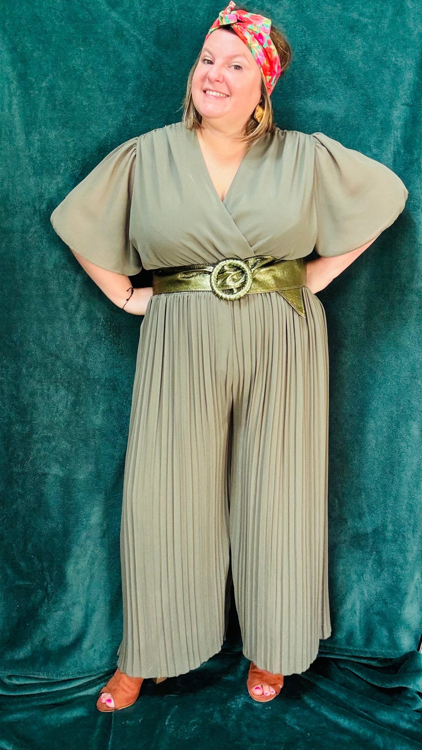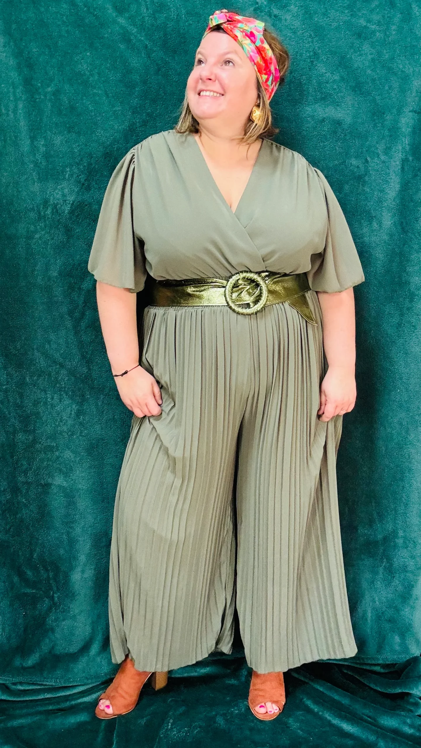 Apportez une touche d’élégance et de légèreté à votre garde-robe avec notre combinaison grande taille colorée. Parfaite pour les cérémonies comme les mariages ou baptêmes, ainsi que pour un look décontracté au quotidien, cette combinaison plissée et fluide vous assure un confort optimal tout en restant chic. Son décolleté cache cœur et ses manches fluides et vaporeuses ajoutent une touche de féminité. Élastiquée à la taille et doublée pour éviter toute transparence, elle s’adapte parfaitement à votre silhouette. Taille unique (42-50) qui s’adapte très bien à de nombreuses morphologies.