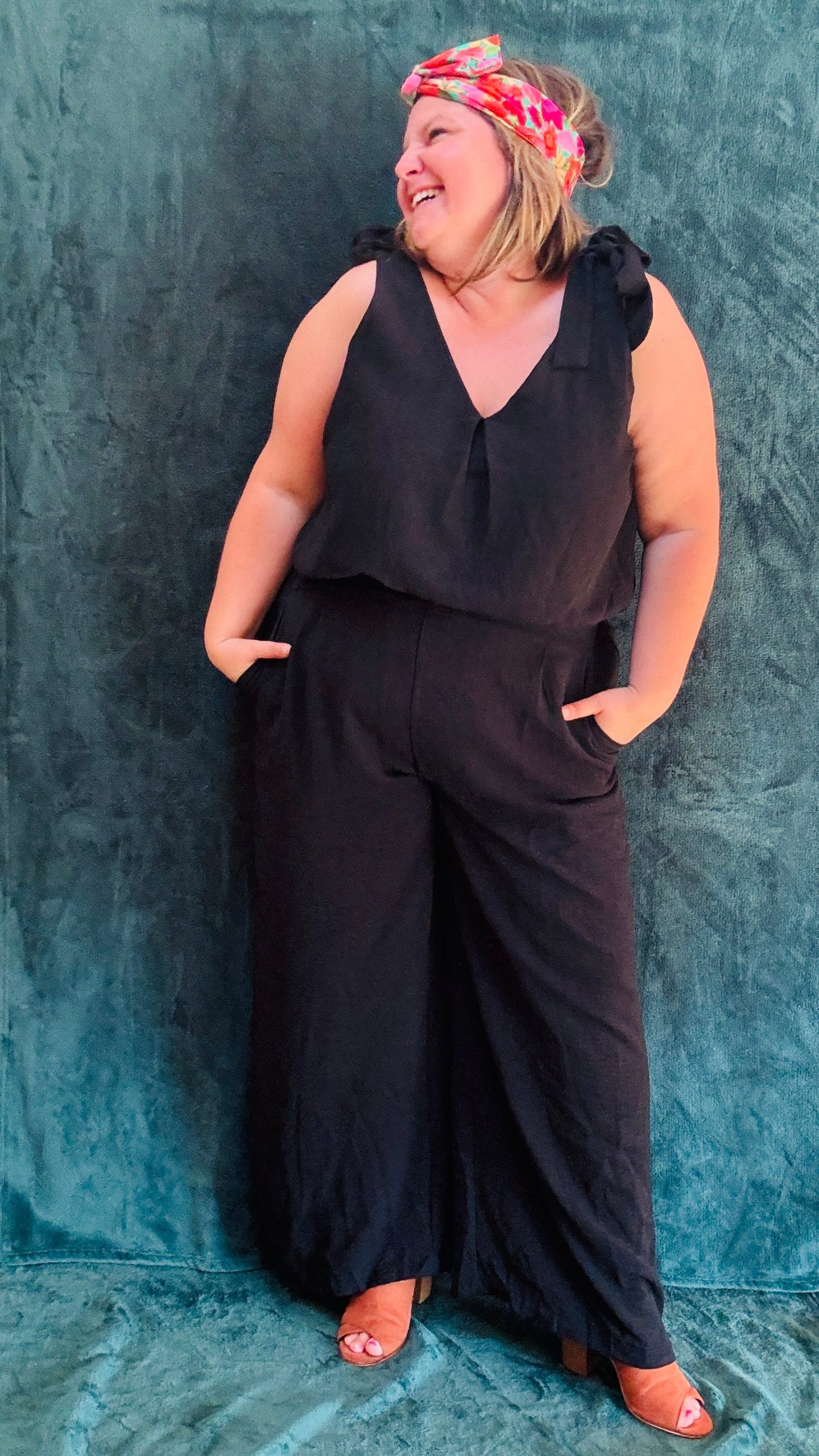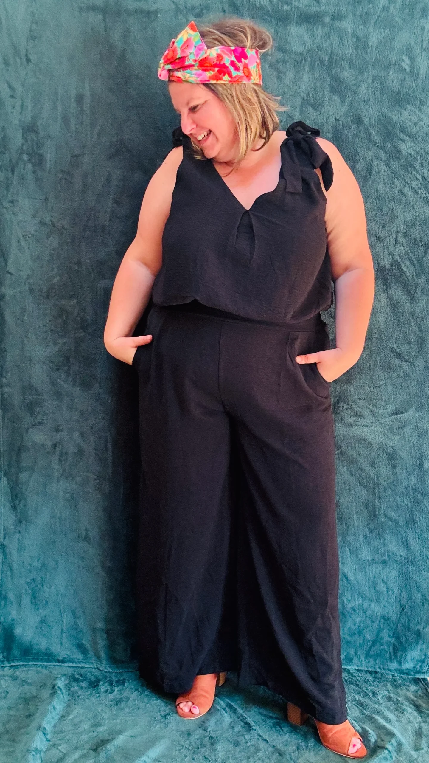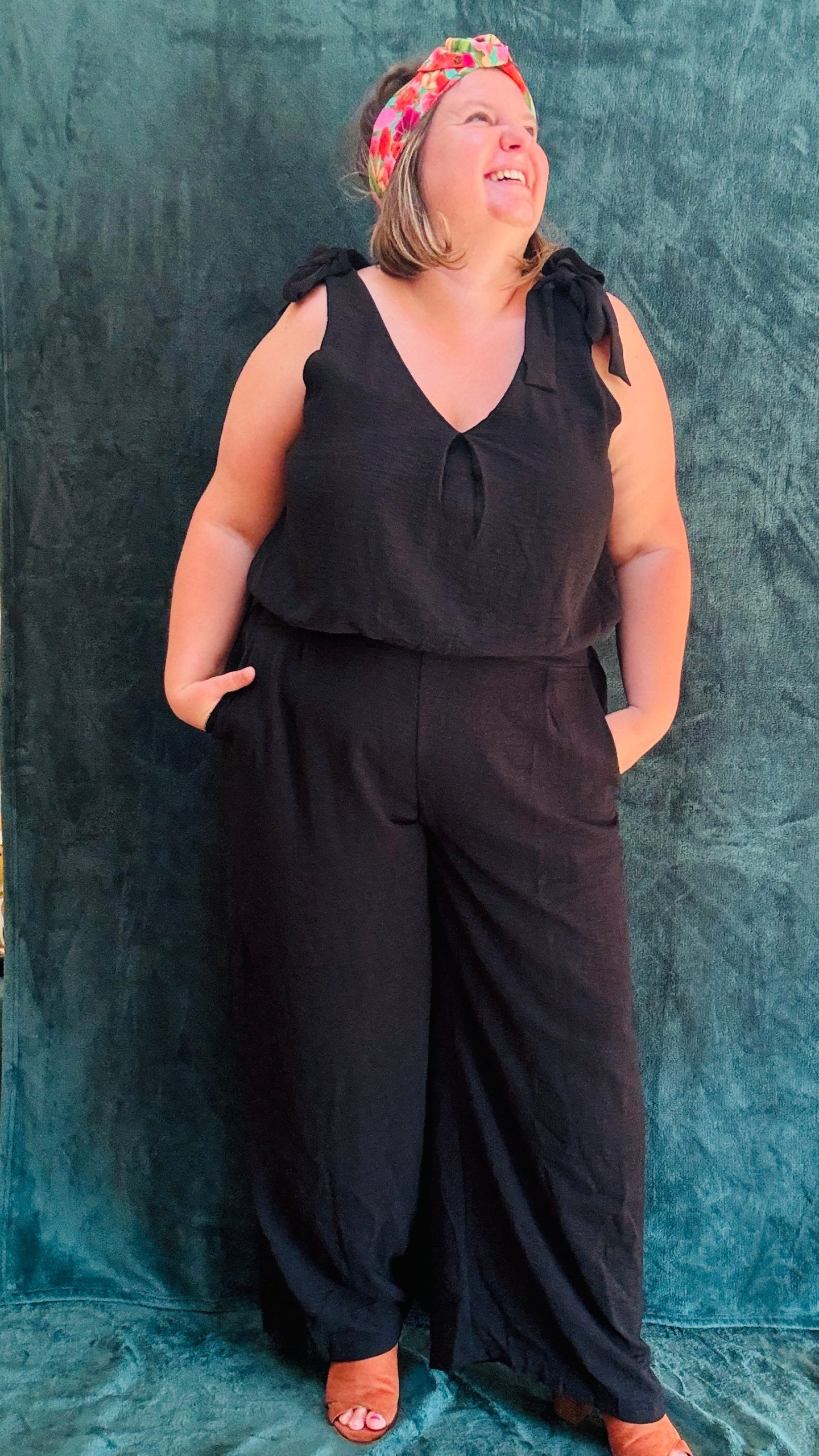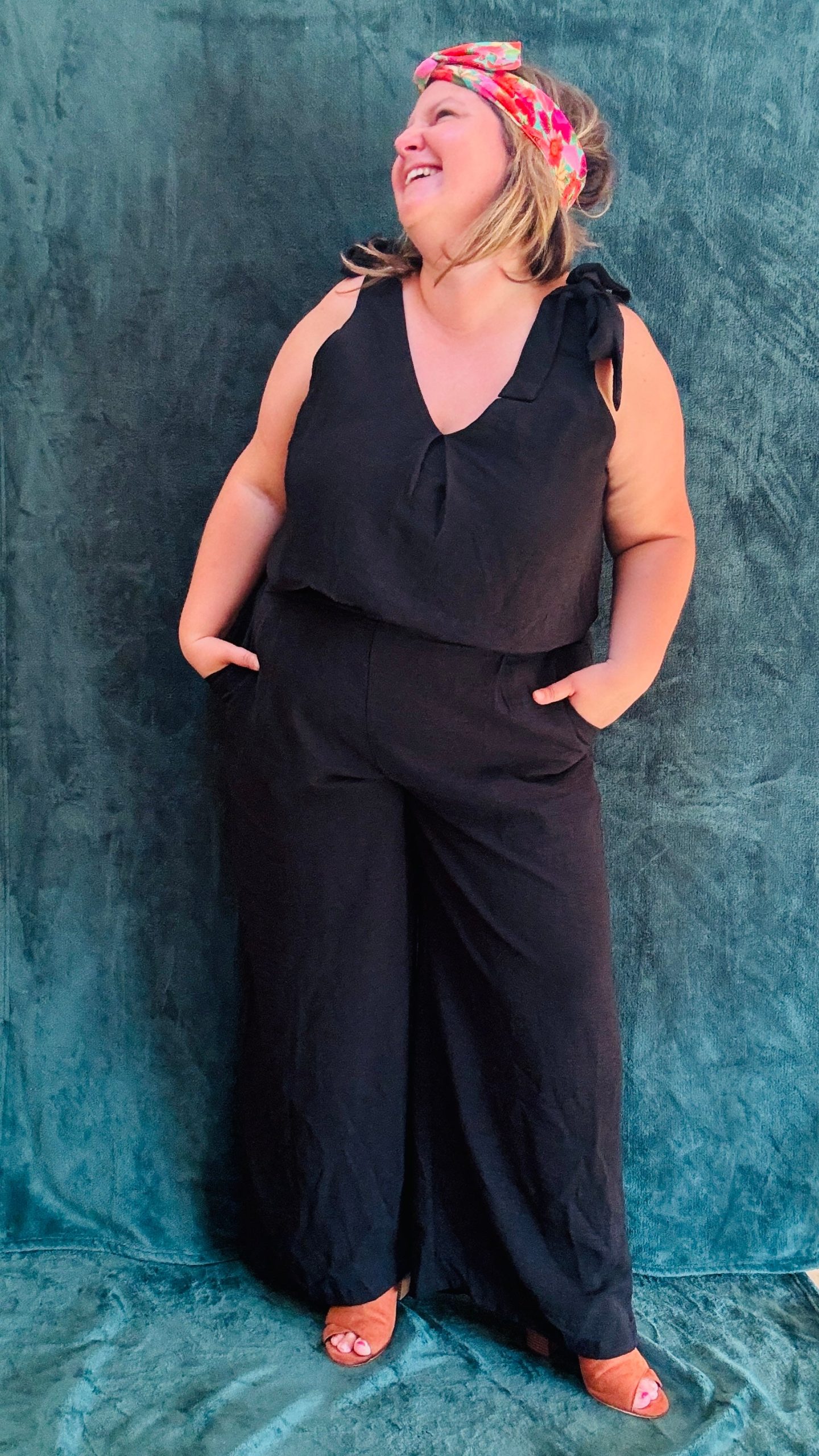 Affirmez votre style avec notre combinaison grande taille sans manche. Les détails noeuds décoratifs sur les épaules apportent du volume et structurent élégamment la silhouette. Le décolleté en V, à la fois sur le devant et dans le dos, ajoute une touche de sophistication. Disponible en noir et en bleu, cette combinaison ceinturée à la taille met en valeur la silhouette tout en offrant un confort optimal. Les poches sur le côté et sur les fesses ajoutent une touche pratique et mettent en avant le fessier.
