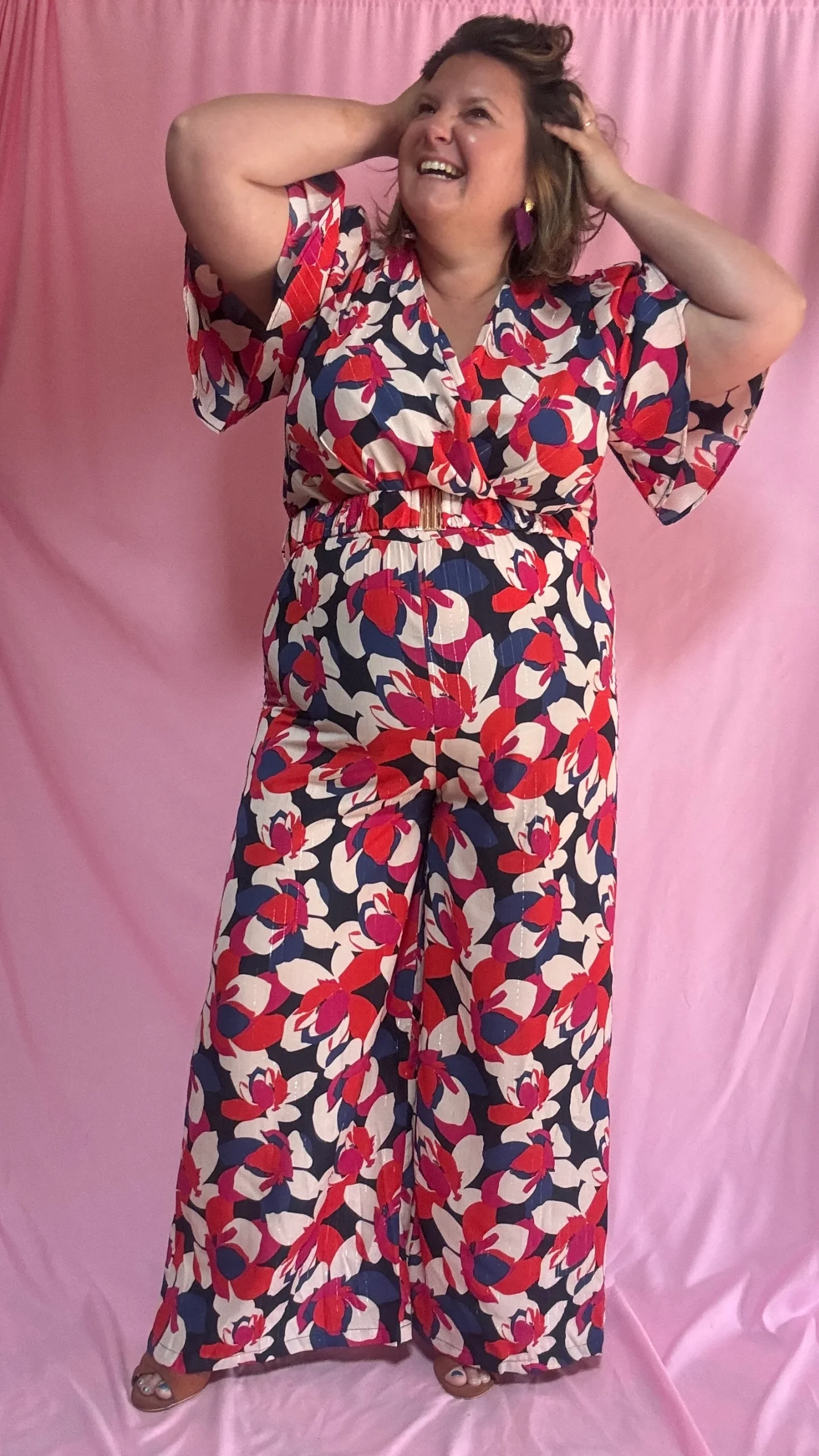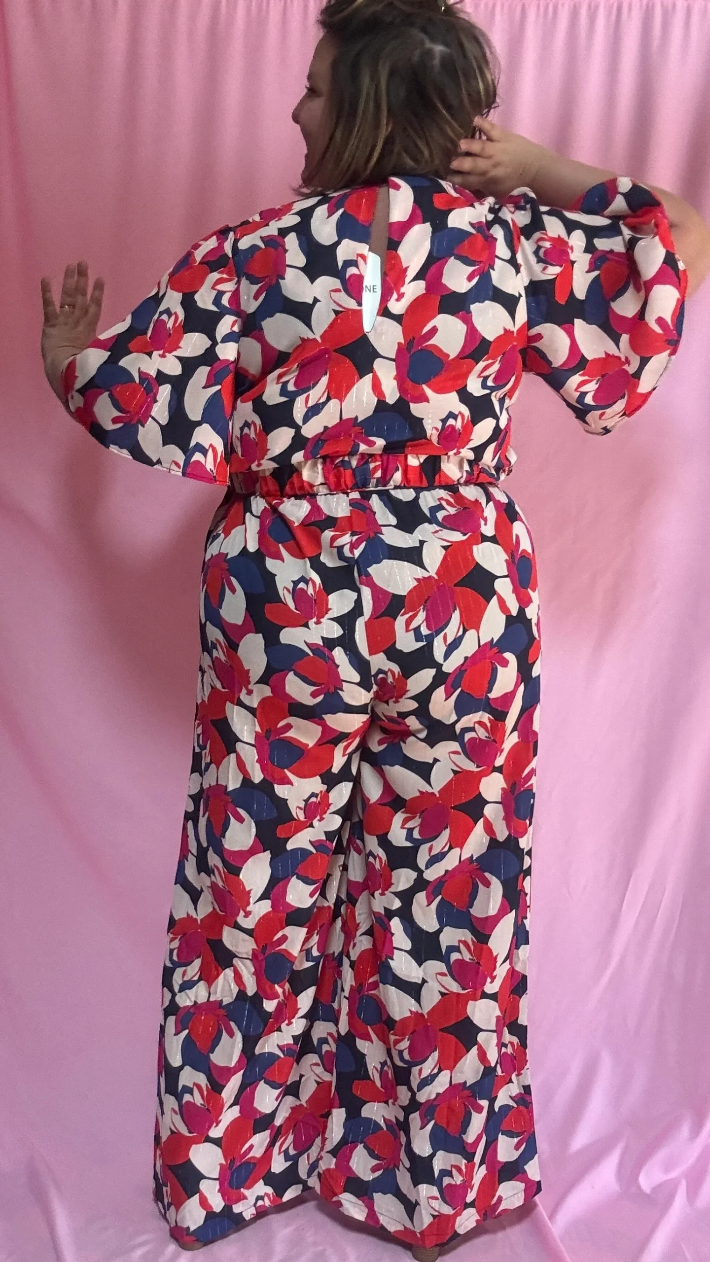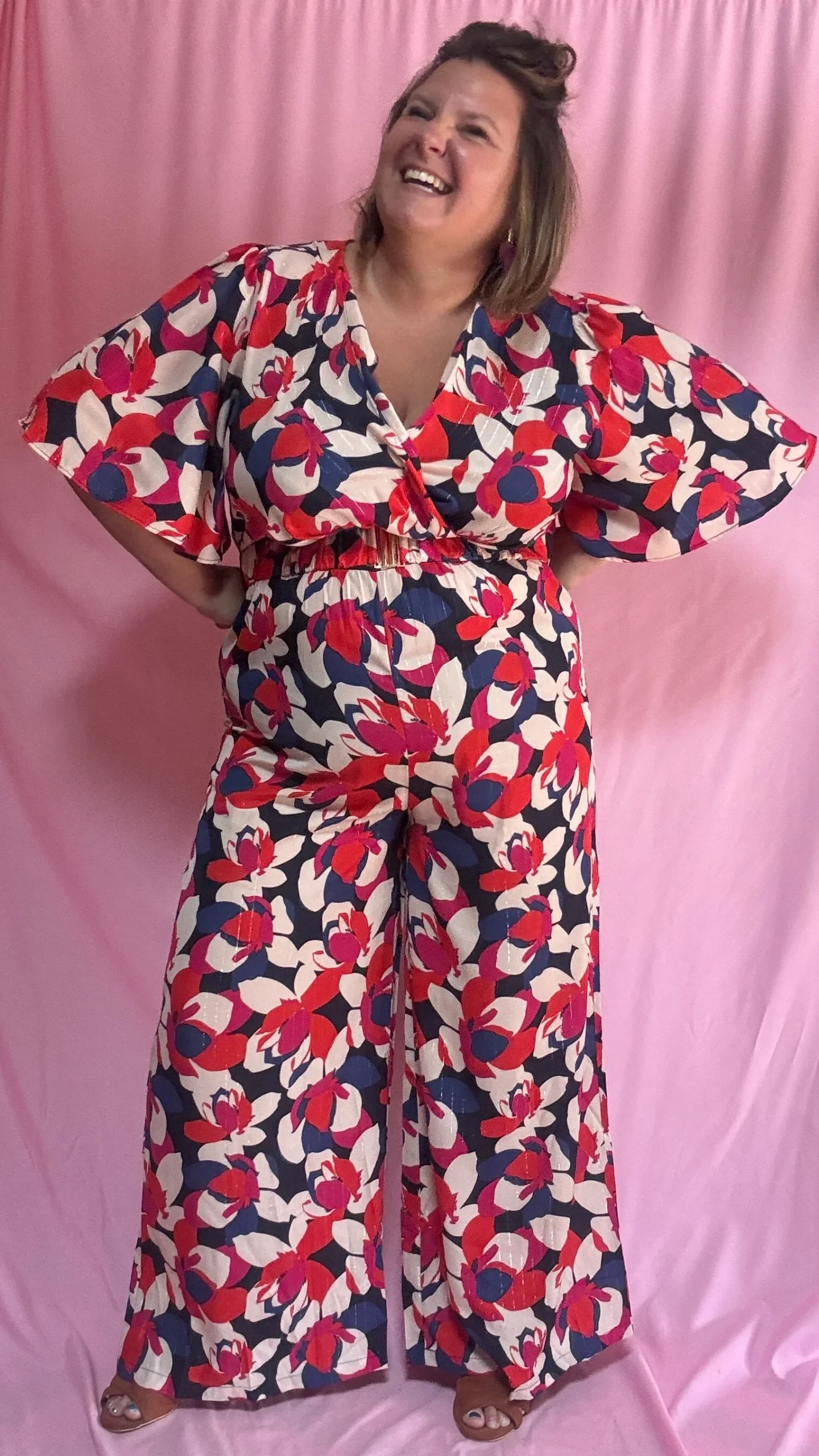 Combinaison Léonora – grande taille motifs rouge bleu blanc et rose manches fluides