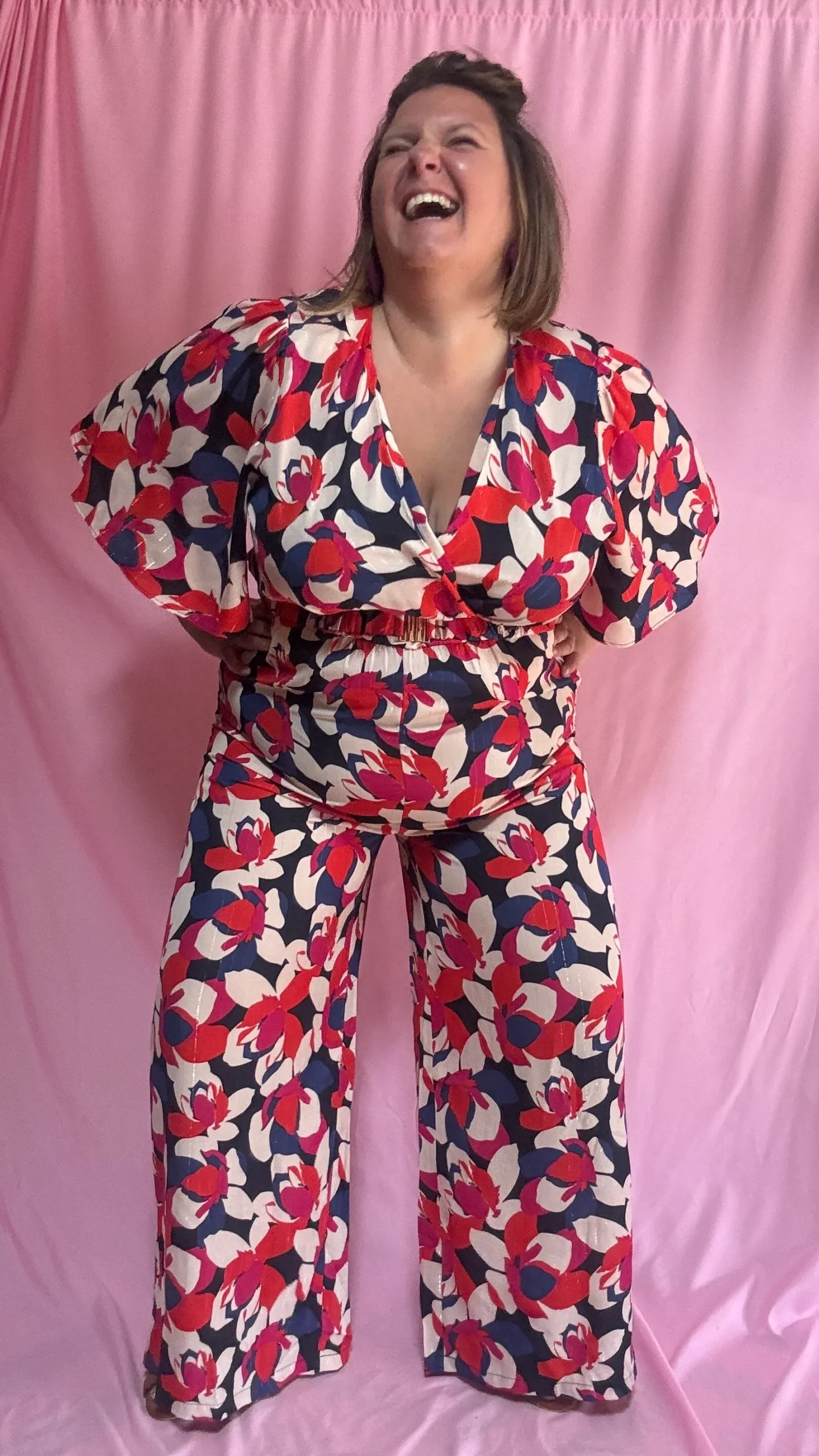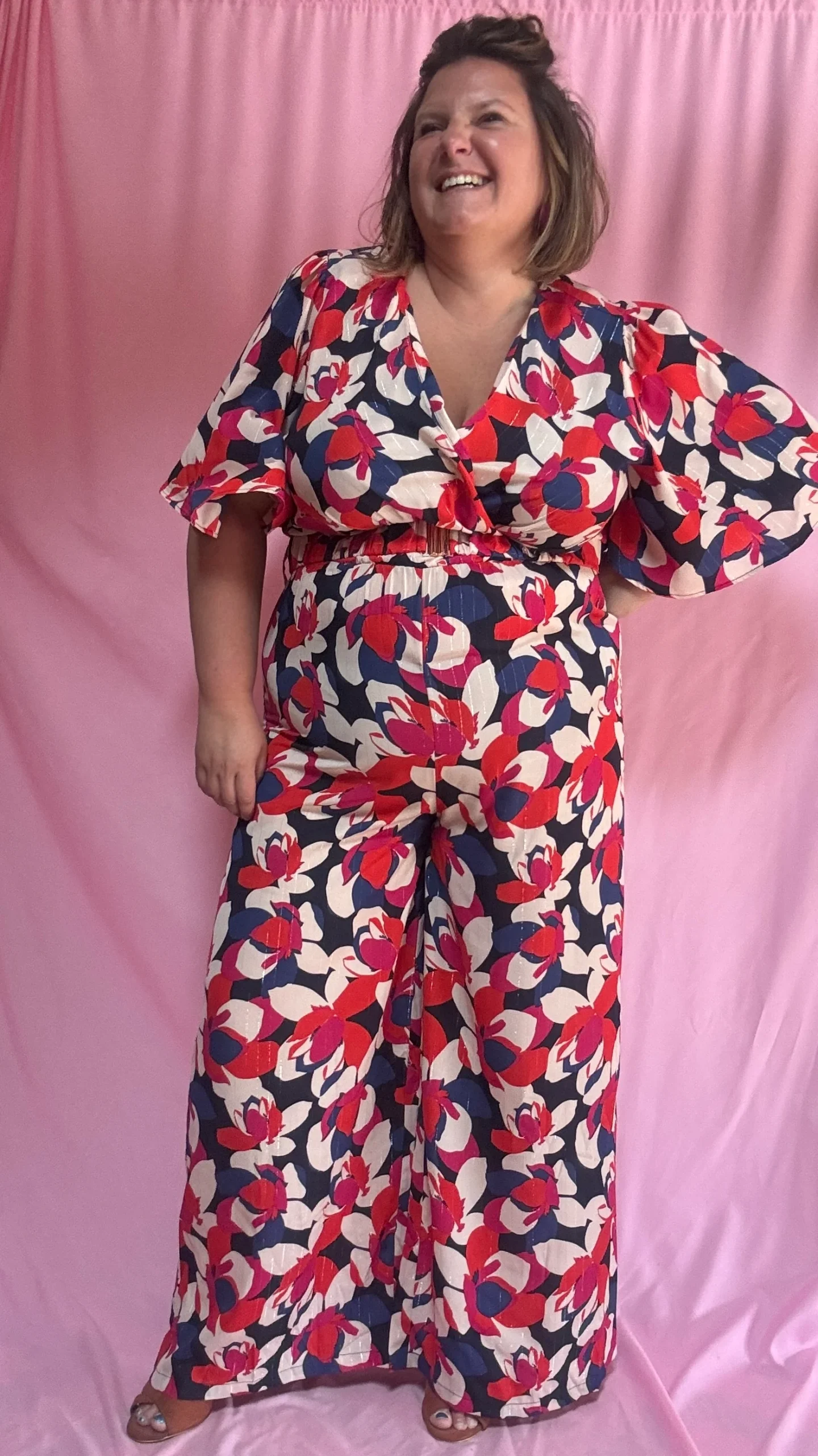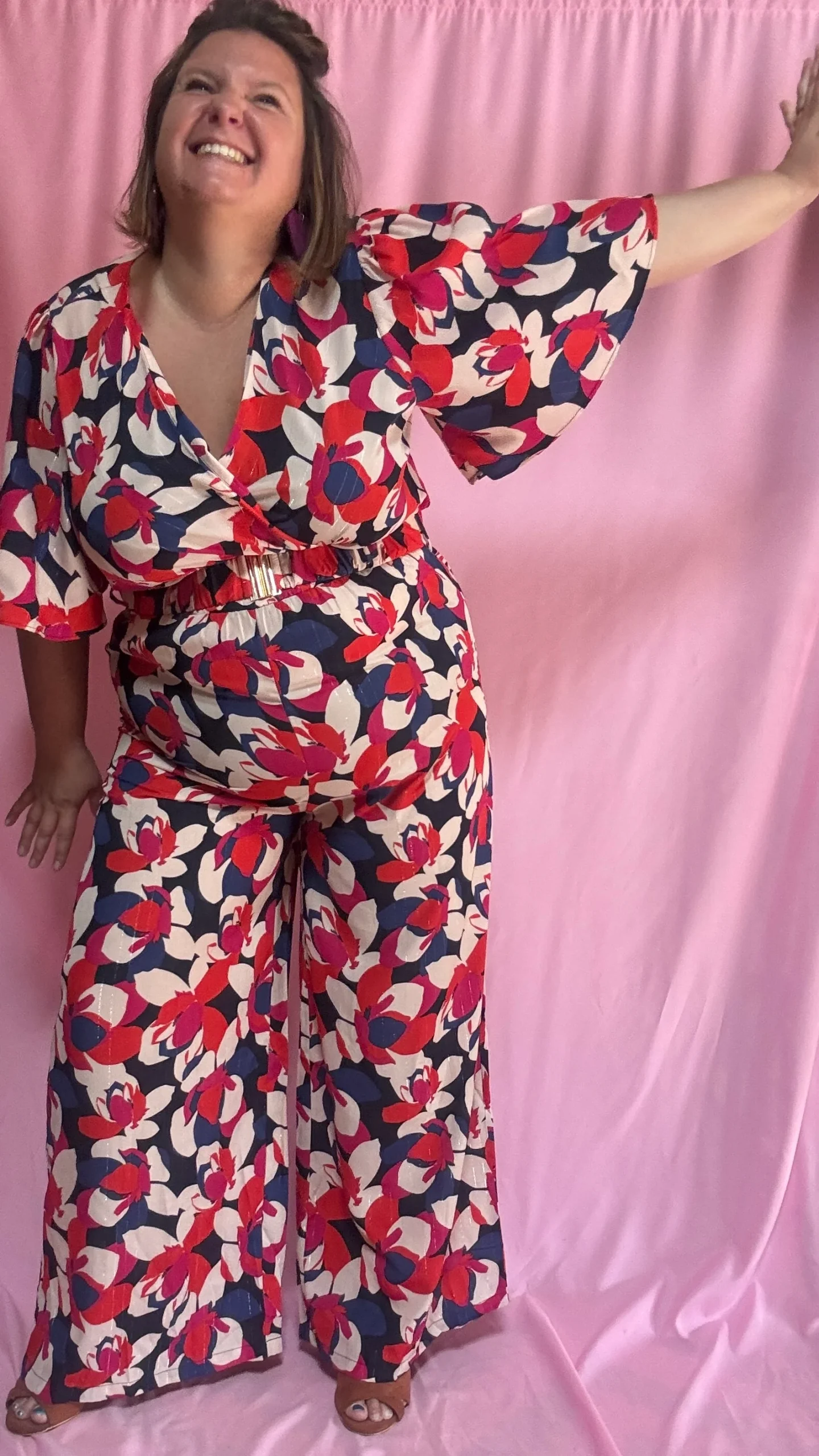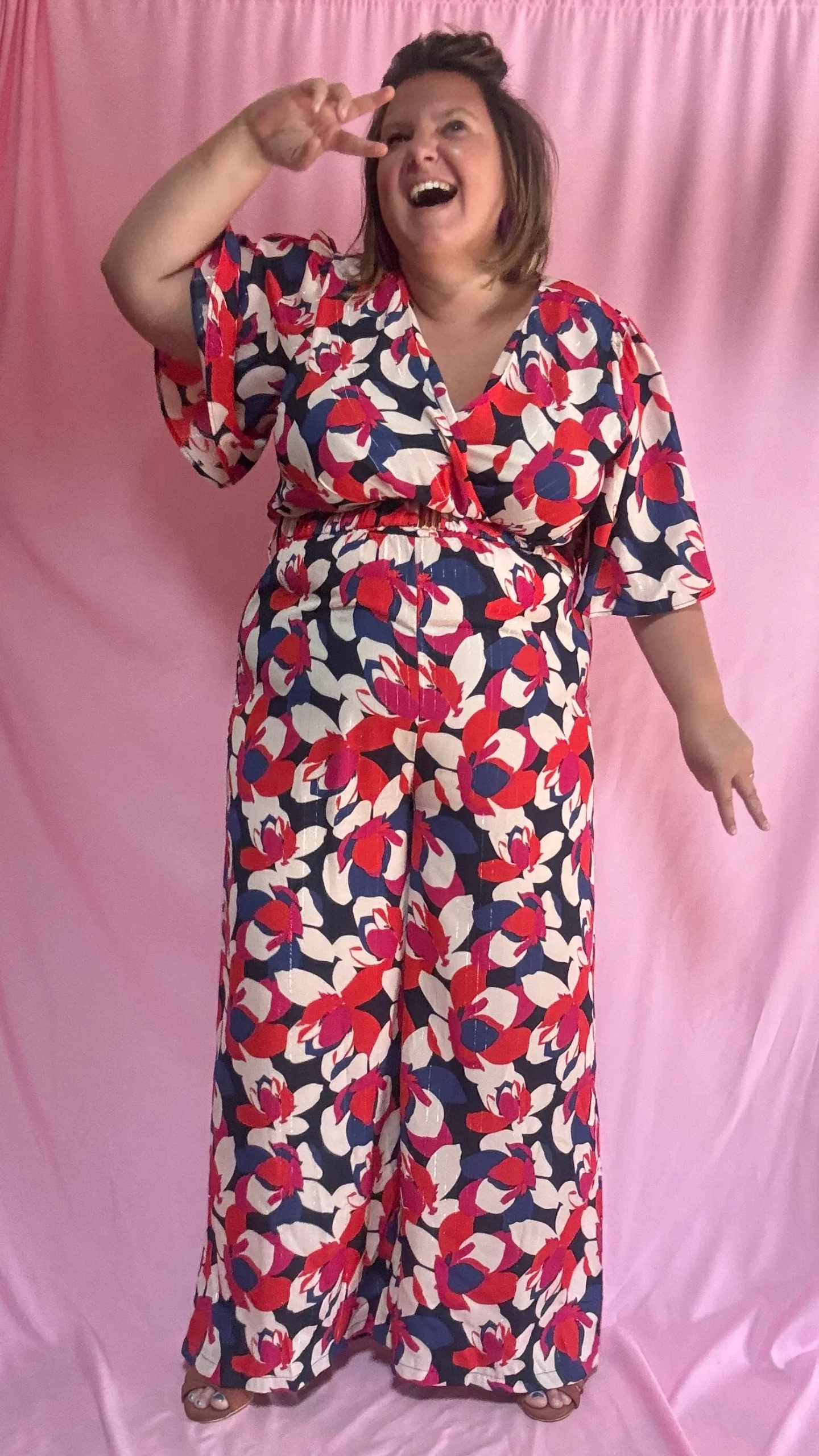Combinaison Léonora – grande taille motifs rouge bleu blanc et rose manches fluides