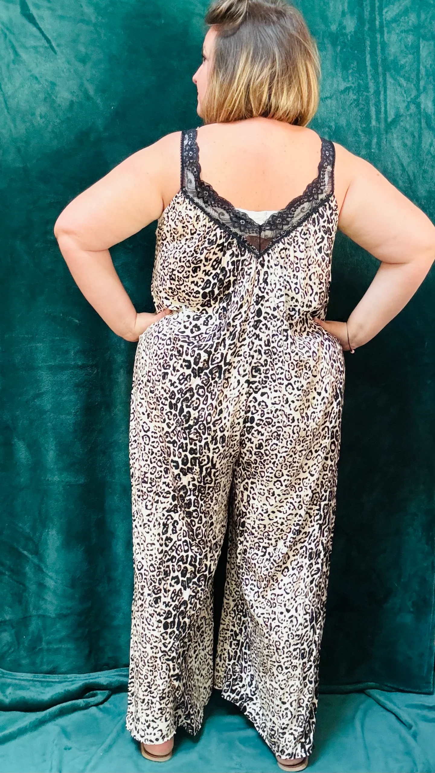 Apportez une touche sauvage et élégante à votre garde-robe avec notre combinaison grande taille à motif léopard. Conçue pour un style glamour et rock, cette combinaison fluide et légère est parfaite pour les working girls audacieuses. Elle arbore de fines bretelles, un léger décolleté en V devant et un dos nu, sublimés par des détails en dentelle à l’avant et à l’arrière. Confortable et chic, elle est idéale pour une journée de travail ou une soirée spéciale.