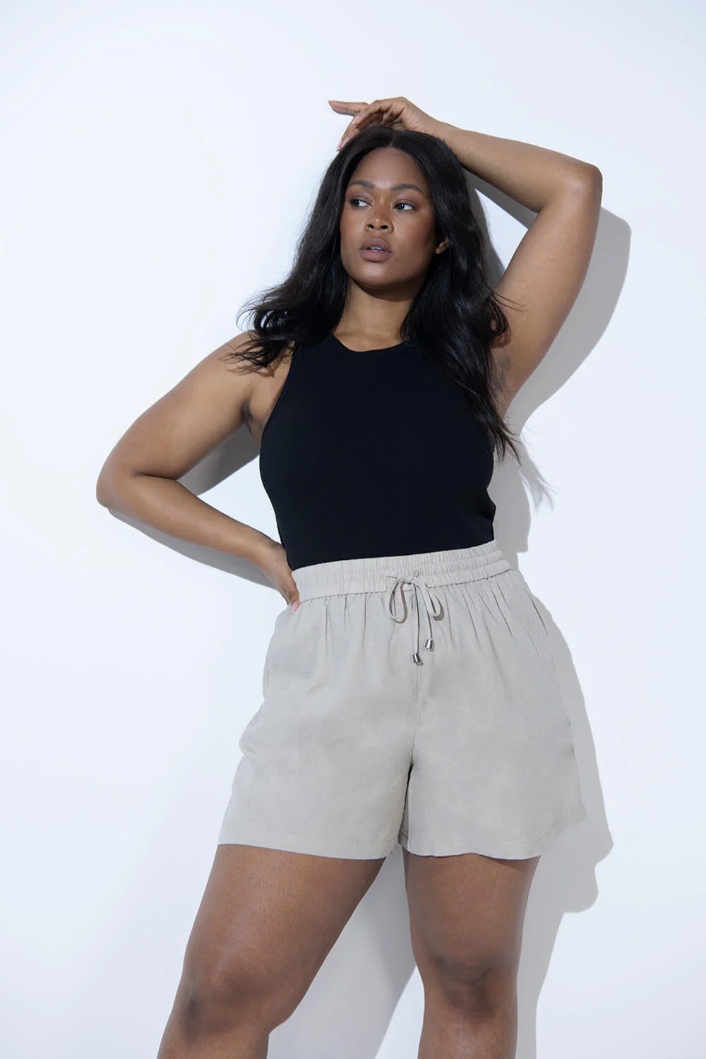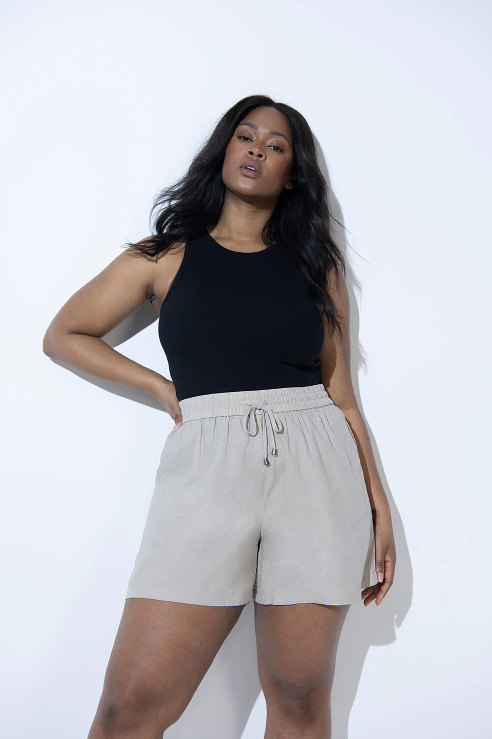 Curve Linen Shorts – Stone