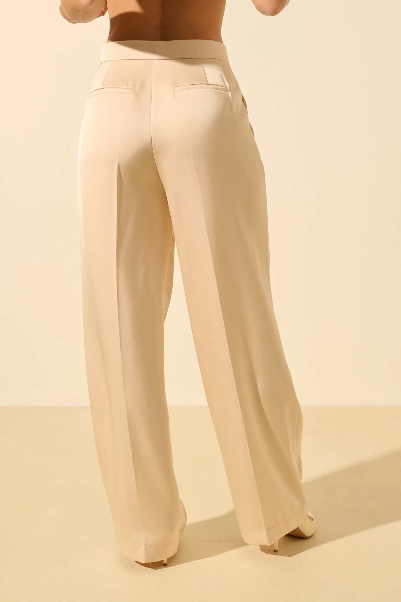 Le pantalon palazzo Dante est un incontournable de la collection, son tissu effet satiné et sa coupe très élégante allongent la jambe pour une allure sculpturale. Sa taille haute et sa fluidité allongent la silhouette !