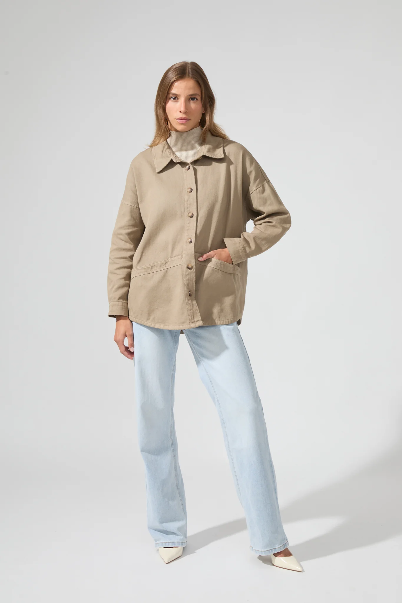Cette veste oversize en coton allie confort et style minimaliste. Sa coupe décontractée et ses finitions soignées en font une pièce polyvalente, parfaite pour superposer vos tenues et rester élégante en toutes circonstances.