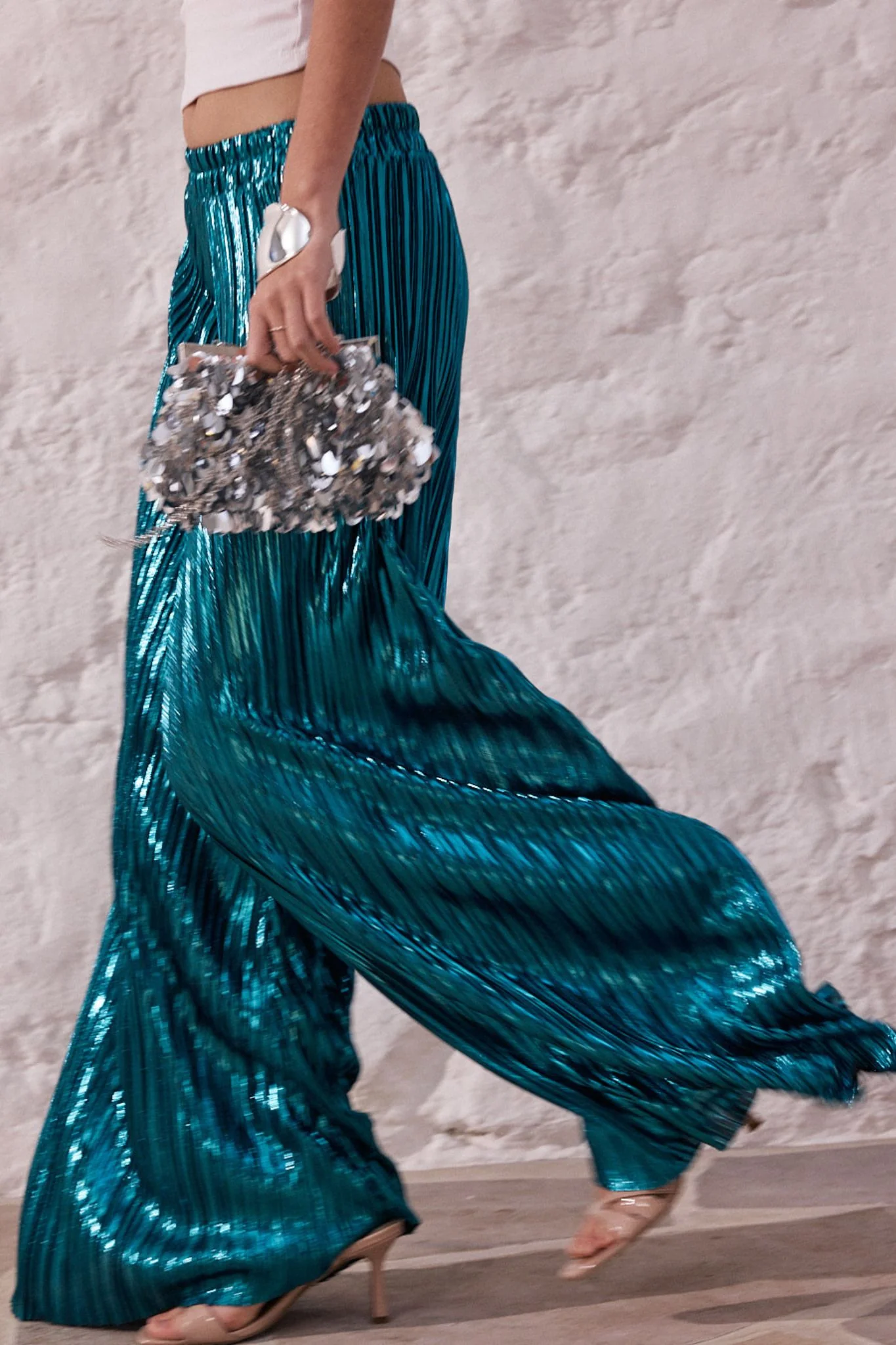 Ce pantalon fluide et ample est agrémenté d’un tissu scintillant avec élégance à chaque mouvement. Conçu avec fluidité, il offre un confort et un style optimal.
