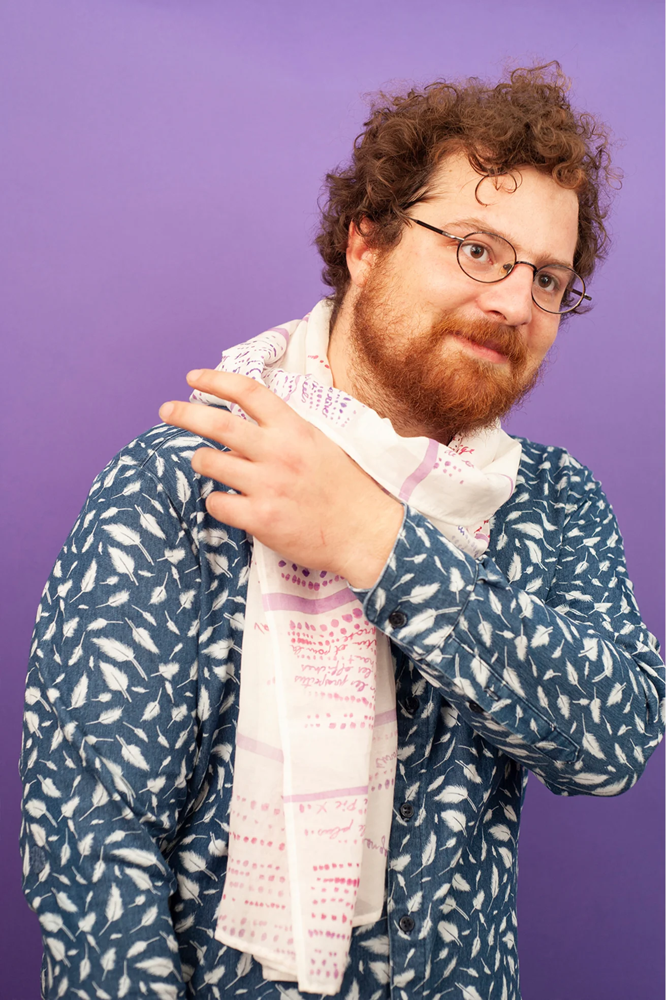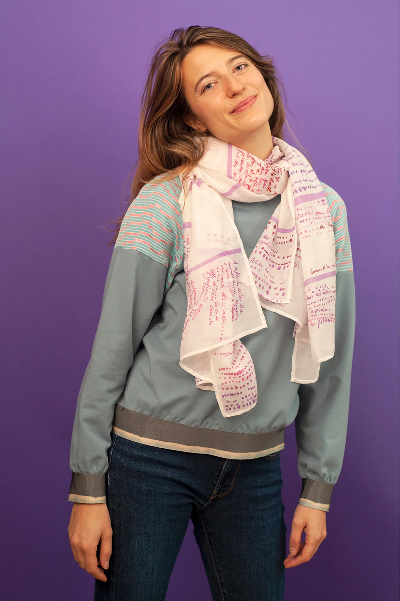 Le foulard couleurs pastel Zone est imprimé au Portugal par la Maison Le Callennec, sur une étamine de coton et soie, que j’ai voulu crissante comme du papier.
