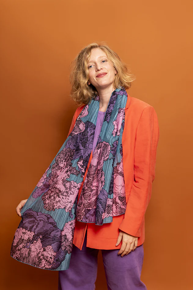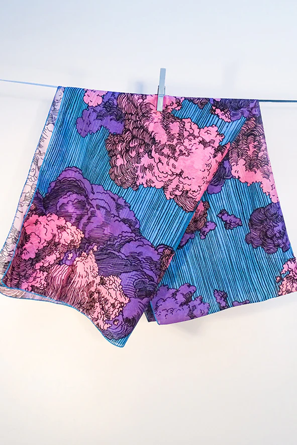 Une étole de soie pour s’enrouler autour du cou les nuages oniriques du génial Château dans le ciel d’Hayaho Miyazaki…