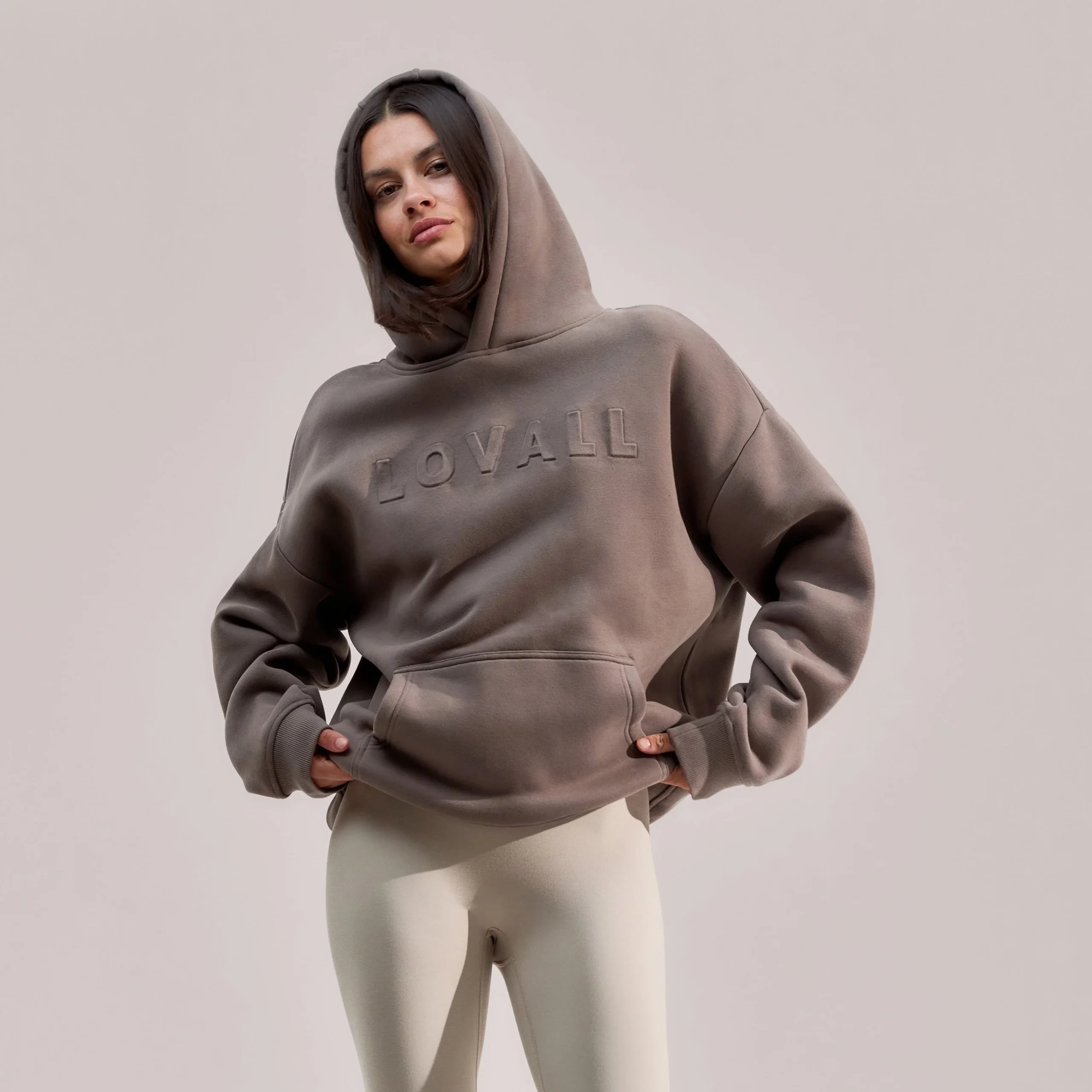 Designed in a flattering oversized fit with a drop shoulder shape. Accompanied by finishing details for style and comfort, including a 3D embossed Lovall logo, kangaroo pocket and ribbed cuffs and hems.
