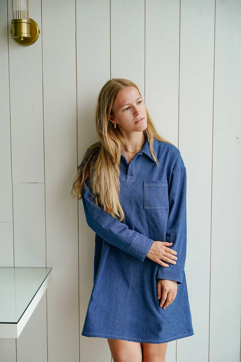 - Description : Robe courte – Col Vareuse – Manches longues droites – Poignets – Poche plaquée à la poitrine