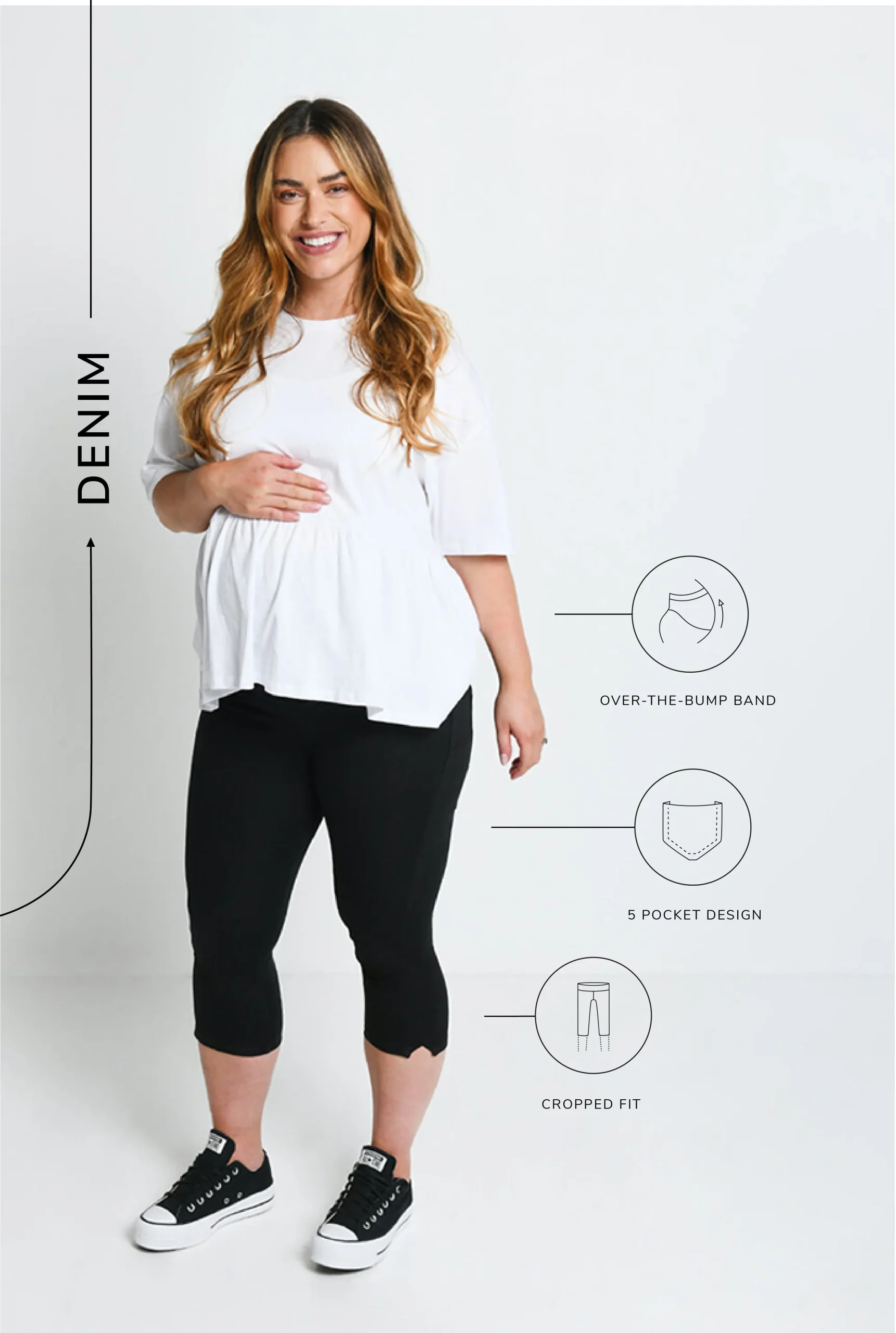 – Blending the style of denim with the comfort of leggings. – Non-restrictive and crafted with soft, 4-way stretch fabric. – Designed with a soft cotton over-the-bump band that offers support and comfort. – Feel comfortable and look good thanks to the flattering seam design.