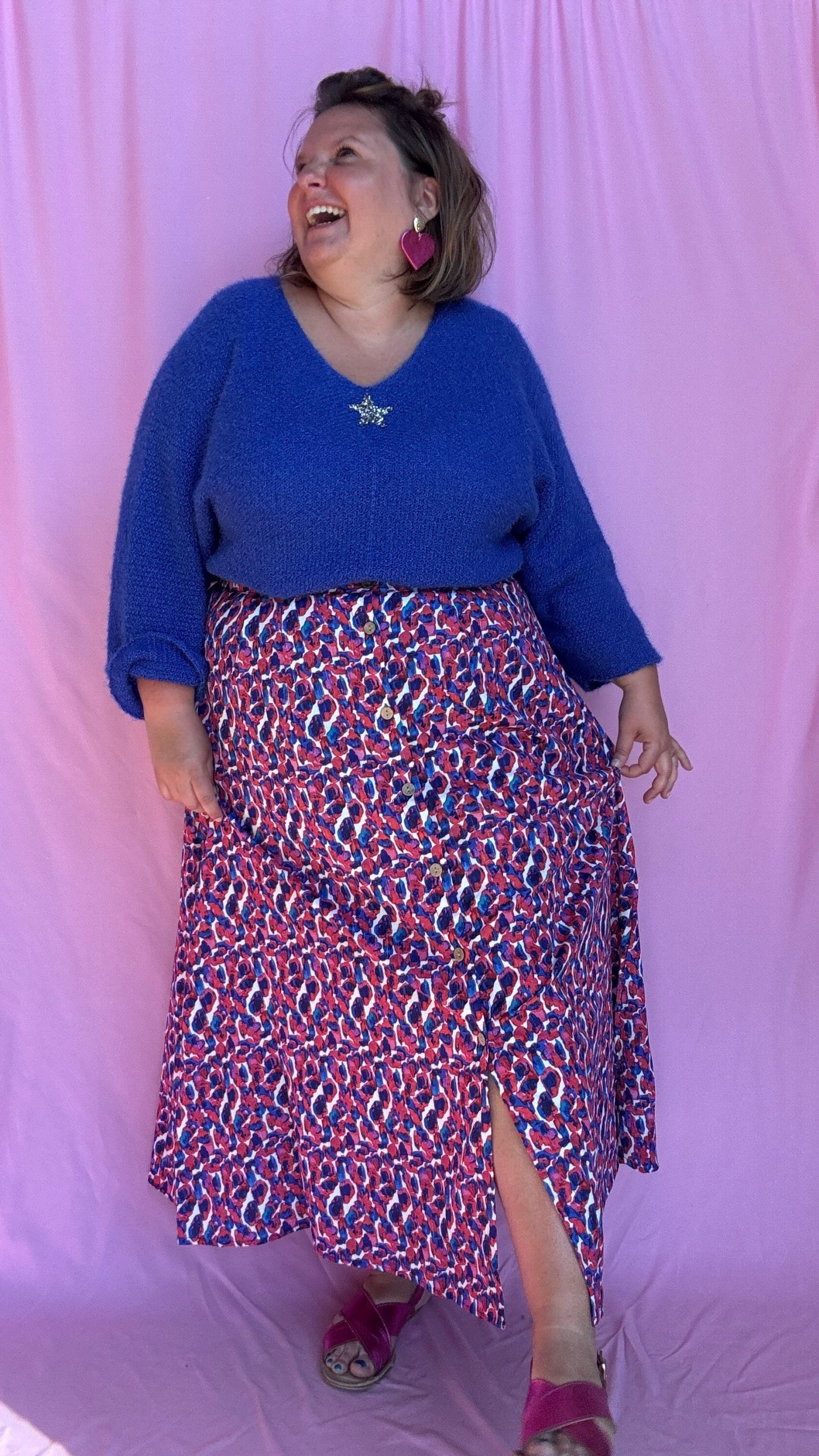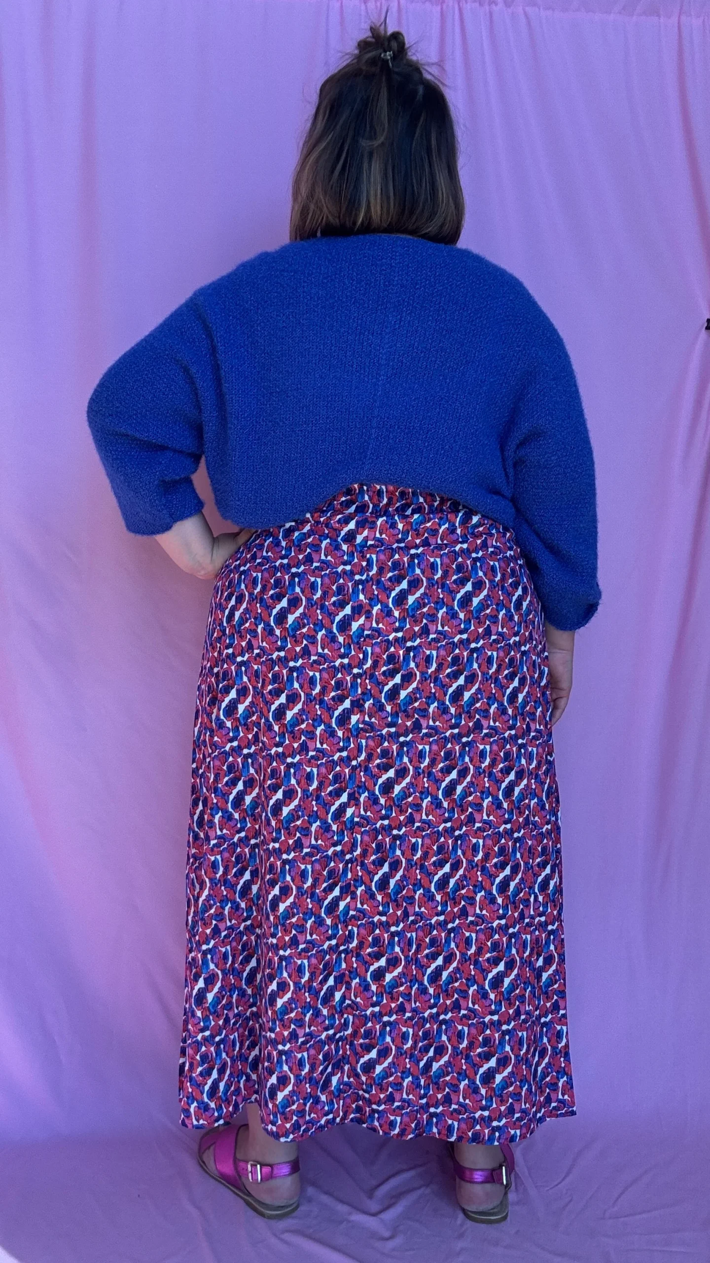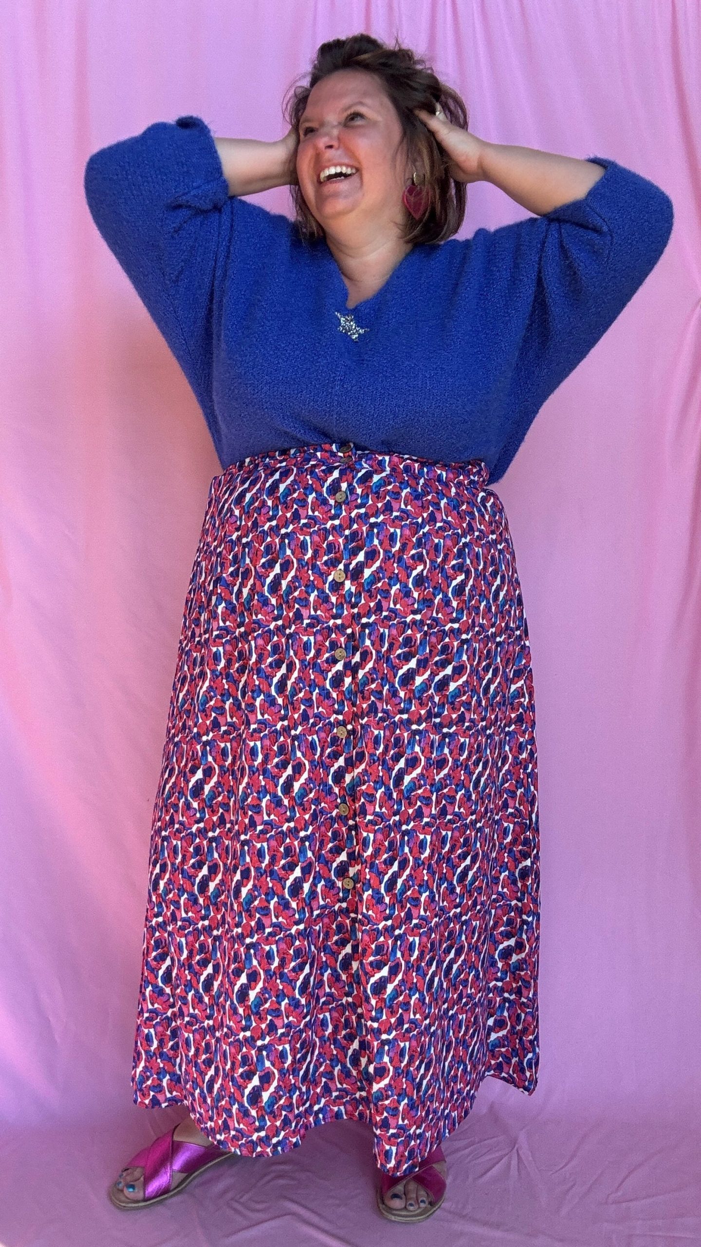 Jupe Celestine – grande taille longue motif blanc bleu et rose
