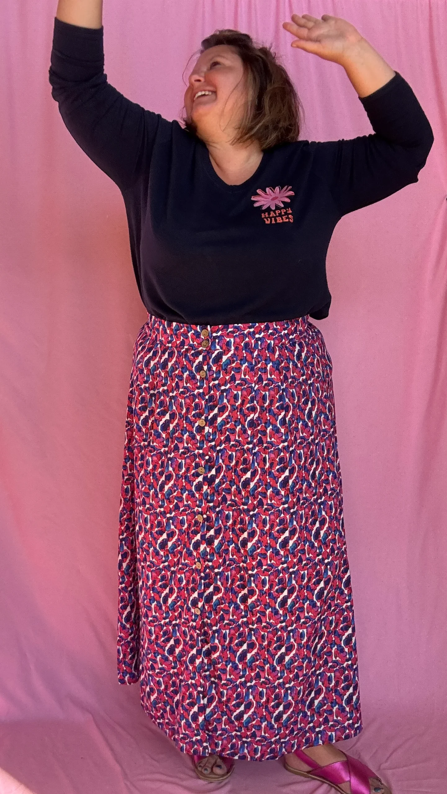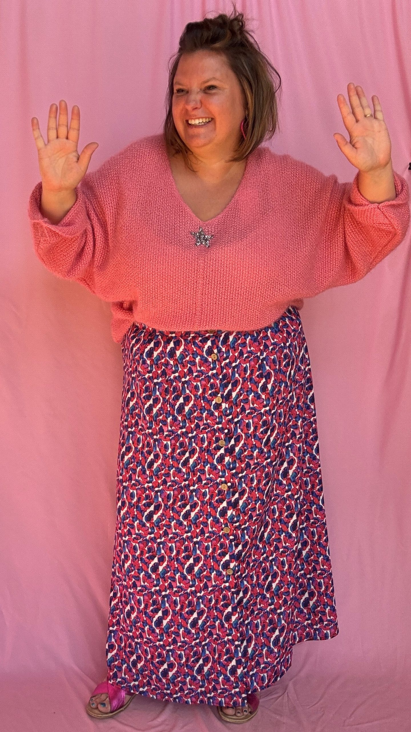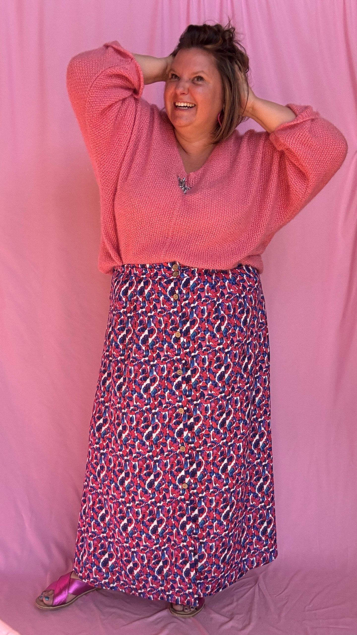 Jupe Celestine – grande taille longue motif blanc bleu et rose