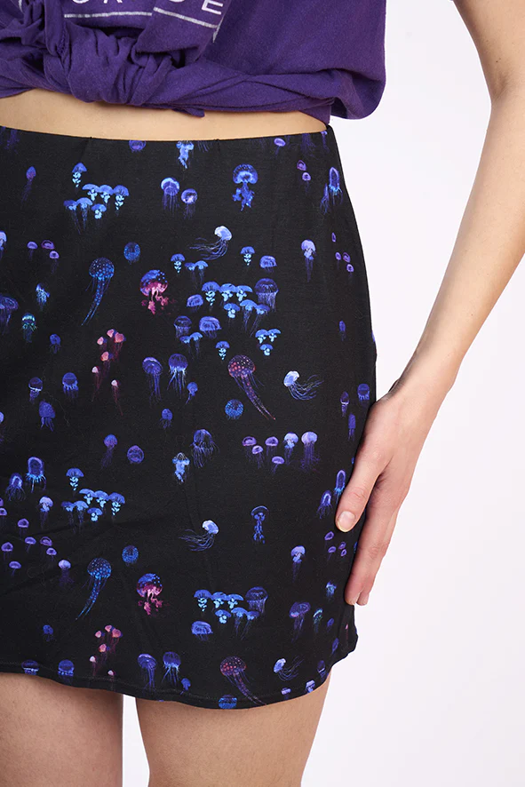 Jupe courte en maille « Olé Olé » motif Méduses