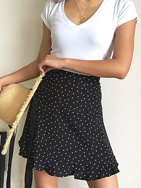 La jupe courte avec imprimé pois blanc :