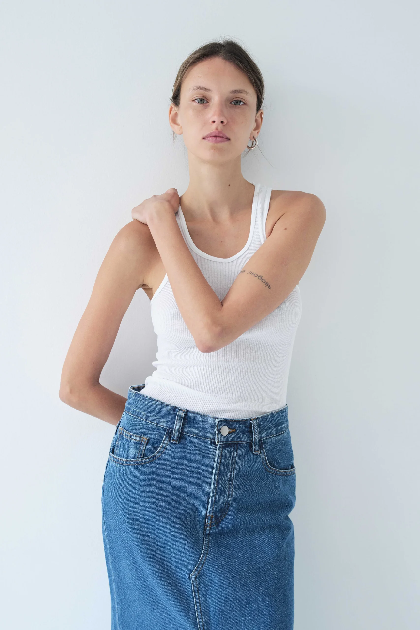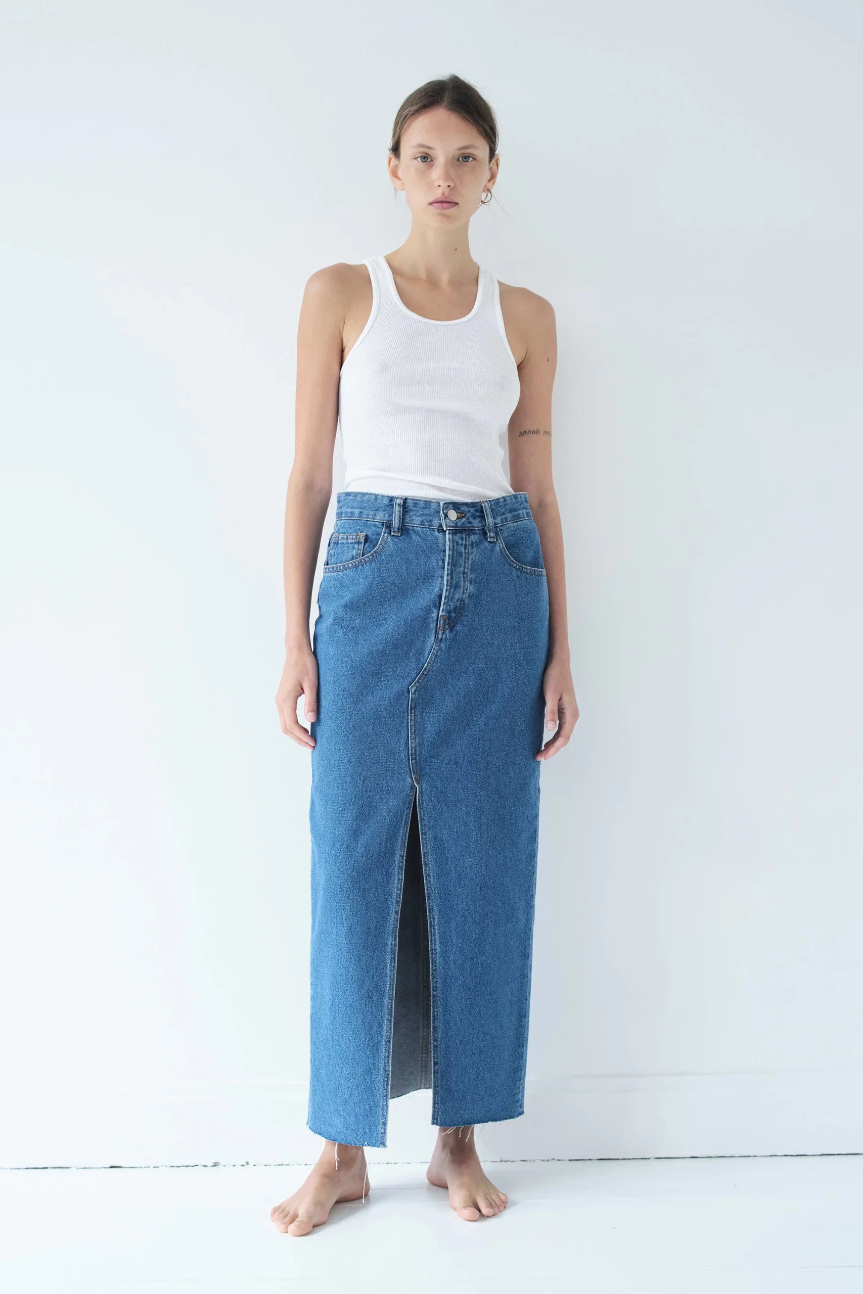 Explorez le charme décontracté avec notre jupe Harlow en jean aux détails raffinés, dotée d’une fente généreuse et d’un ourlet subtilement effiloché tendance. Une pièce polyvalente qui allie confort, style et élégance.