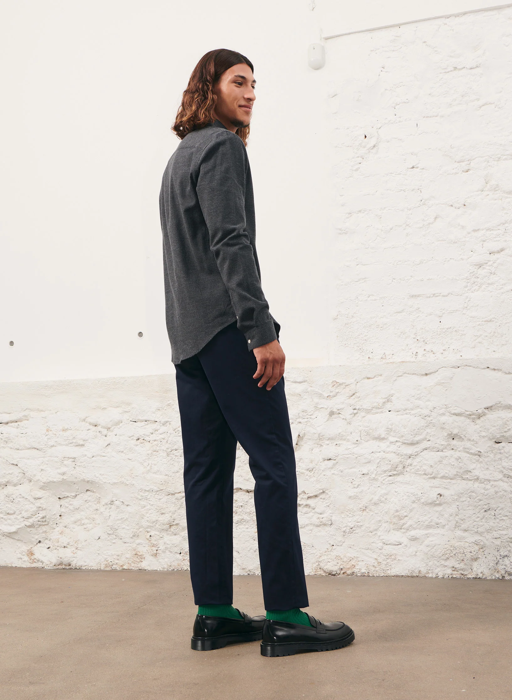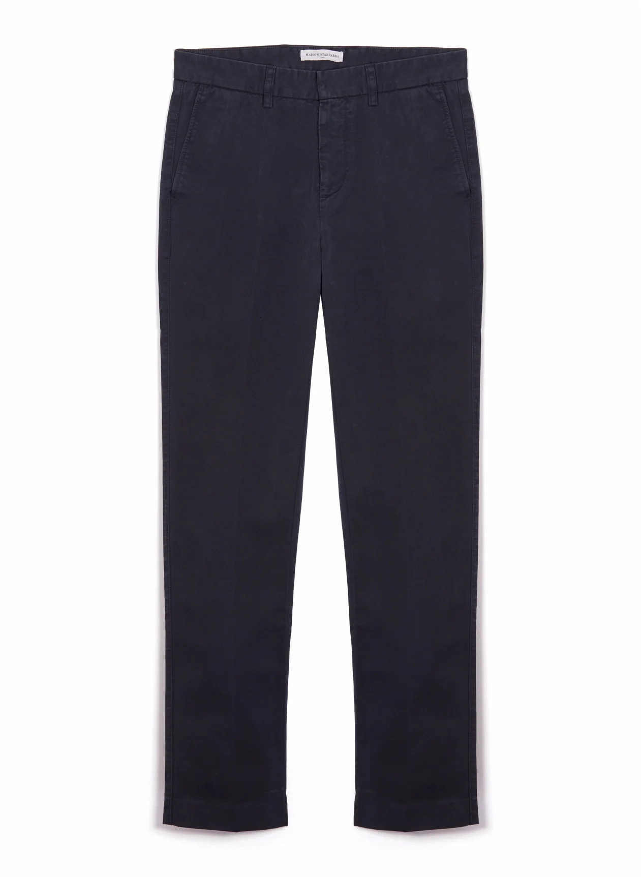 Pantalon chino slim. Fermeture: braguette et agrafe en métal cachée. Deux poches italiennes devant. Deux poches simples passepoilées dos. Ourlet invisible.