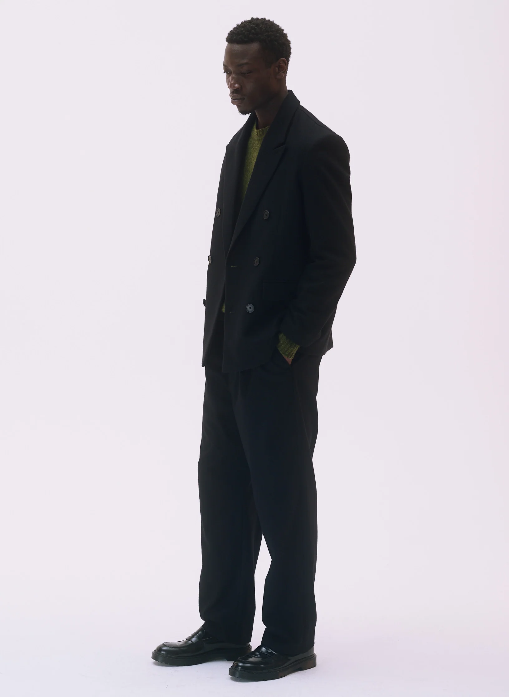 Notre pantalon large à double pince en flanelle noire unisexe a été pensé et mis au point pour qu’il puisse être porté par les hommes autant que par les femmes. Vérifiez le guide des tailles. Si vous êtes entre 2 tailles, prenez la taille au dessus.
