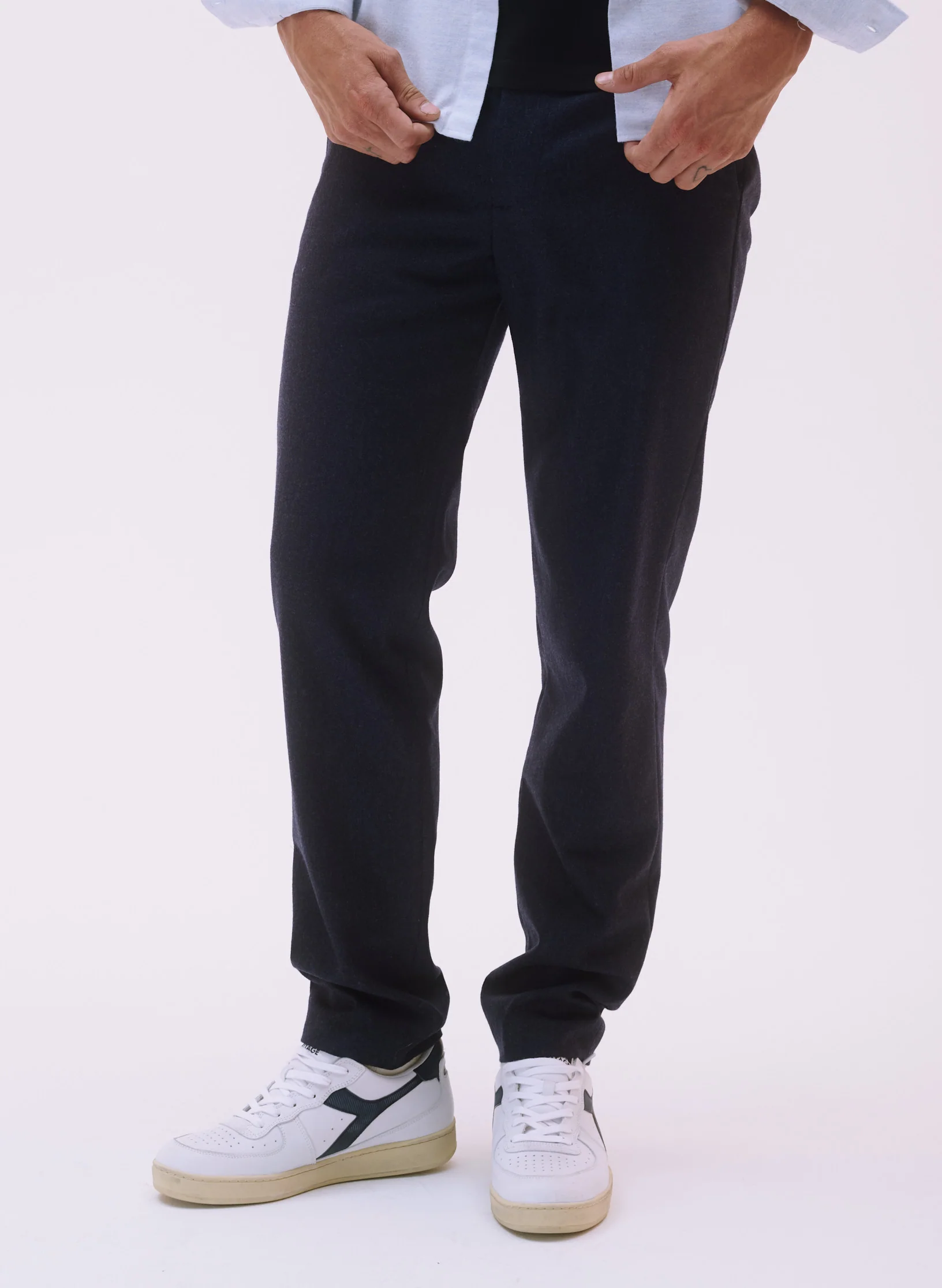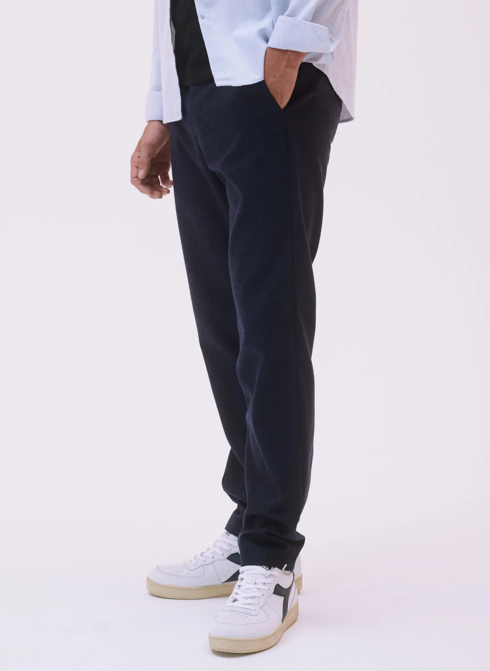 Notre pantalon ajusté se décline dans une flanelle de laine, idéal pour le plein hiver :